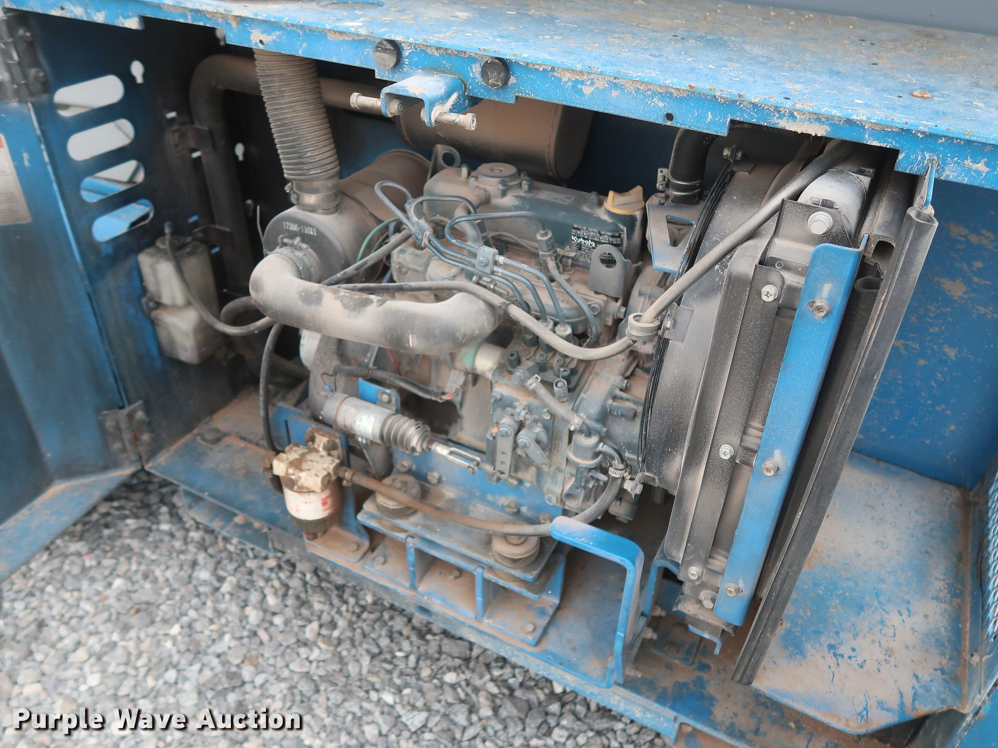 2012 Genie GS-3369RT scissor lift. 1,728 hours on meter, Serial: GS6912-554. Engine Kubota D1105-ET03, Serial: BT3550, Displacement: 1.1L, Cylinders: 3, Fuel type: Diesel, HP: 24.8. Chassis Four wheel drive. Operational Rough terrain, Maximum lift capacity: 1,000 lbs, Maximum lift height: 39', Platform: 108" L x 64" W, AC power outlet, Controls: Platform, Ground, Platform extensions: Manual. Tires Tire size: 26X12D380, Foam filled. 7233 US-81. Hennessey, OK 73742