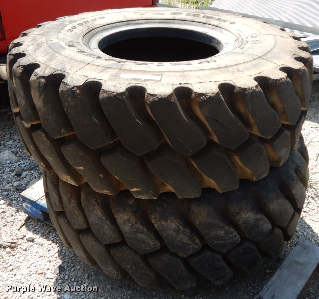 Purple Wave is selling a used Industrial Tires or Tracks in Illinois. This item is a (2) 20.5R25 tires with the following: (2) 20.5R25 tires. Chad Markert Trucking LLC. 895 800e St. Mount Sterling, IL 62353