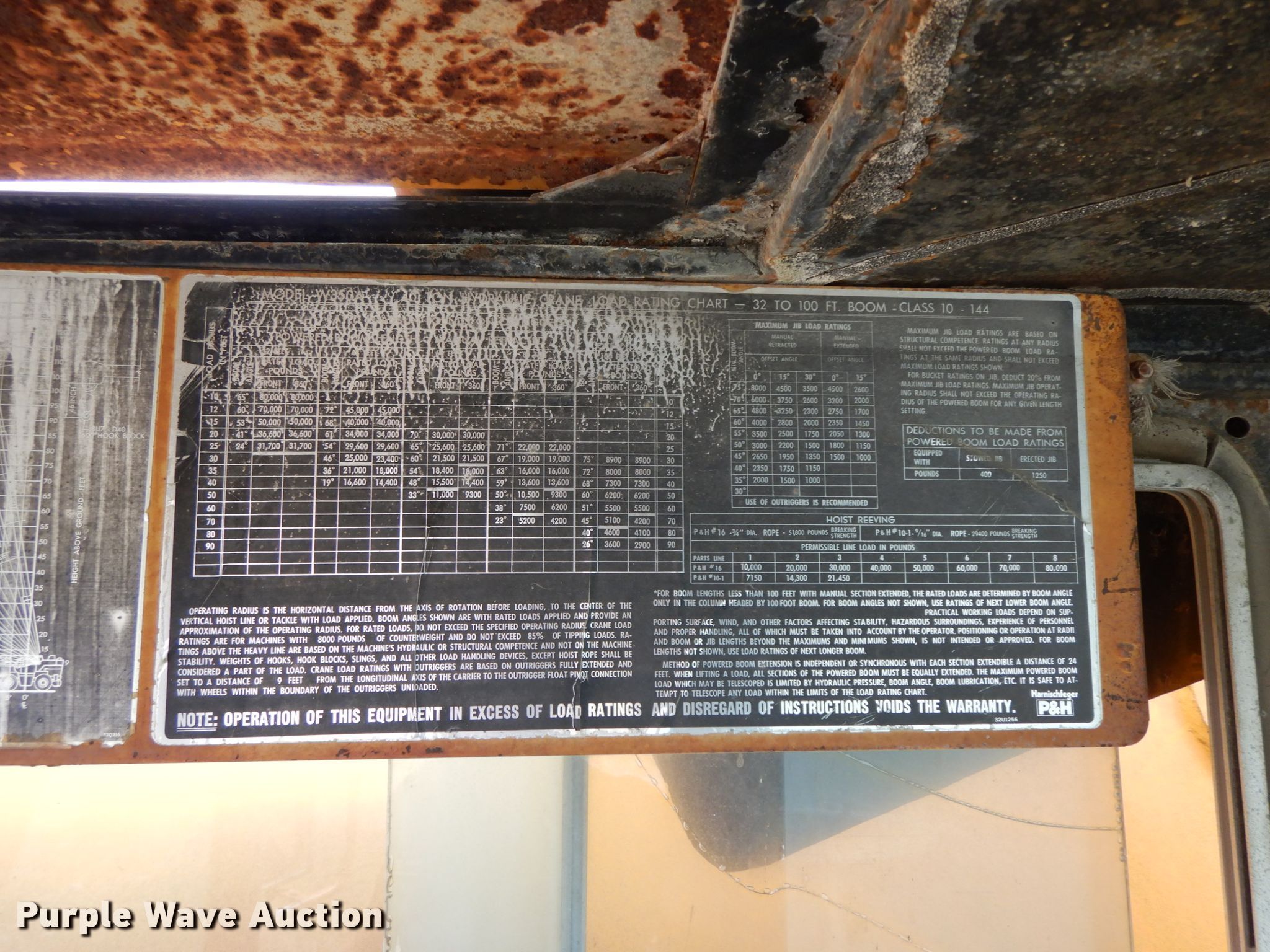 Take a look at this used P & H crane being sold on October 1st, 2020 in the SOLD! October 1 Construction Equipment Auction made by P & H. Take a look at all of the item information below or take a look at similar auctions for Cranes.