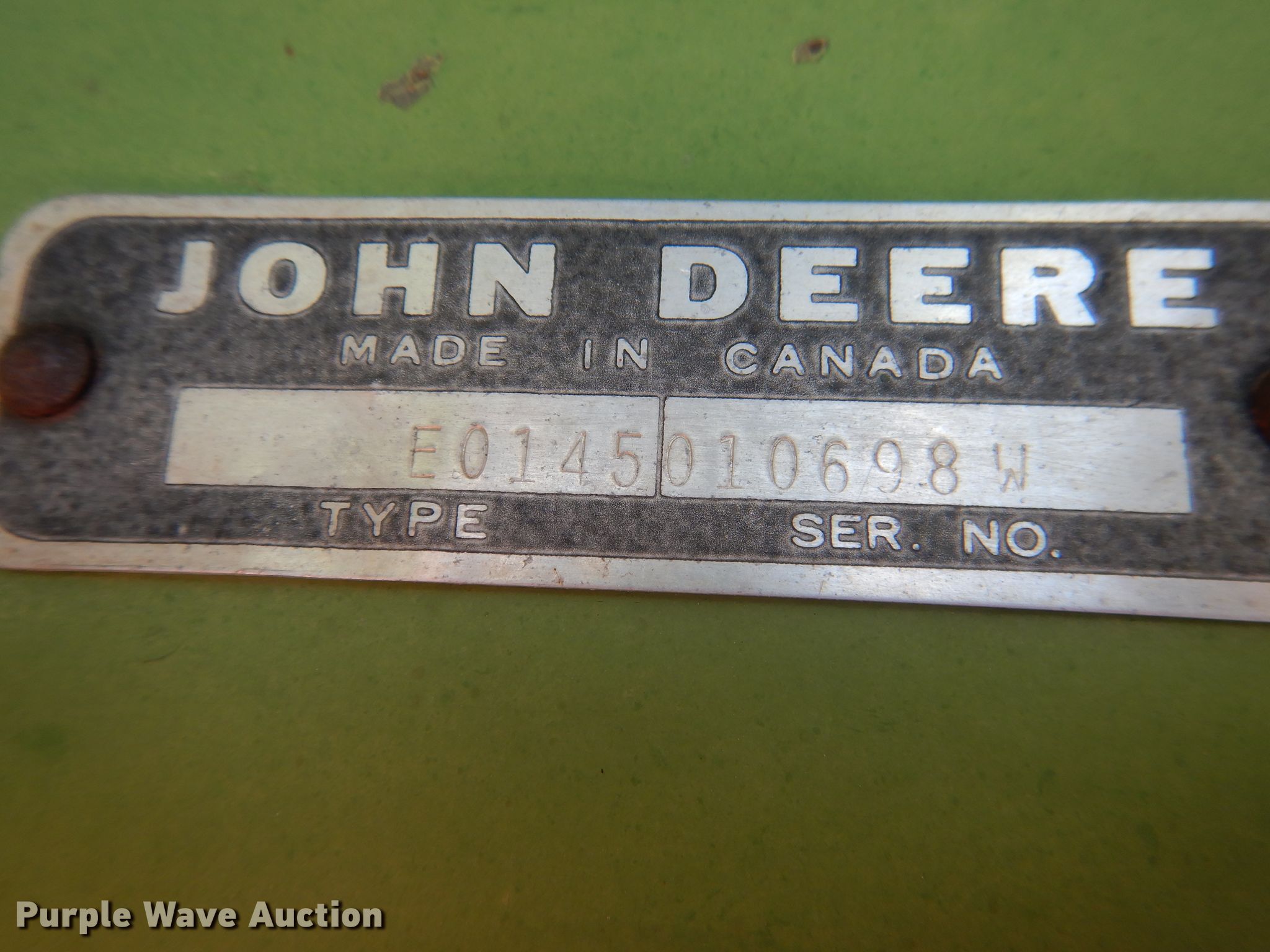 John Deere 830 tractor. 3,273 hours on meter, Serial: 145220. Engine John Deere 53OL-02, Serial: 184349CD, Cylinders: 3, Fuel type: Diesel. Transmission Manual, 6F - 1R. Operational PTO: 540, Three point Top link, Rear: 1, Loader John Deere 145, Controls: Two lever, Bucket Width: 72".. Tires Front: 6.00 16, Rear: 13.6 28, Wheelbase: 80", Serial 145220. Holdrege Public Schools. 505 14th Ave. Holdrege, NE 68949