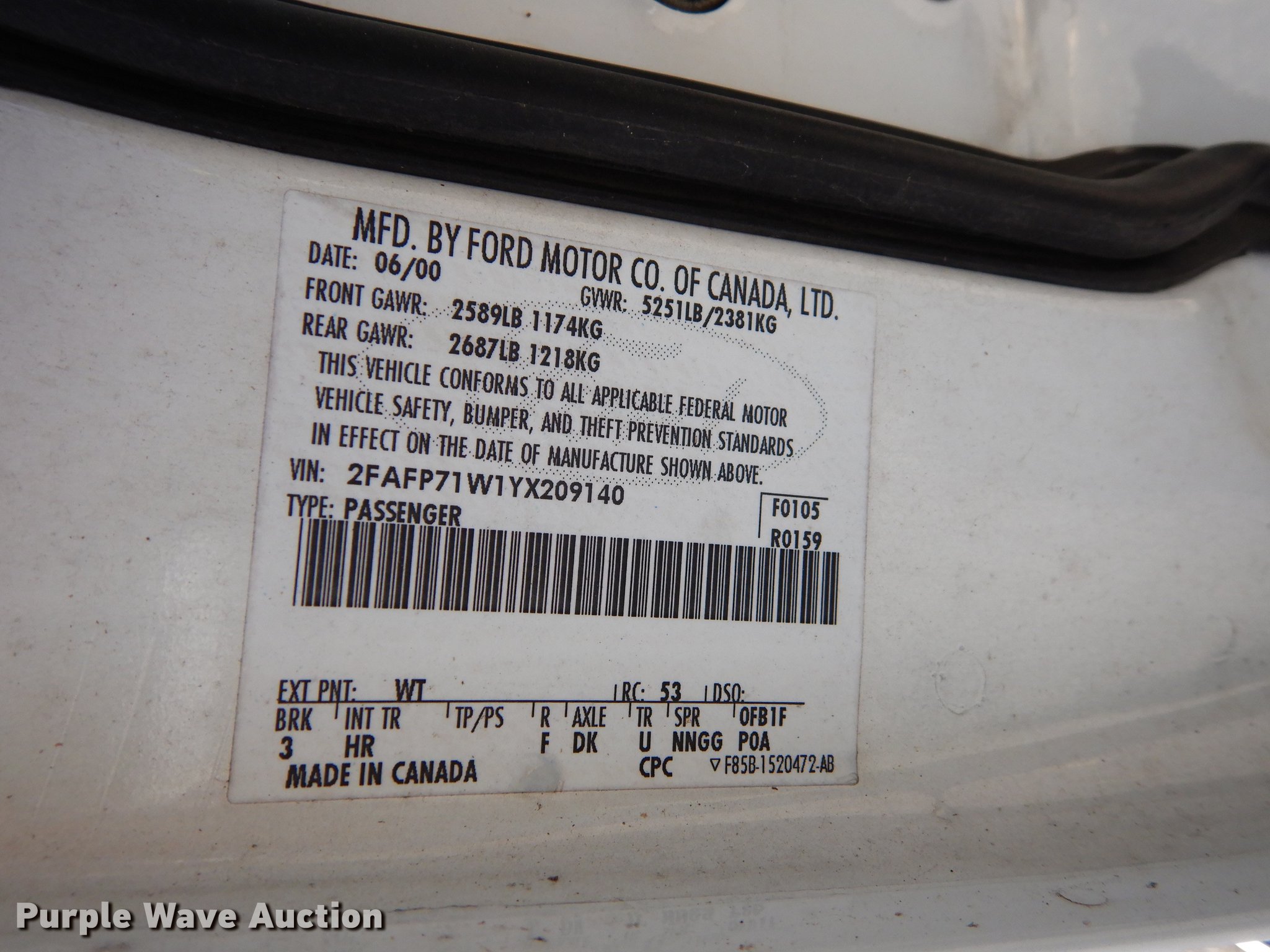 Purple Wave is selling a used Passenger Vehicle in Kansas. This item is a 2000 Ford Crown Victoria Police Interceptor with the following: 139,248 miles on odometer, Unit #: A10123
