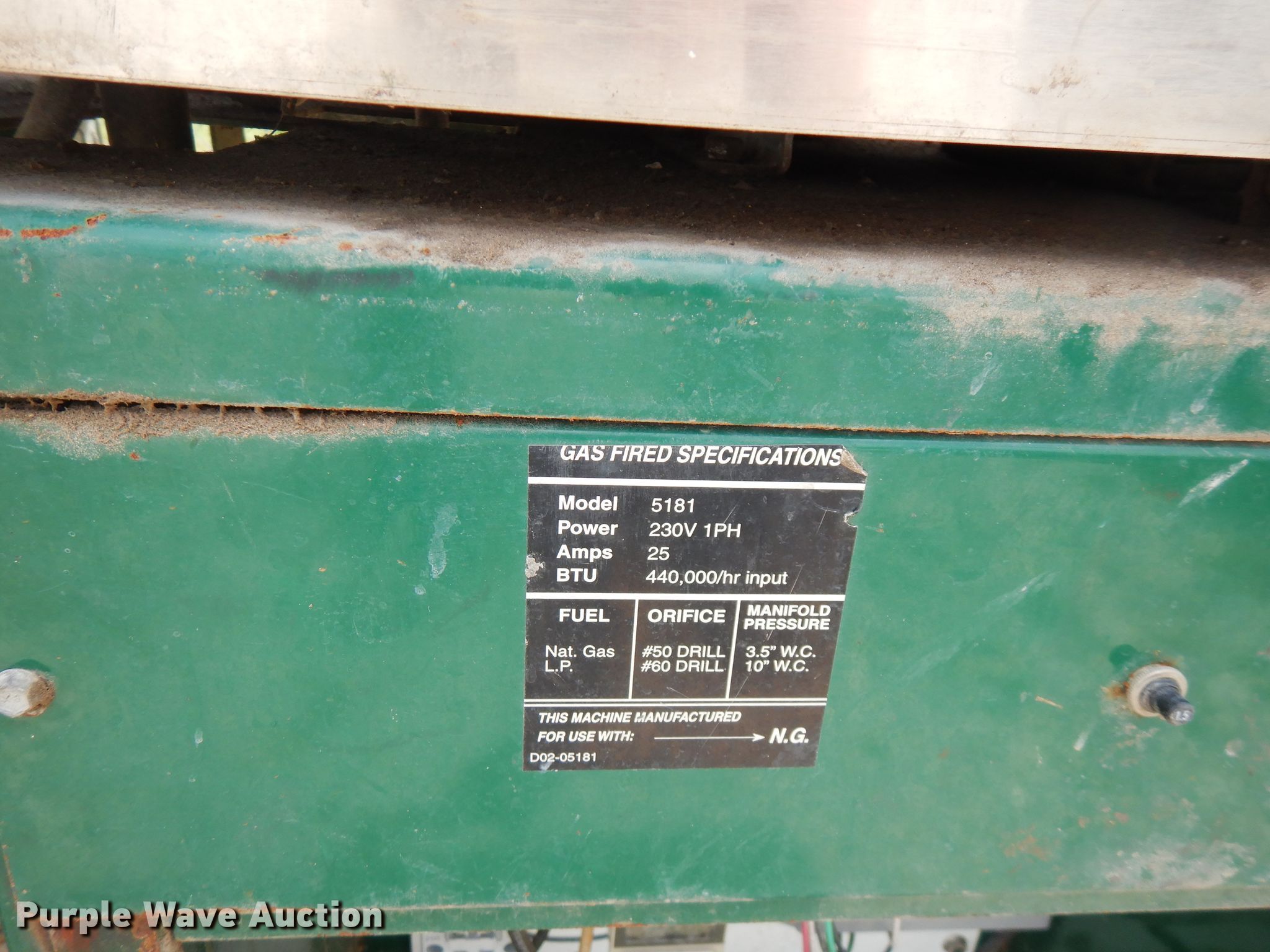 Purple Wave is selling a used Pressure Washer in Kansas. This item is a Hy-Flo 5181 pressure washer with the following: 230V, Single phase, 440,000 BTU per hour input, Natural gas/propane fired, Serial PL04768