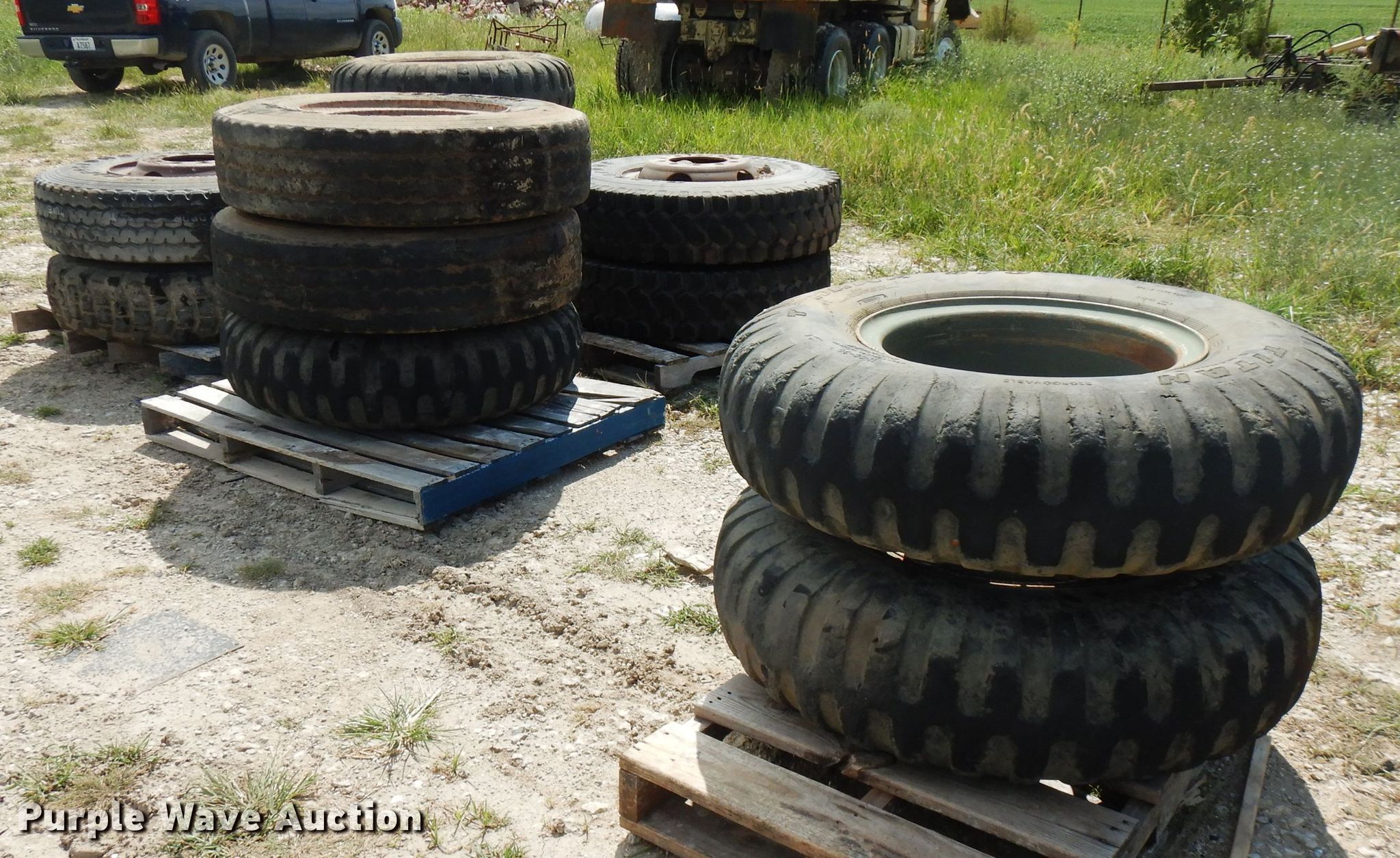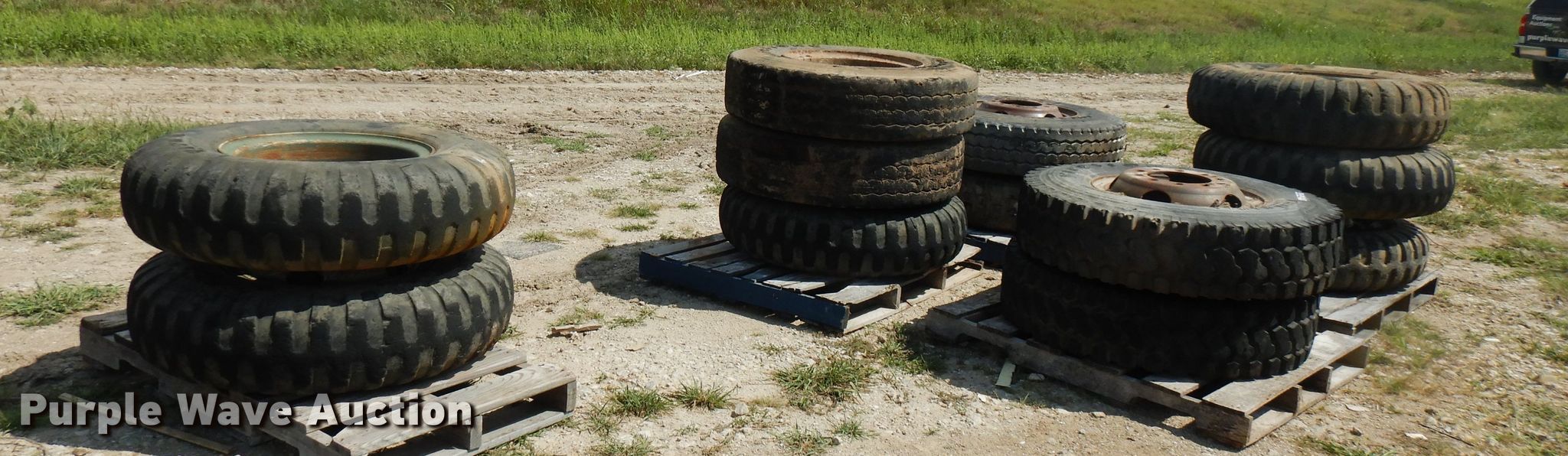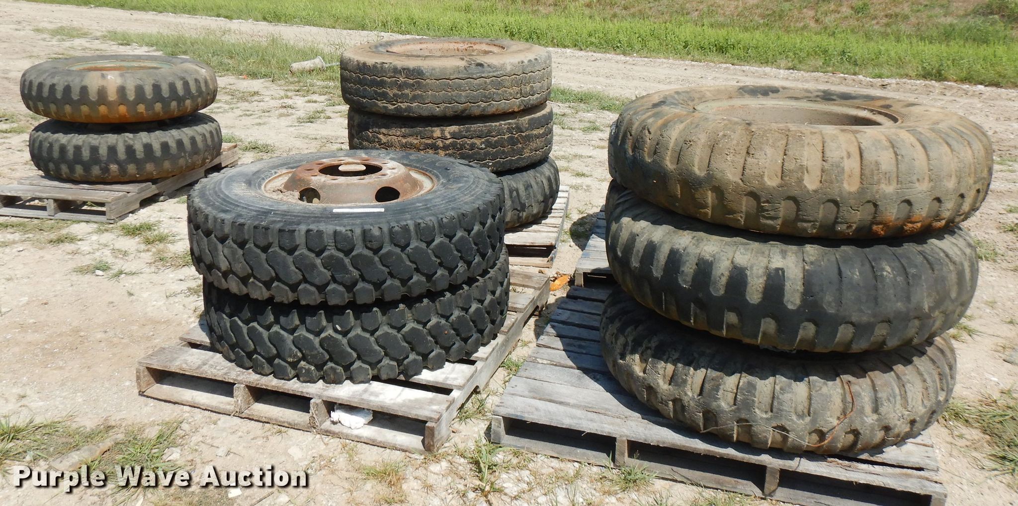 Purple Wave is selling a used Industrial Tires or Tracks in Kansas. This item is a Approximately 12 tires and wheels with the following: 11.00R20, (5) 11.00-20