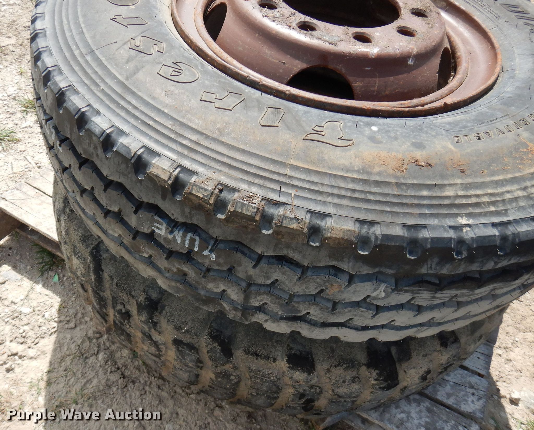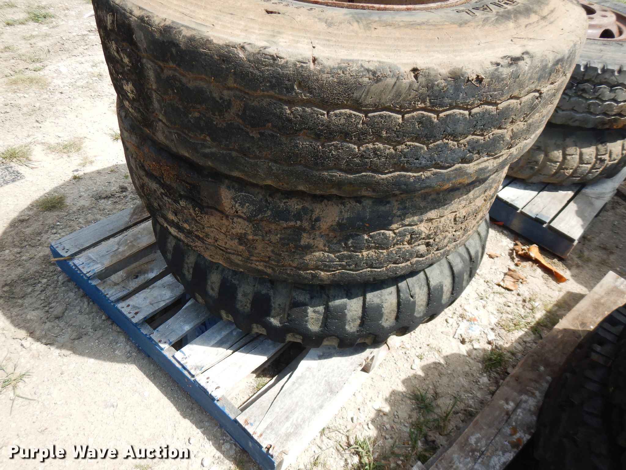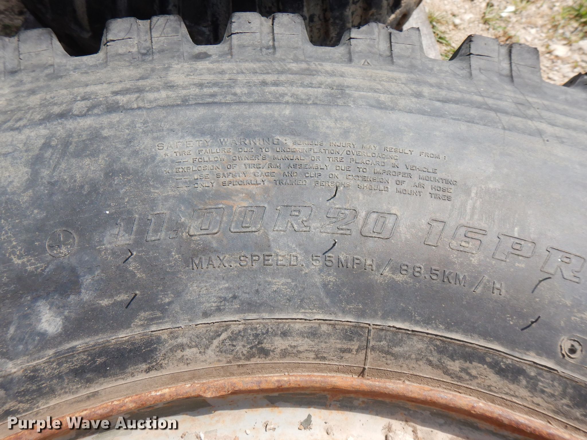 Purple Wave is selling a used Industrial Tires or Tracks in Kansas. This item is a Approximately 12 tires and wheels with the following: 11.00R20, (5) 11.00-20