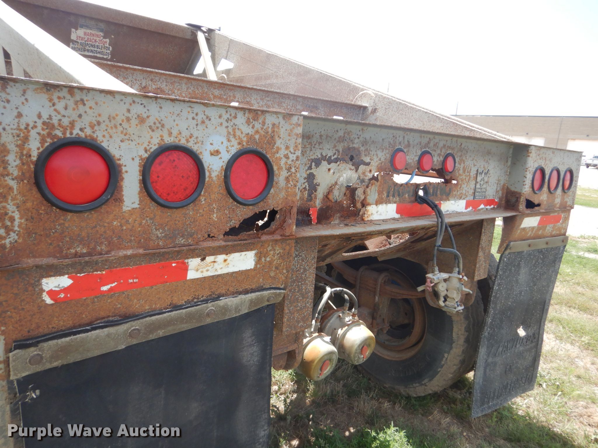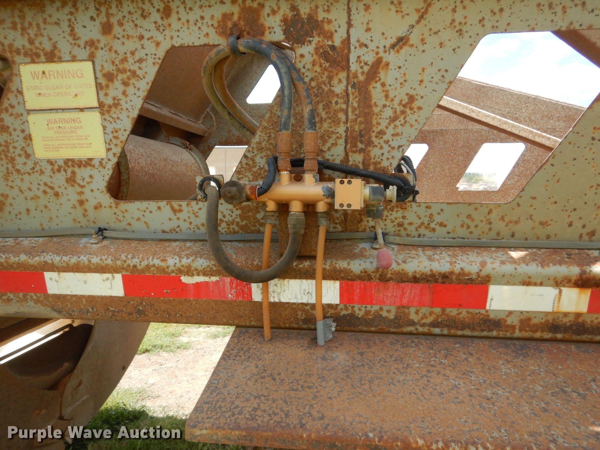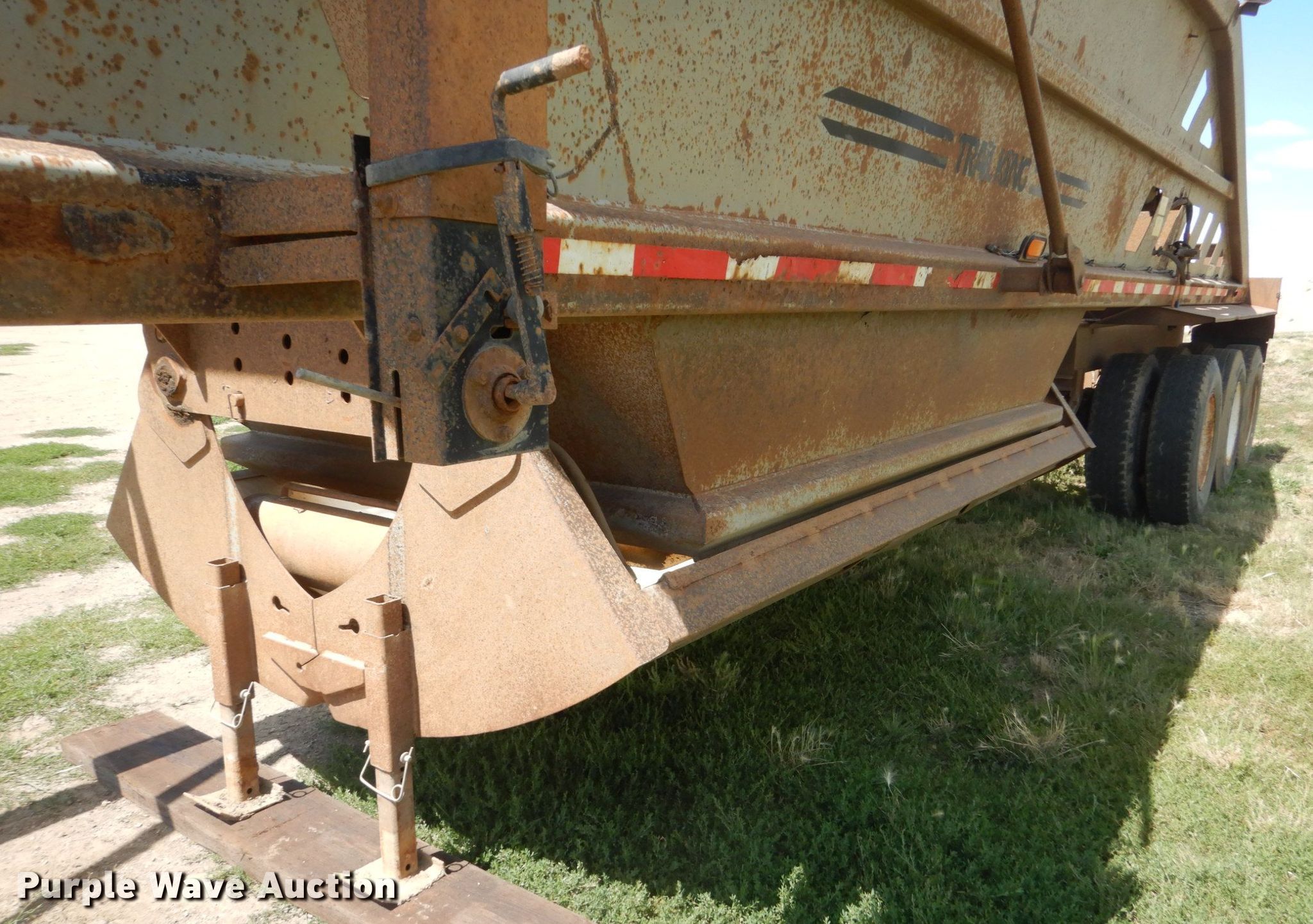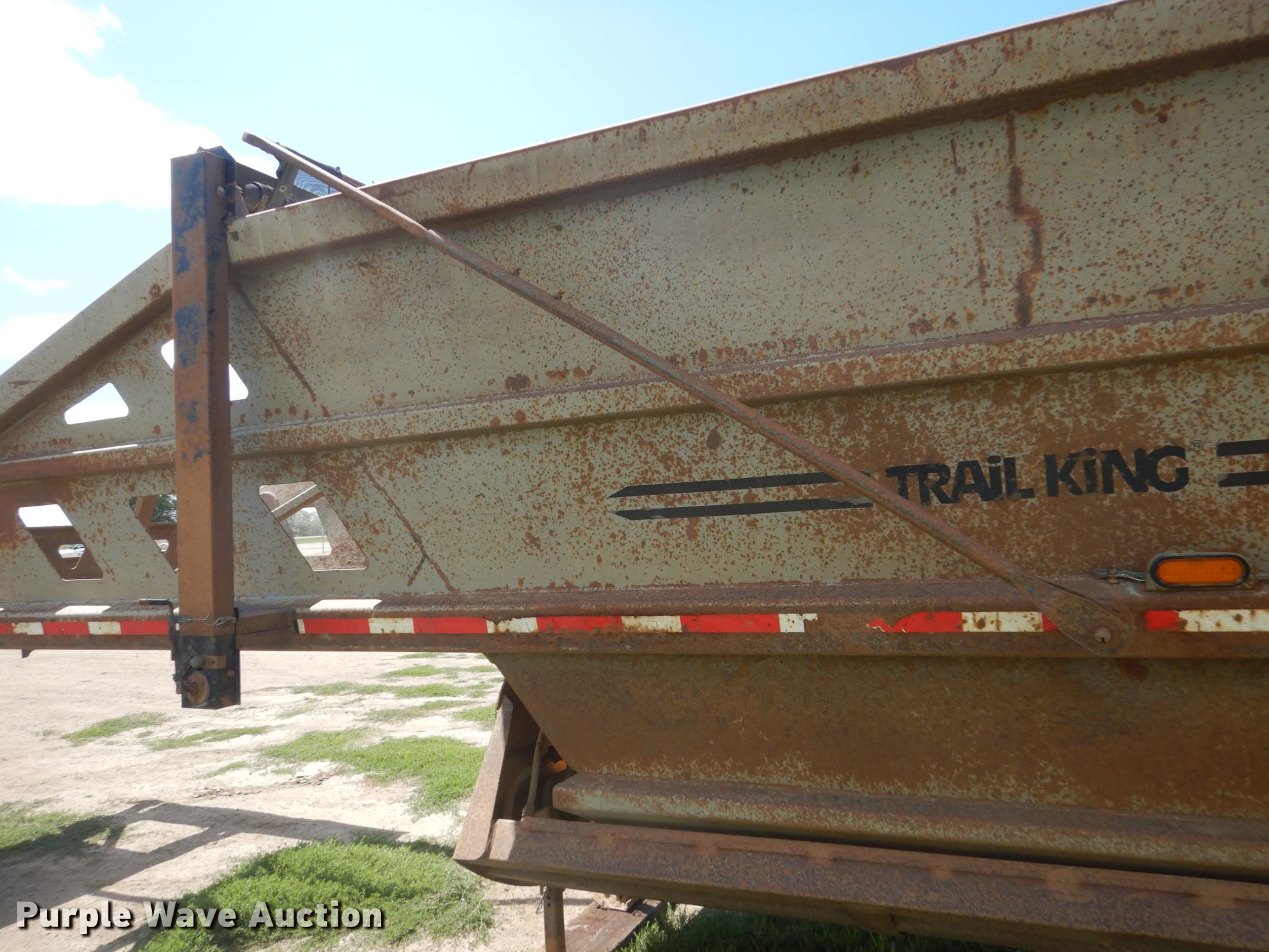 Purple Wave is selling a used Bottom Dump Trailer in South Dakota. This item is a 1998 Trail King 8X43 bottom dump trailer with the following: 43'L x 101"W overall, Air operated clamshell gate, Trailer controls, Poly liner, Tarp, Steel construction, Dual leg landing gear, Spring suspension, Air brakes, Triple axle, Steel wheels, 11R22.5 tires, Unit# BD-1