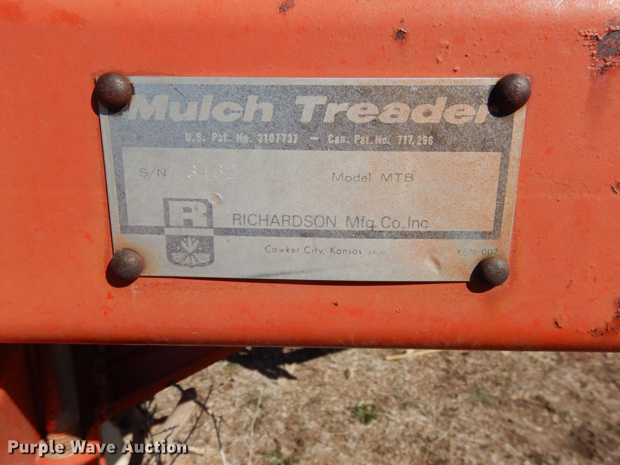 Purple Wave is selling a used Tillage Other in Oklahoma. This item is a Richardson MTB mulch treader with the following: 18'8"W, 6" spacing, Rolling pickers/treader, Hydraulic lift, 235/75R15 tires, Serial 3462