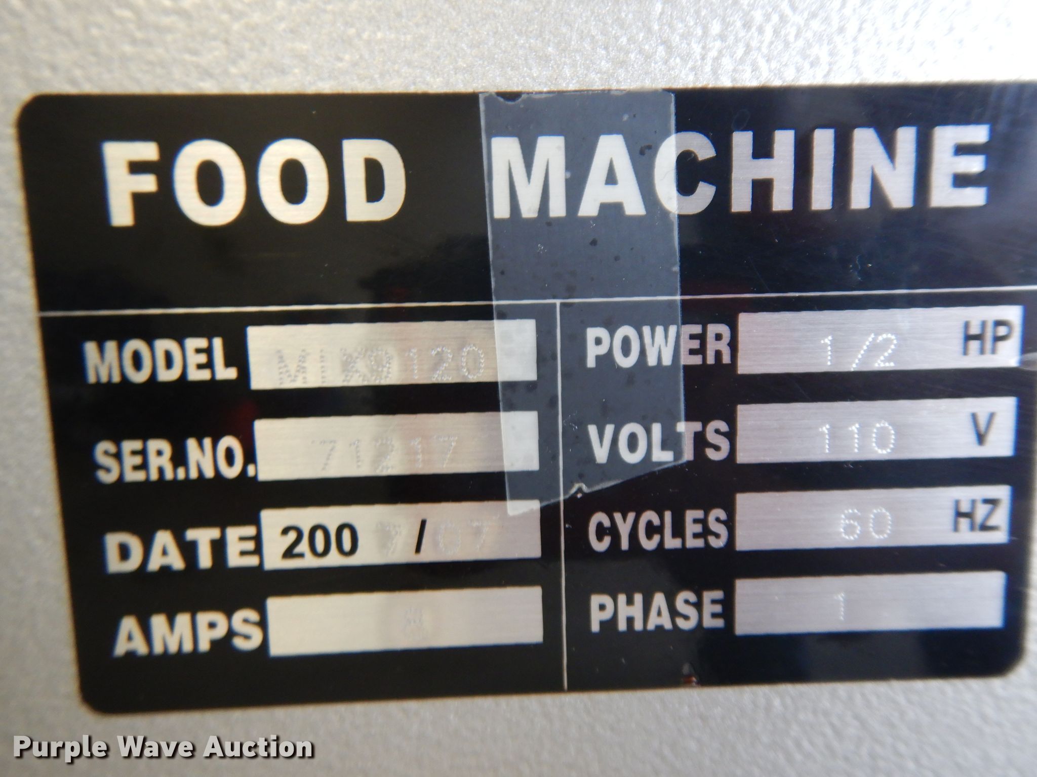 Purple Wave is selling a used Appliances in Kansas. This item is a Food Machine mixer with the following: Model M1X9120, 110V, 8 amps, Serial 71217