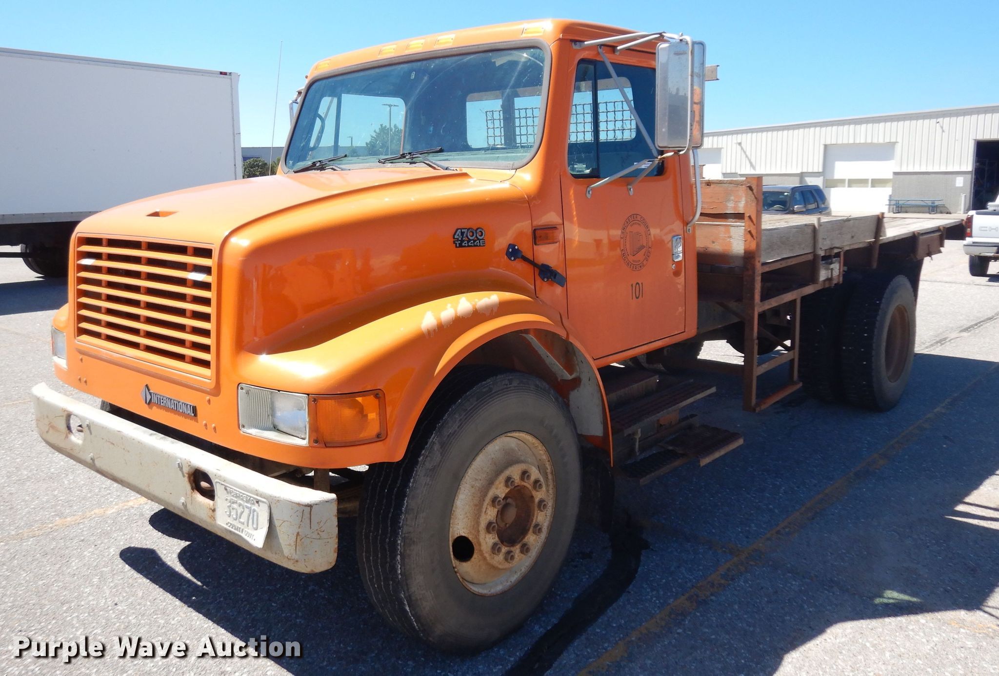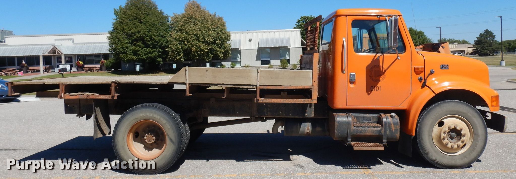 Purple Wave is selling a used Flat Bed Truck in Nebraska. This item is a 1995 International 4700 flatbed truck with the following: 141,005 miles on odometer, Engine hours: 8,063, Unit #: 101