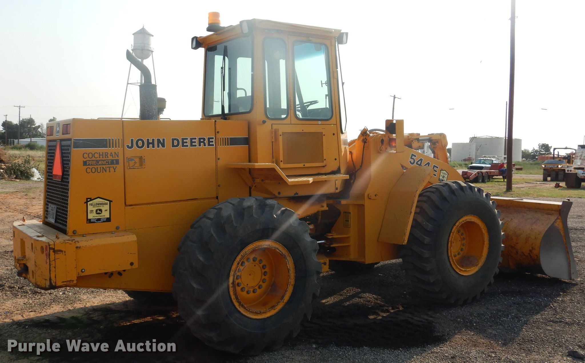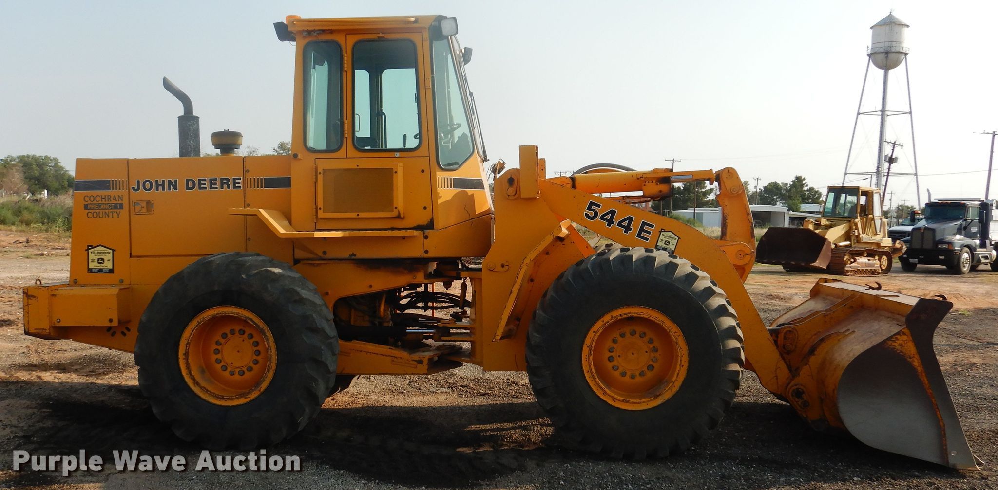 Purple Wave is selling a used Wheel Loader in Texas. This item is a 1988 John Deere 544E wheel loader with the following: 5,017 hours on meter, Serial: DW544EB519579