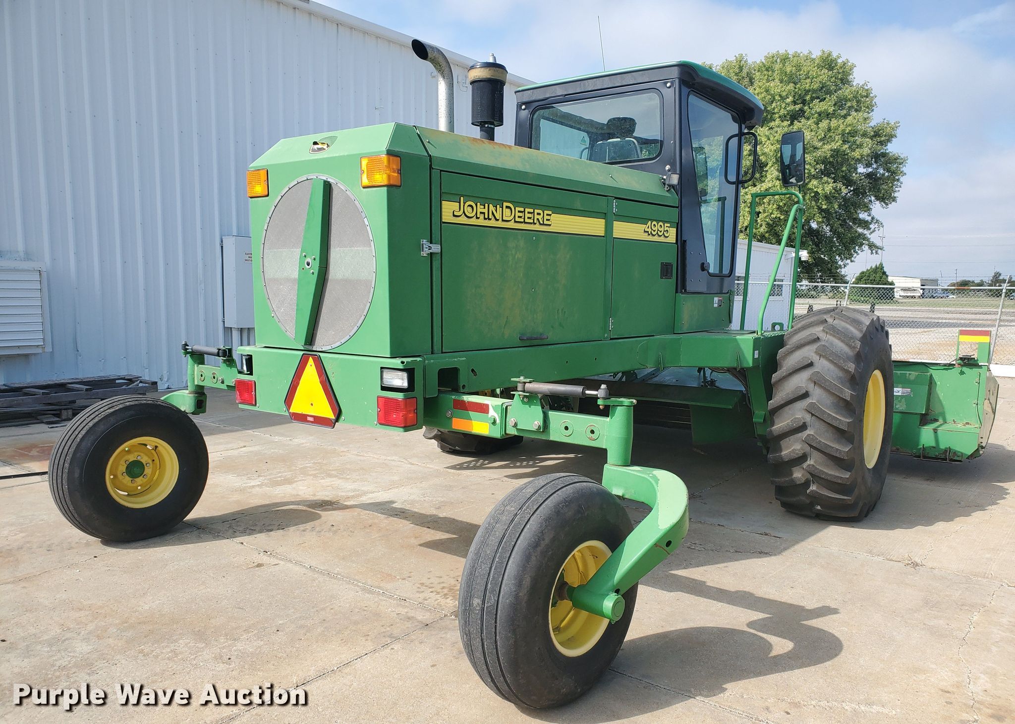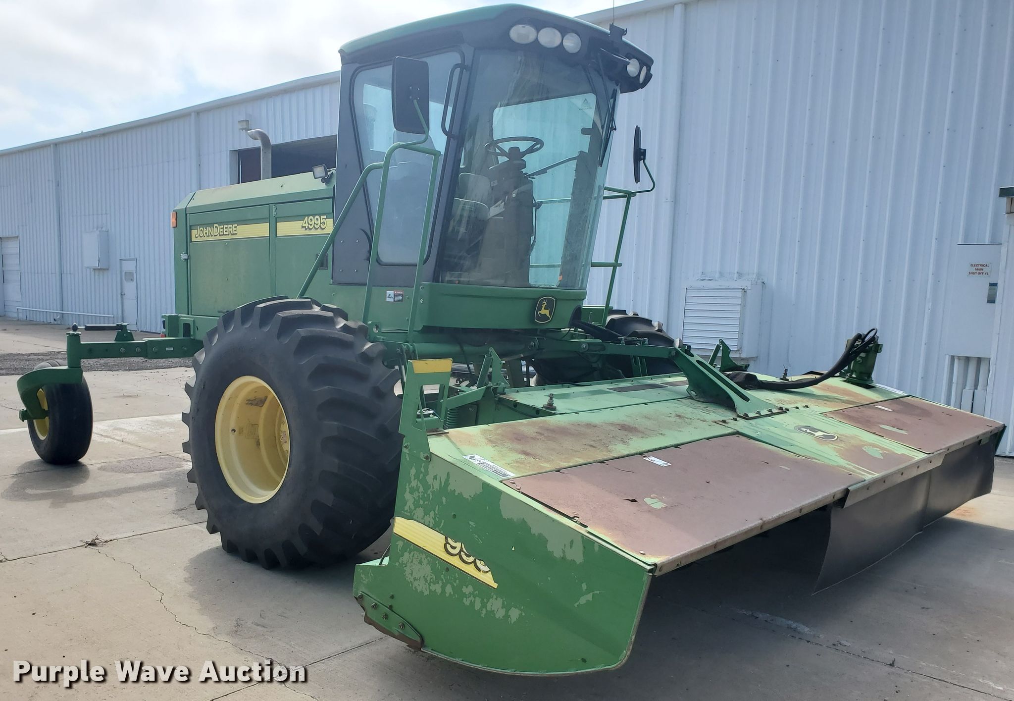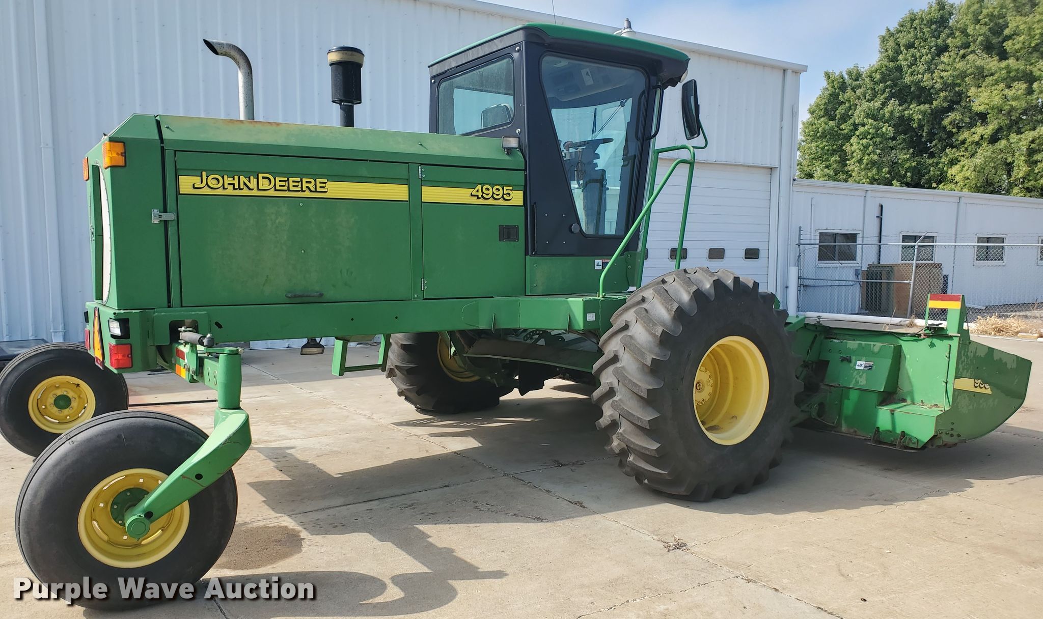 Purple Wave is selling a used Windrower Self Propelled in Kansas. This item is a 2007 John Deere 4995 windrower with the following: Engine hours: 1,986, Header hours: 1,471, Serial: E04995X330691