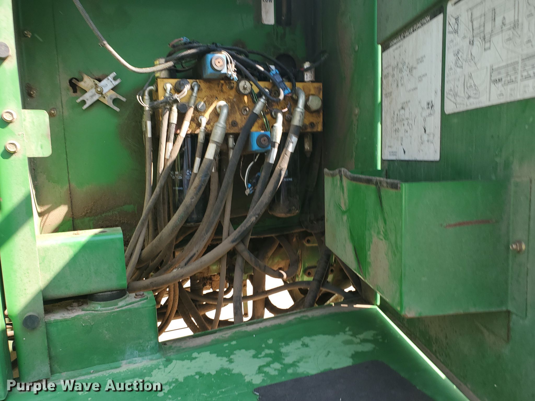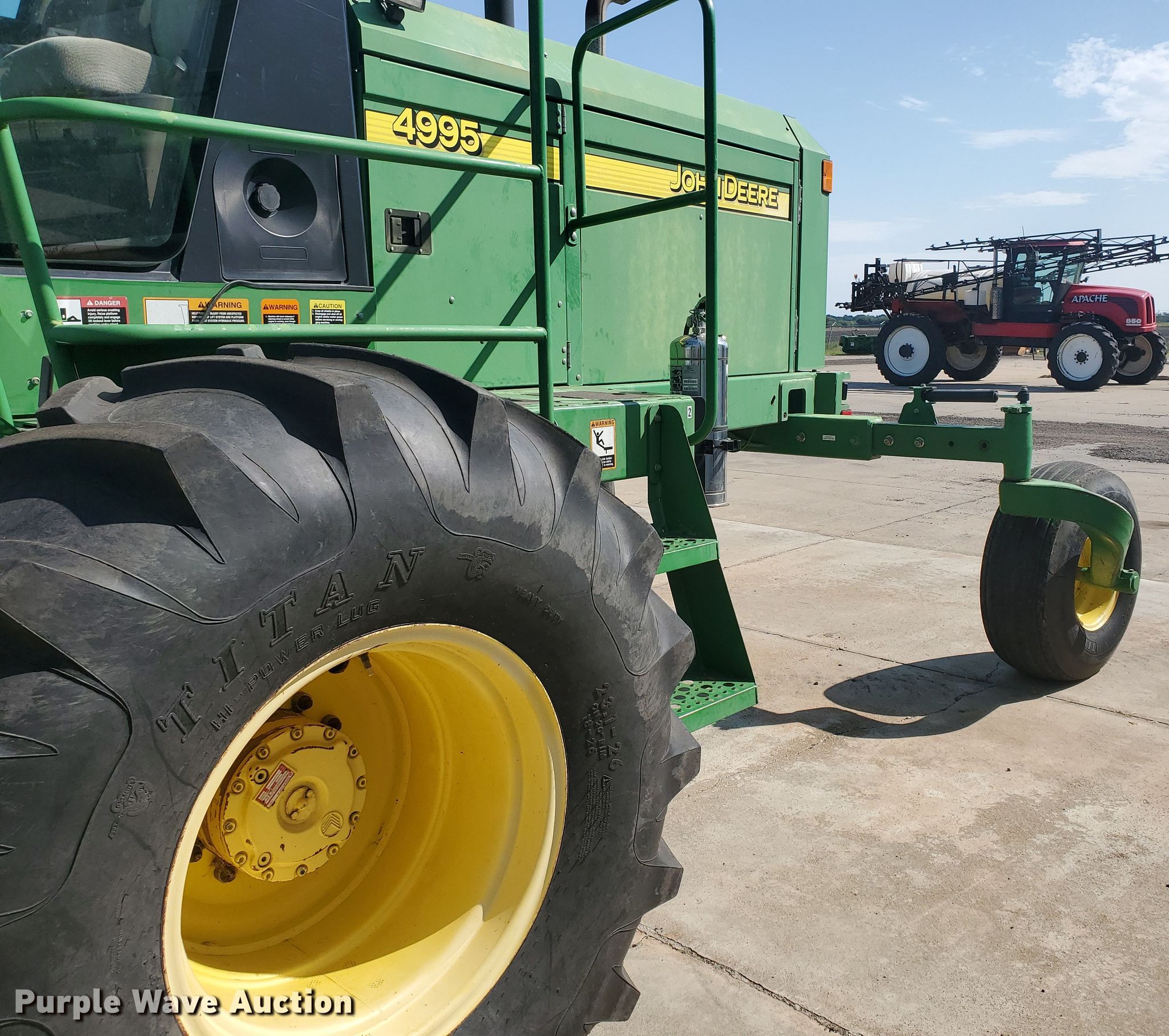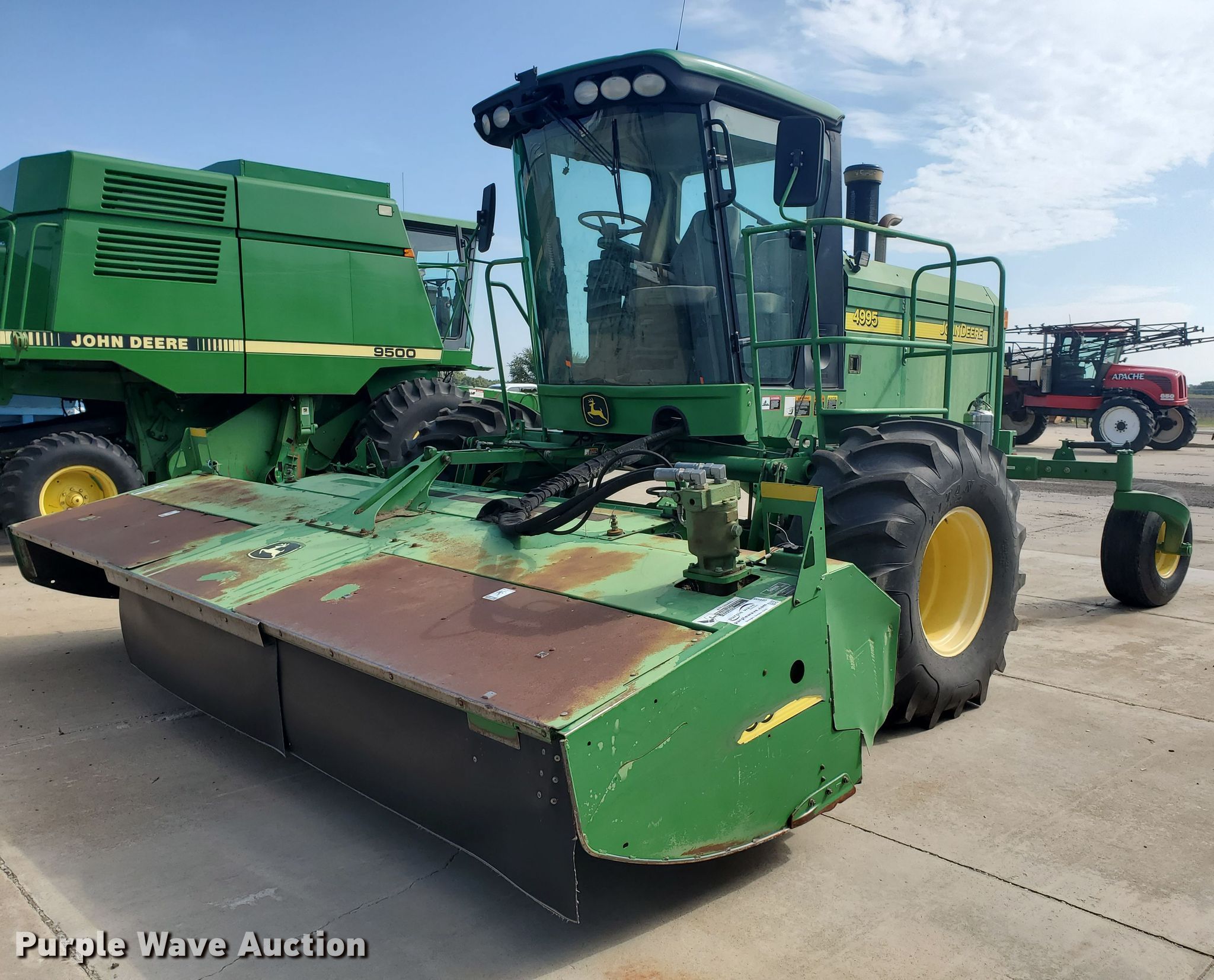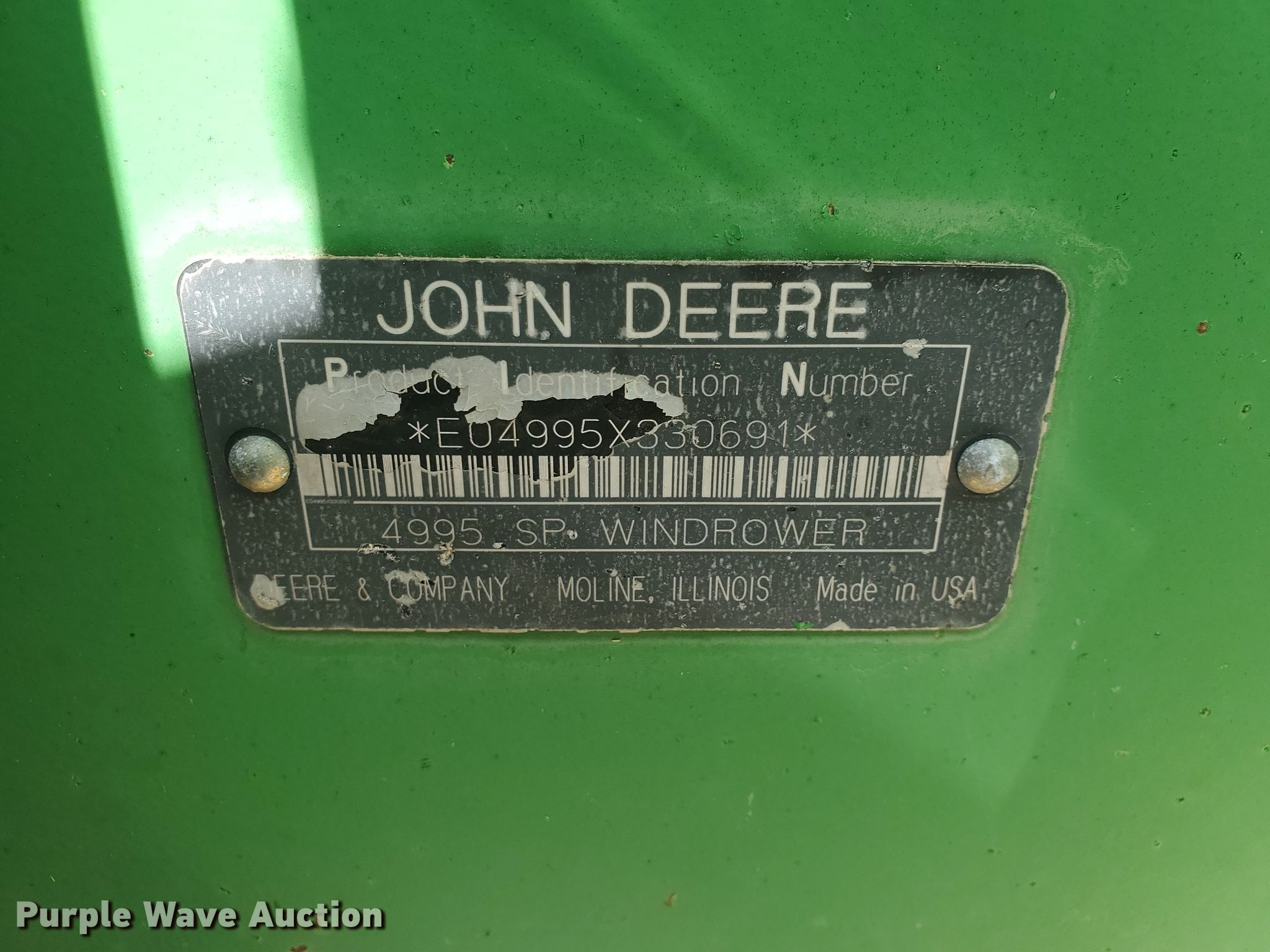 Purple Wave is selling a used Windrower Self Propelled in Kansas. This item is a 2007 John Deere 4995 windrower with the following: Engine hours: 1,986, Header hours: 1,471, Serial: E04995X330691