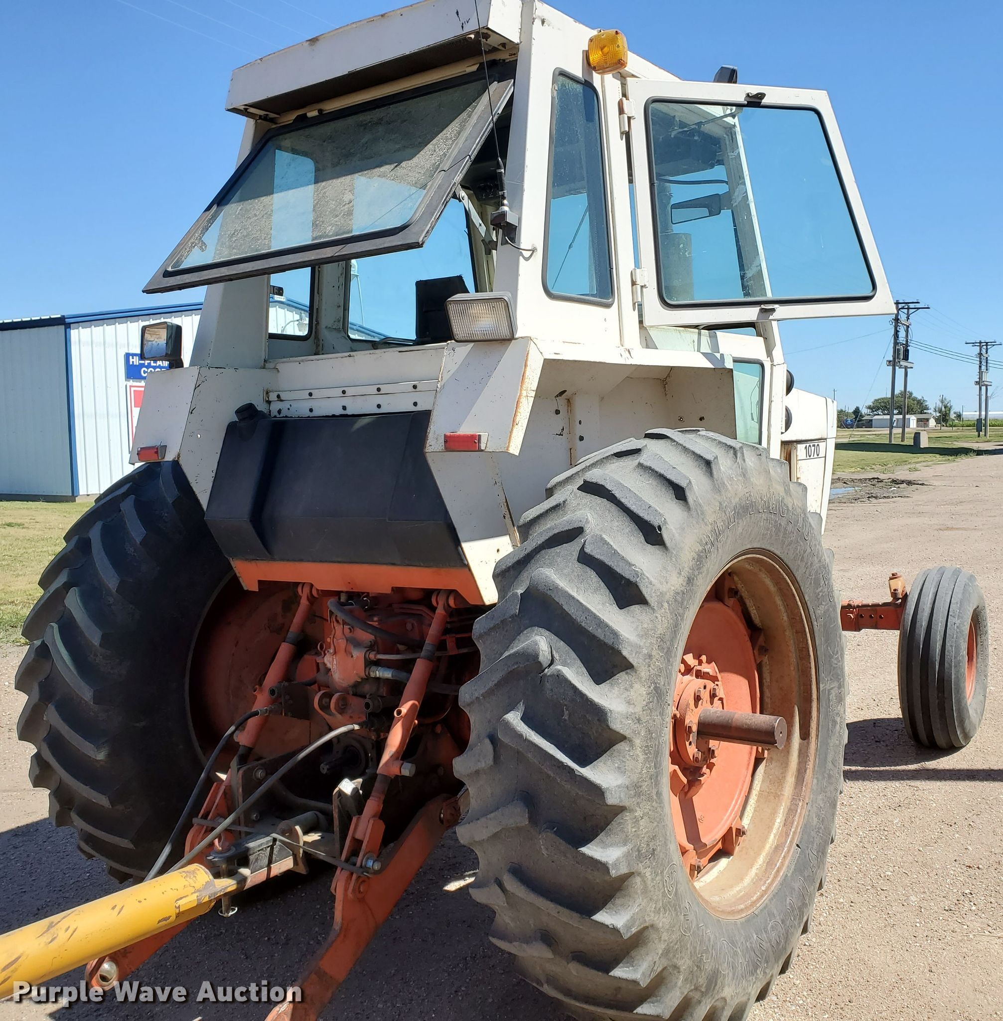 Case 1070 tractor. 1,807 hours on meter. Engine Displacement: 7.4L, Cylinders: 6, Fuel type: Diesel. Transmission Partial powershift, 12F - 4R. Operators station Heat. Operational PTO: 540, Three point, Hydraulic remote sets Rear: 2. Tires Front: 11.00-16, Rear: 480/80R38, Wheel weights: 2. 4680 Hwy 40. Grainfield, KS 67737