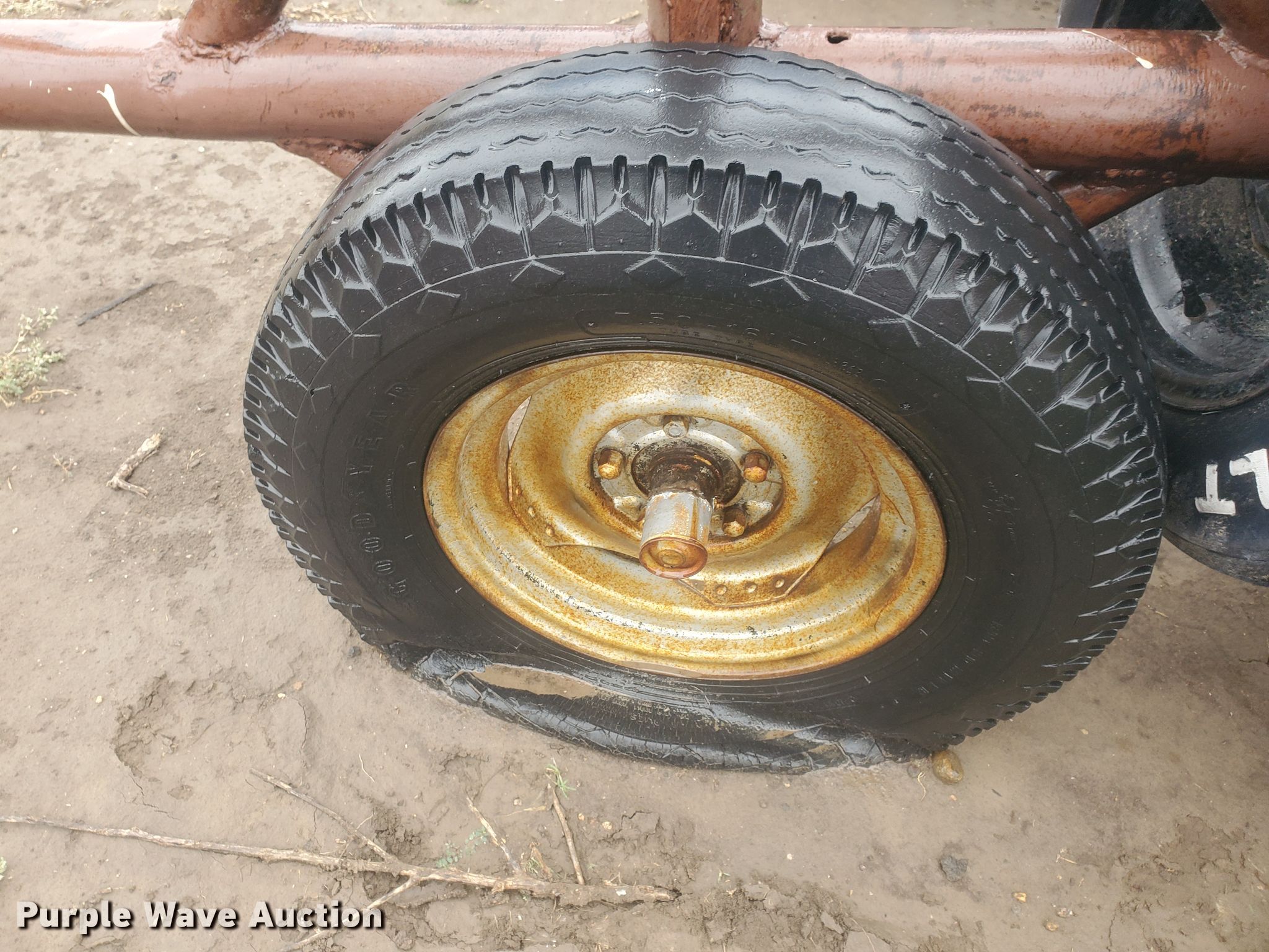 Purple Wave is selling a used Trailer Other in Kansas. This item is a Shop built propane tank mover with the following: Approx. 15'L, Tire bumpers, Manual pump hydraulic lift, 7.50-16 tires