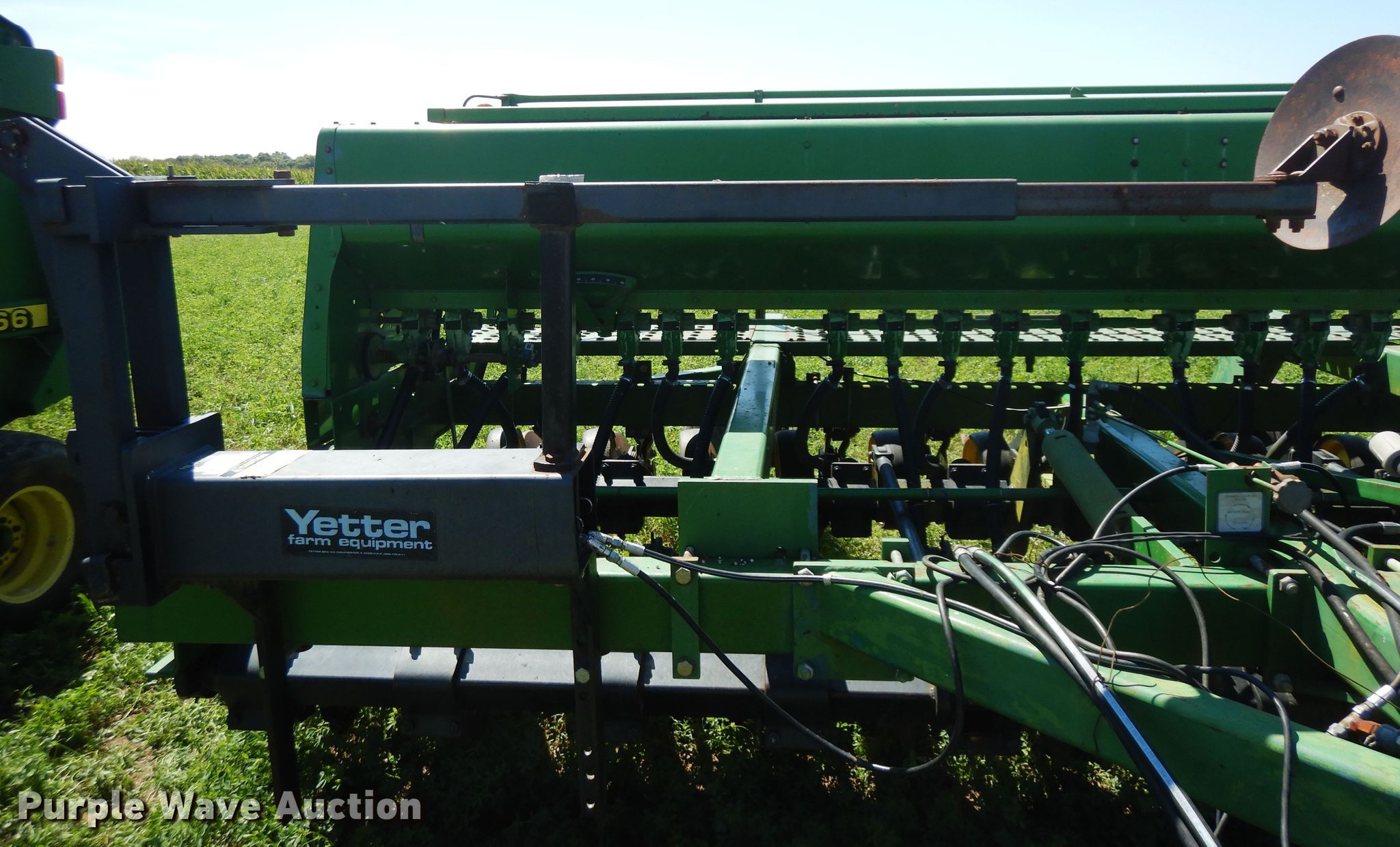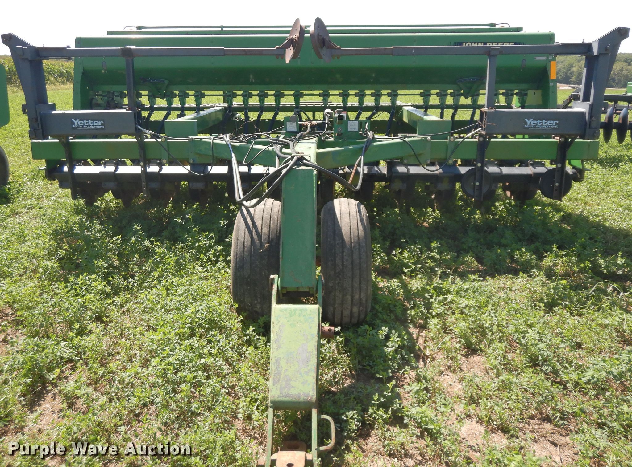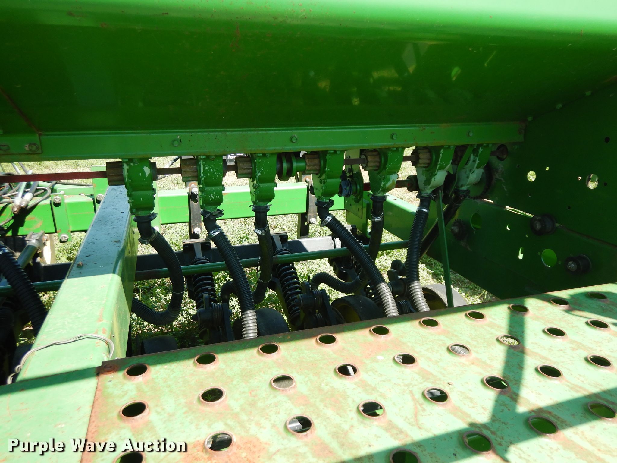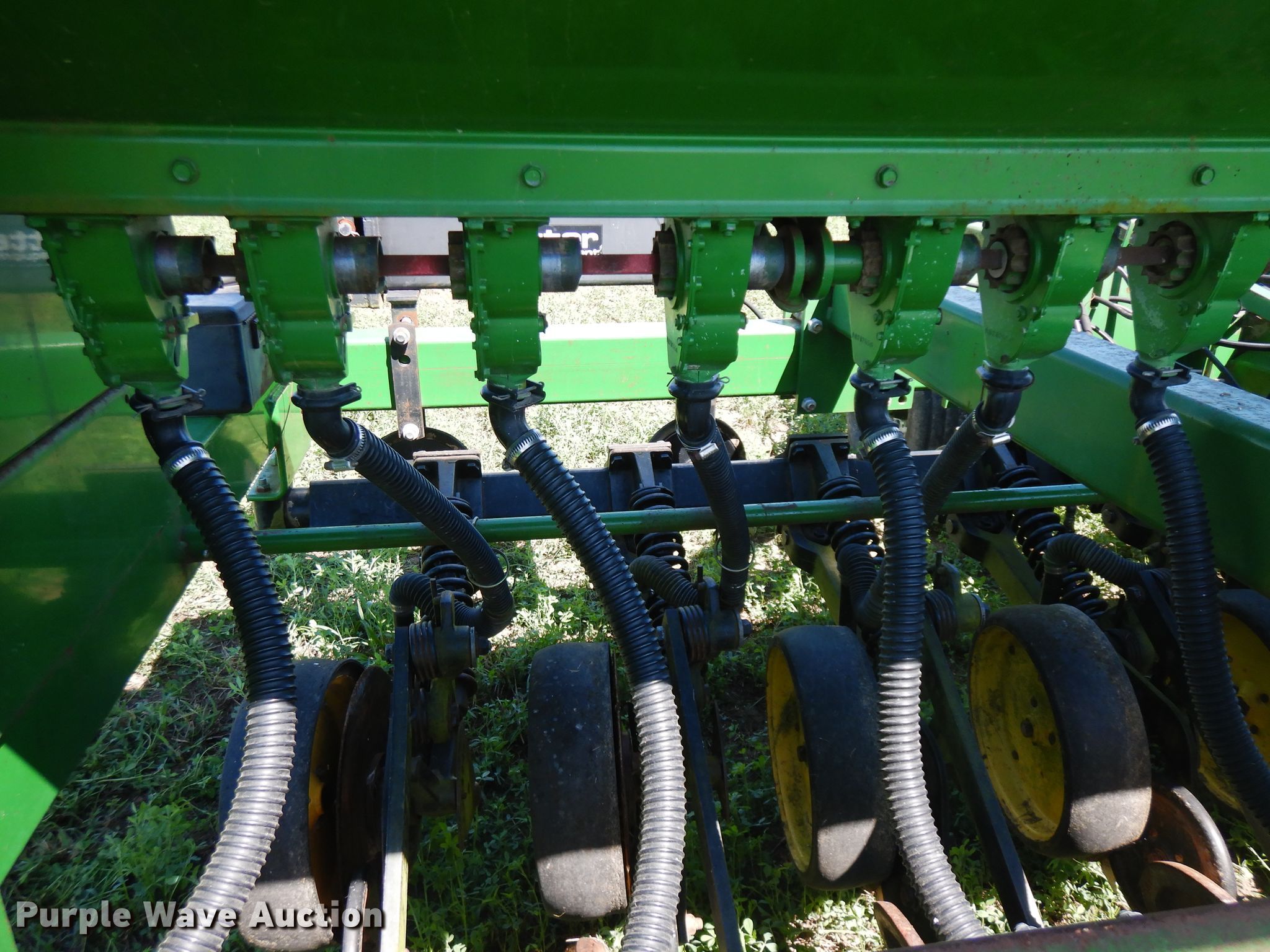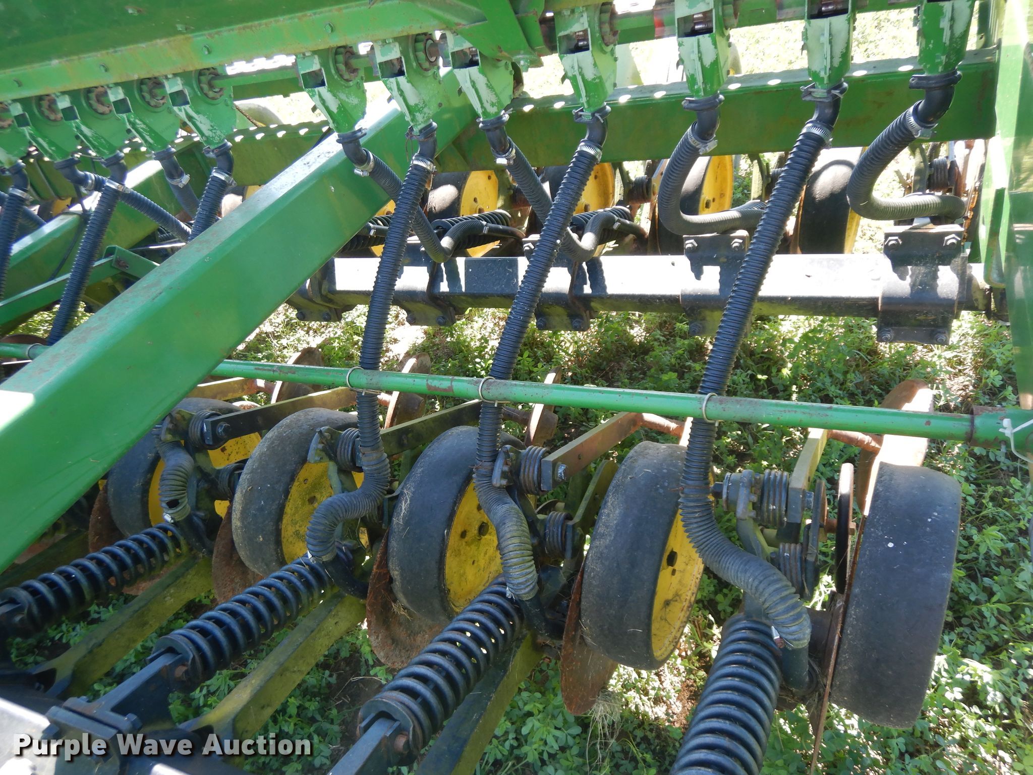 Purple Wave is selling a used Grain Drill or Seeder in Illinois. This item is a 2007 John Deere 750 split row grain drill with the following: 15'W, 12 row units, 7.5" row spacing, Marker arms, Front fold, Bulk fill system, Spring down pressure, Single disk openers, Single gauge wheels, Single rubber closing system, (2) 11L-15 transport tires, Serial 00750X008017