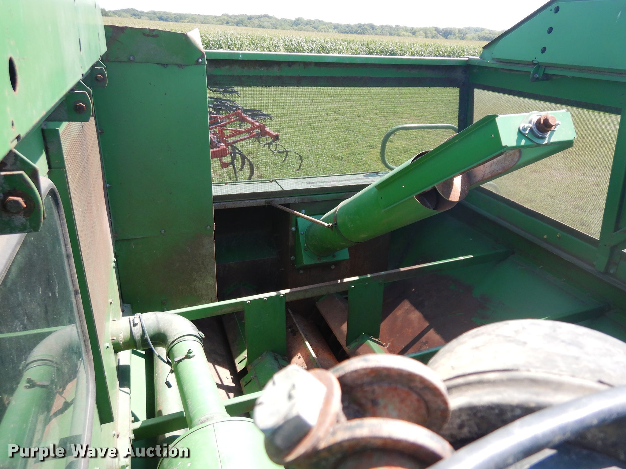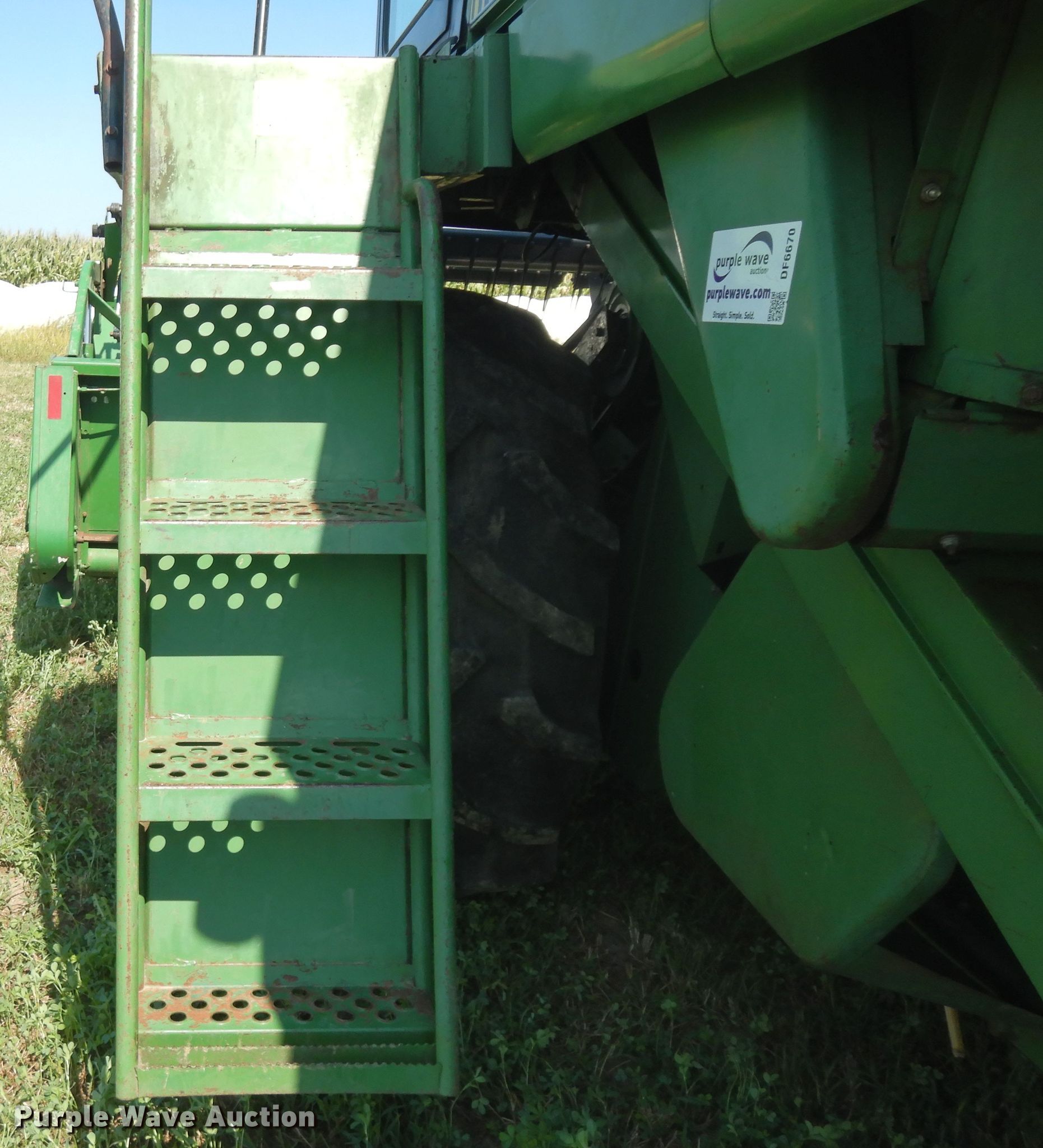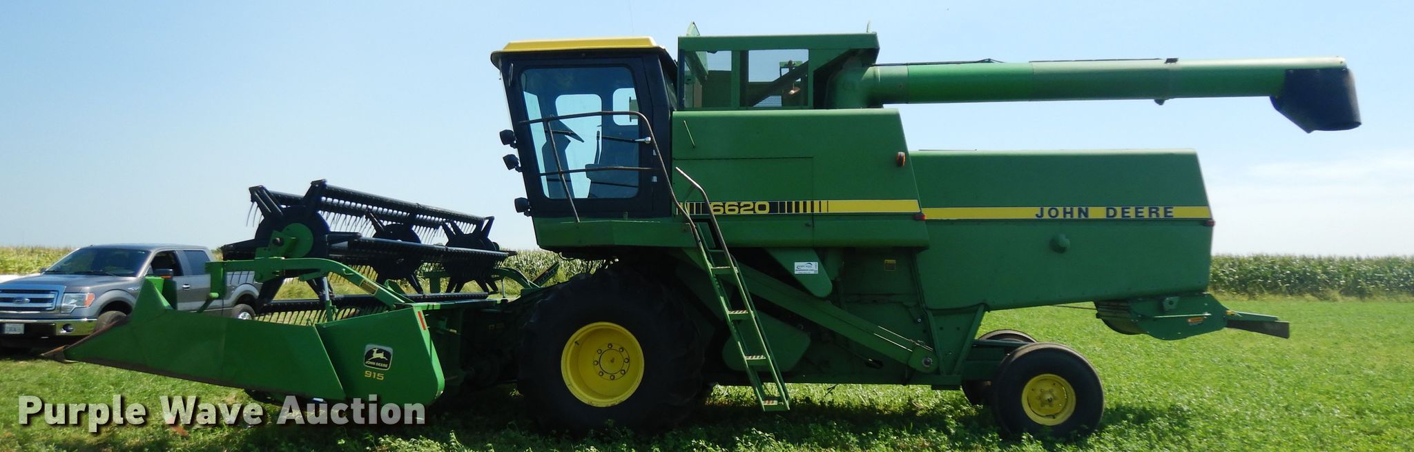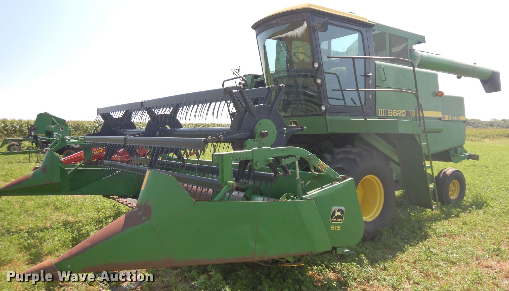 Purple Wave is selling a used Combine in Illinois. This item is a 1980 John Deere 6620 combine with the following: 2,377 engine hours on meter, John Deere six cylinder diesel engine, 125 HP, Serial 6466TH01-111368RG, Hydrostatic transmission, 4F-3R gears, Feederhouse, Variable speed, Reverser, Heat, Round concaves, Straw chopper, Bin extensions, 14'L unloading auger, John Deere 915 flex head, 15'W, Finger reel, Poly skid plates, Dual drivelines, Single point coupler, Serial N00915f637092, Goodyear 28L-26 front tires, Goodyear 10.00-16 rear tires, Serial 403753