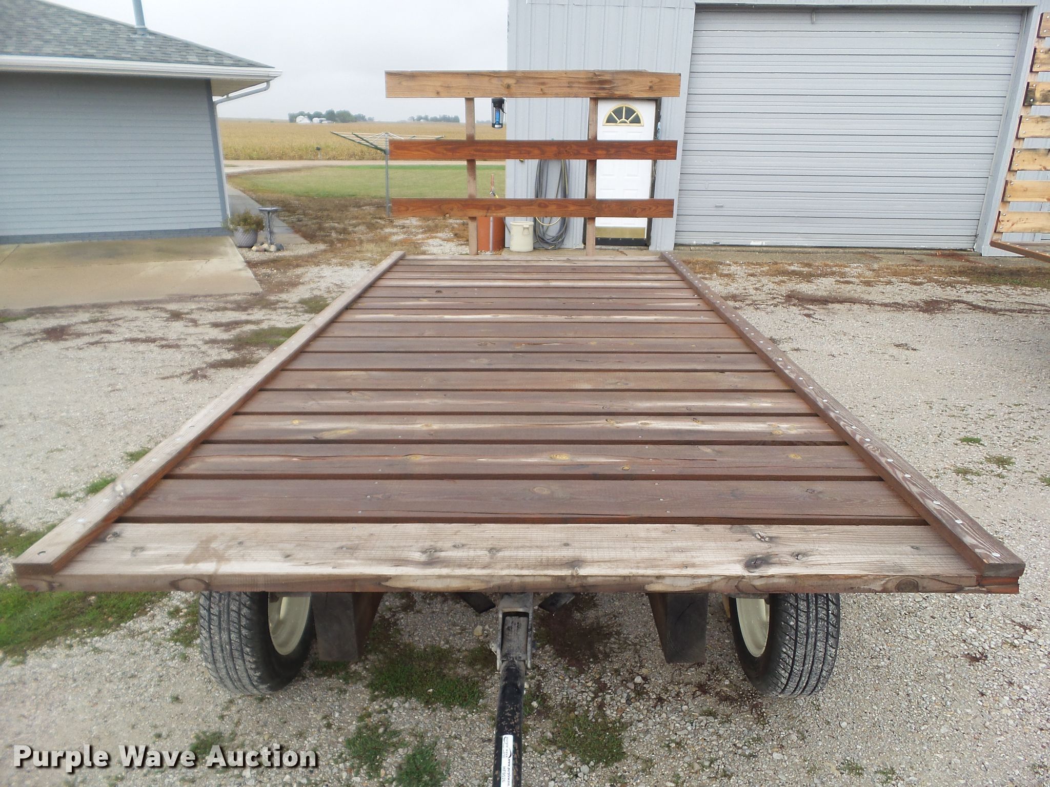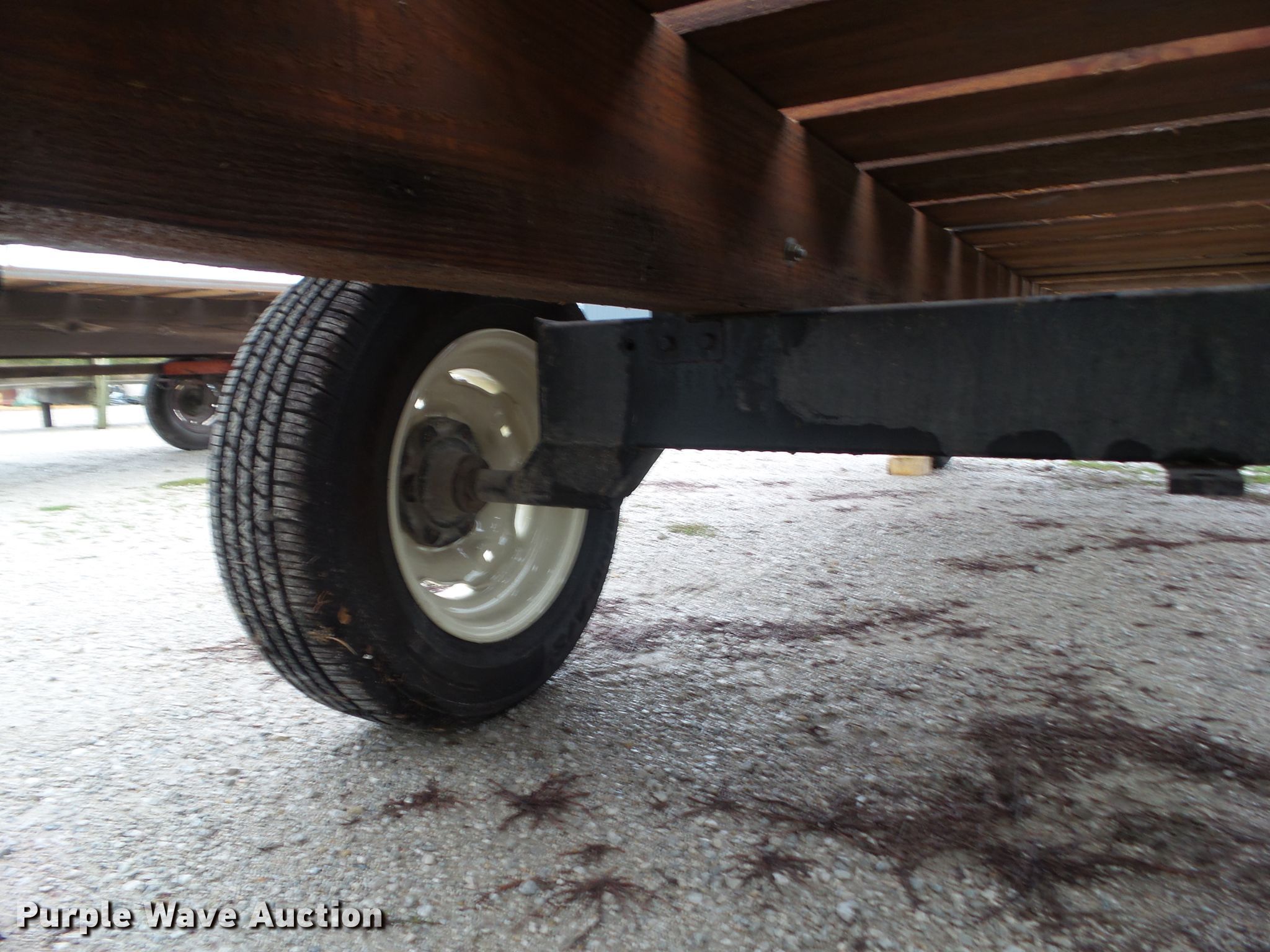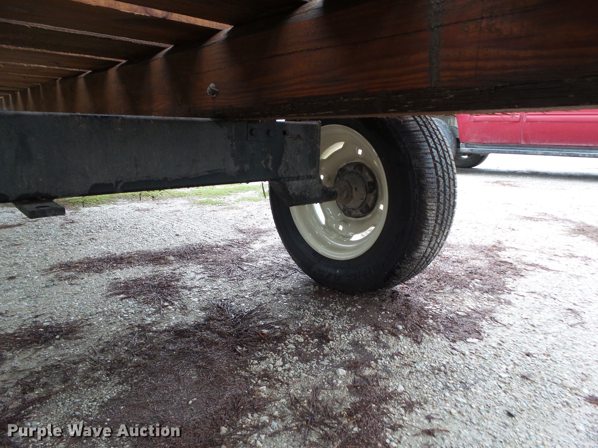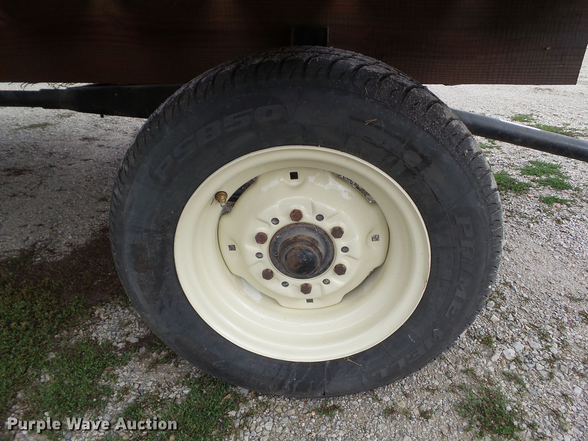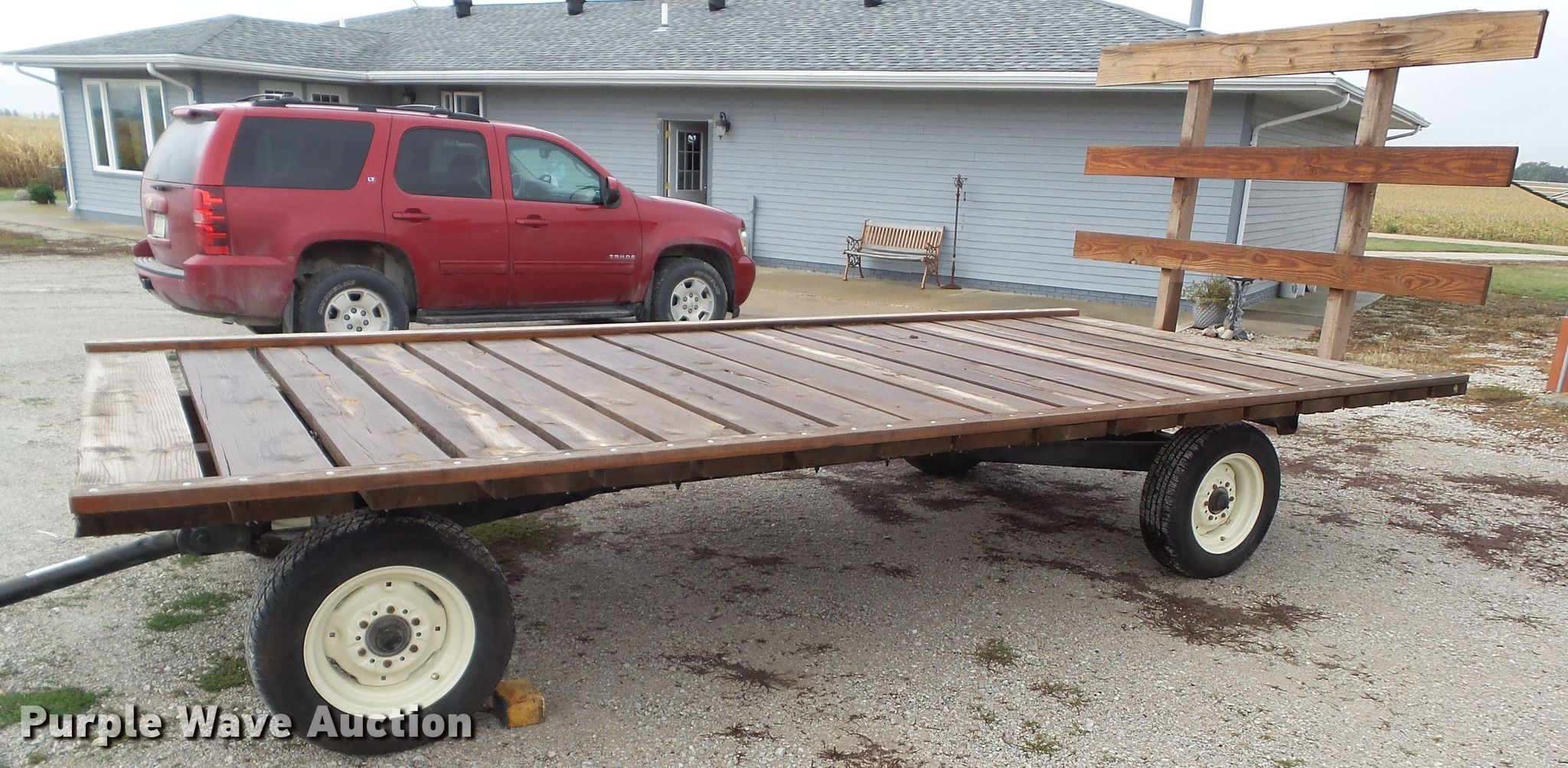 Purple Wave is selling a used Hay Handling in Iowa. This item is a Hay wagon with the following: 16.5'L x 8'W, 2" x 10" wood deck, 5' adjustable tongue, Rear hitch, 205/70R15 tires