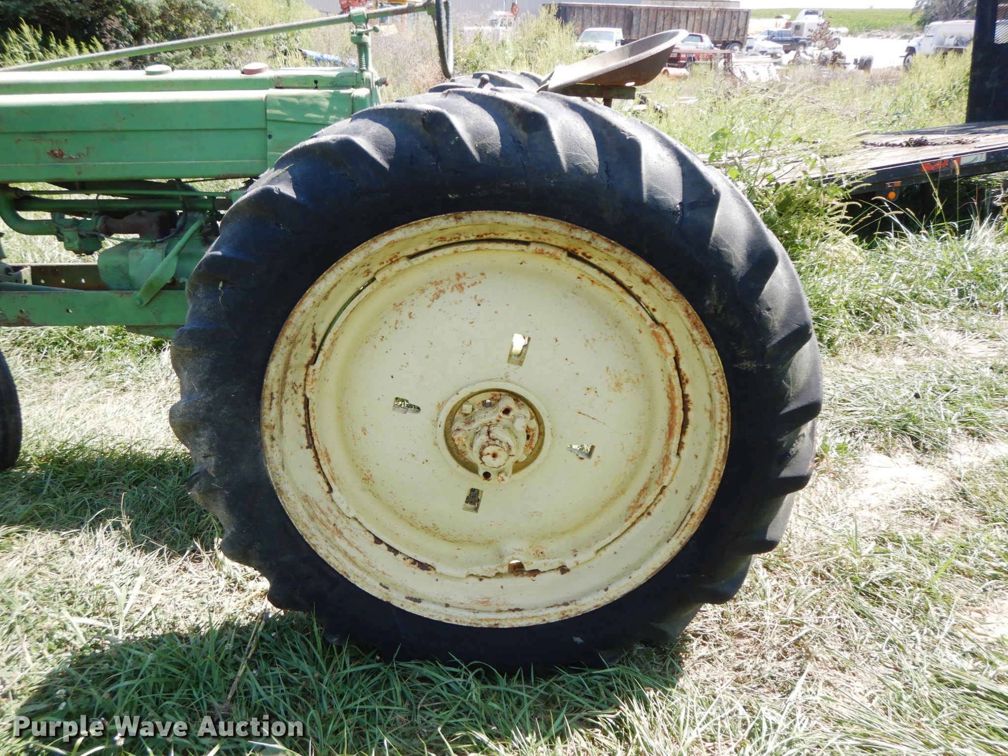 John Deere tractor. Engine. Cylinders: 2, Fuel type: Gas. Transmission Manual, 6F - 1R. Operational PTO: 540. Tires Front: 5.50-16, Rear: 12.4-38. Notes Unknown operating condition. Chad Markert Trucking LLC. 895 800e St. Mount Sterling, IL 62353