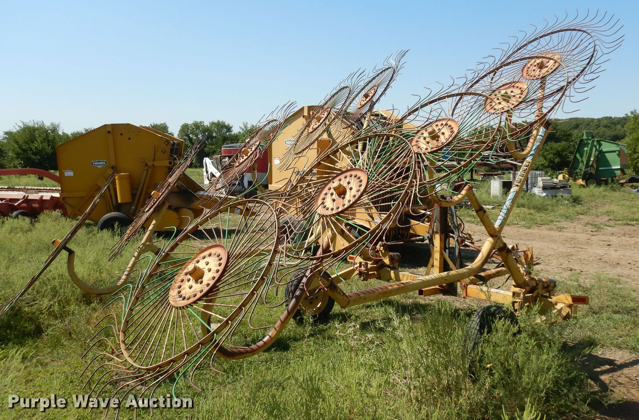Purple Wave is selling a used Hay Rake in Kansas. This item is a Vermeer WR22 hay rake with the following: 22'W, 175/70R14 tires, Serial 1VRB161X9S1000340