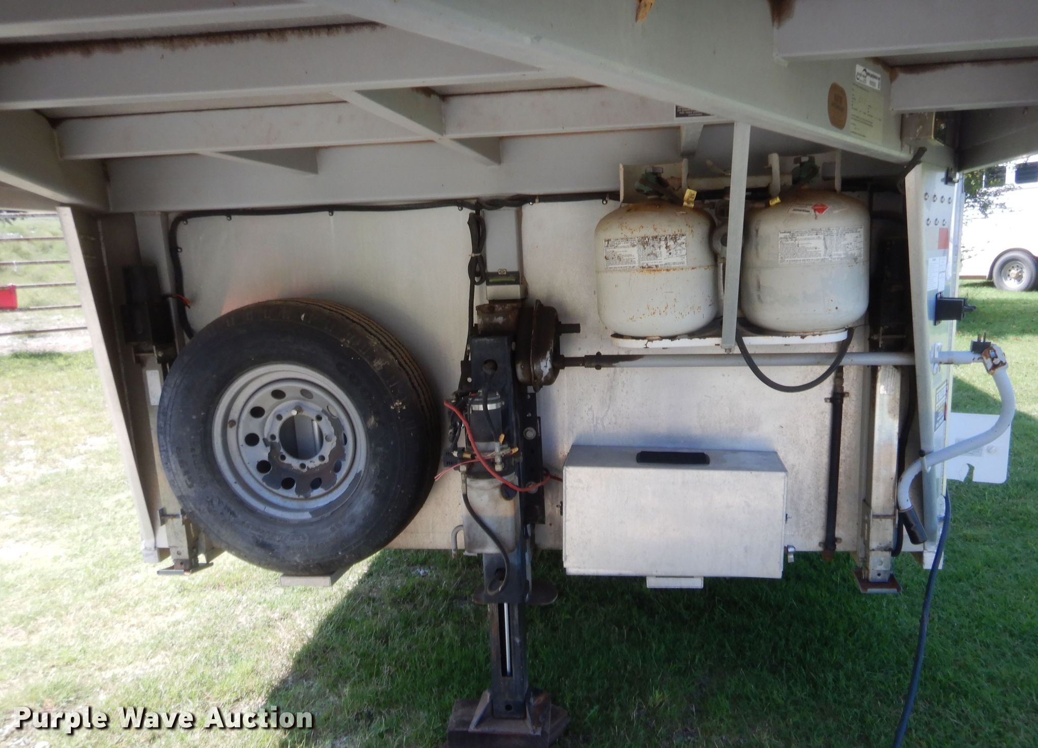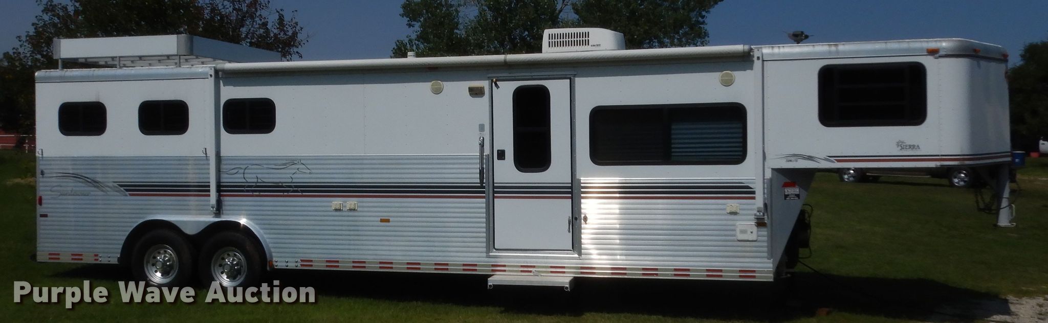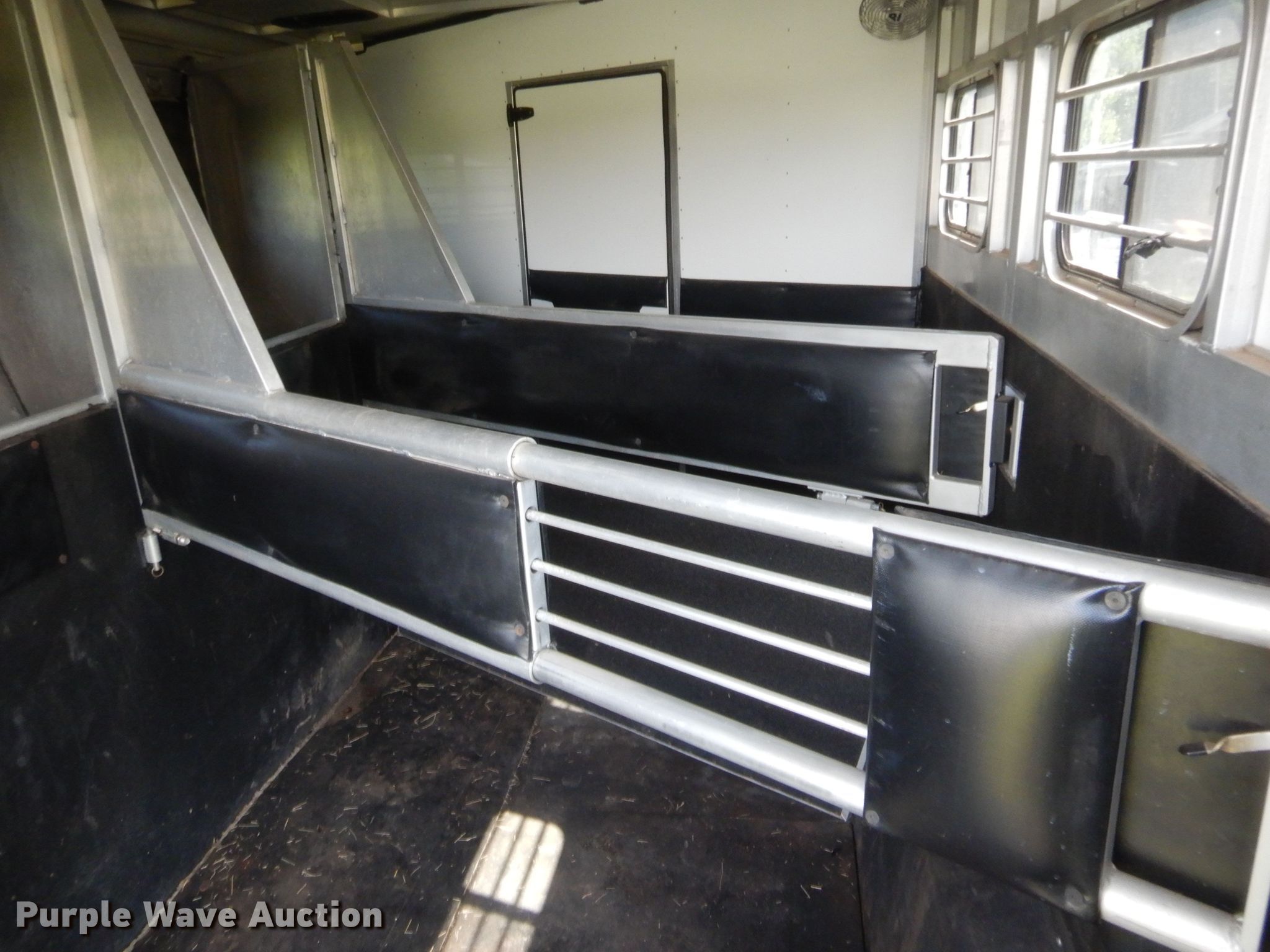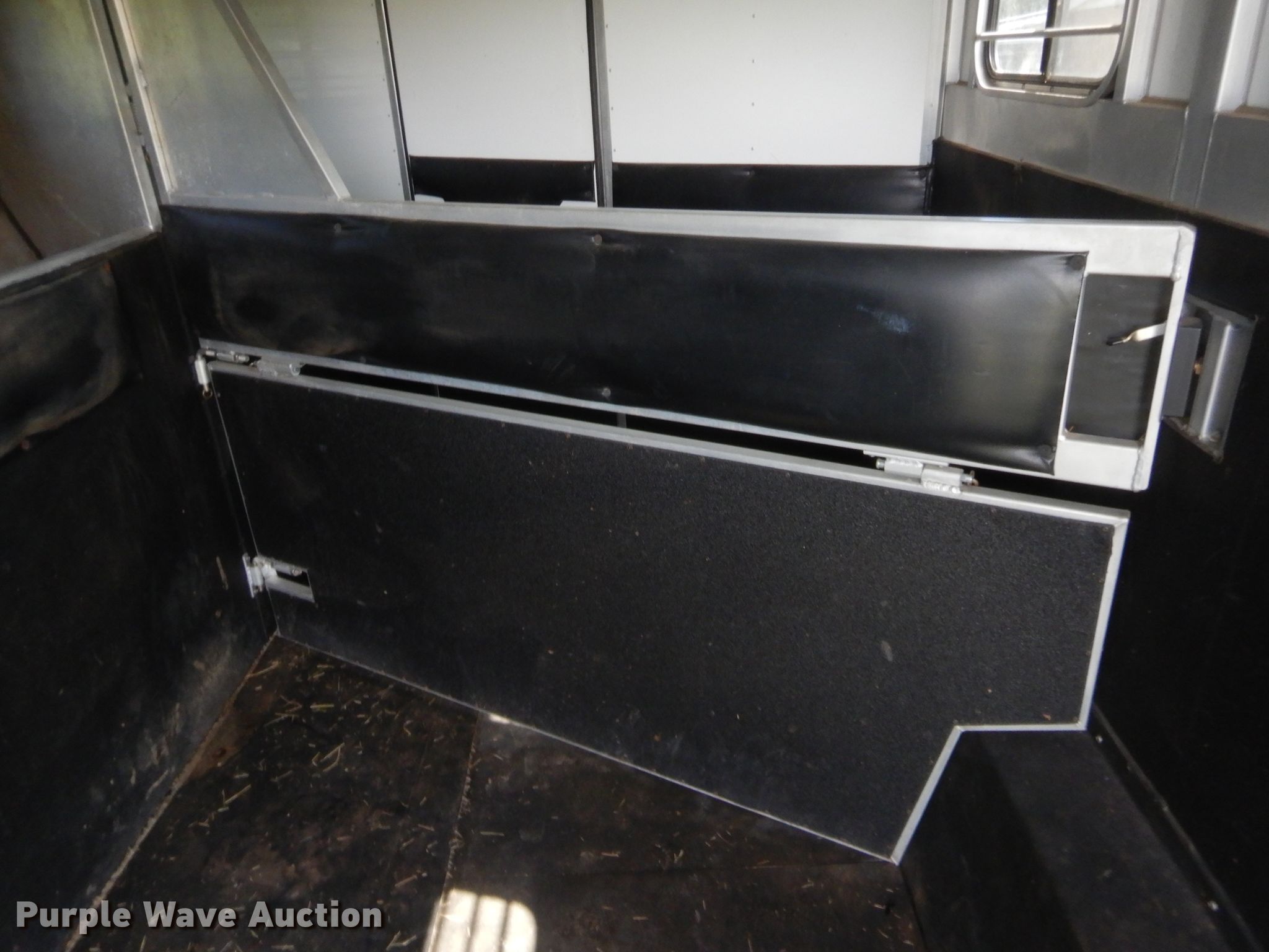 Purple Wave is selling a used Livestock Trailer in Oklahoma. This item is a 2000 Sundowner livestock trailer with the following: 35'L x 96"W overall, 27'L x 91"W body, Three horse capacity, (2) center gates, Spring suspension, Electric brakes, Tandem axle, 7.50R16 tires, GVWR 17,500 lbs