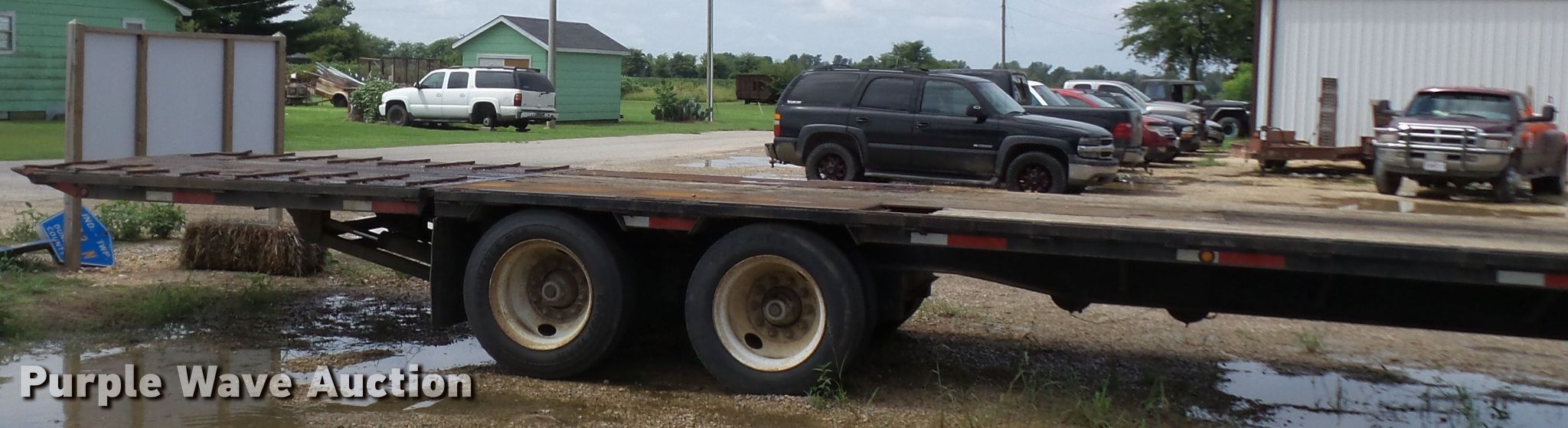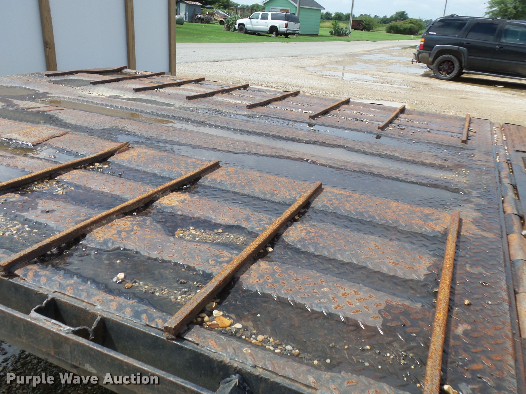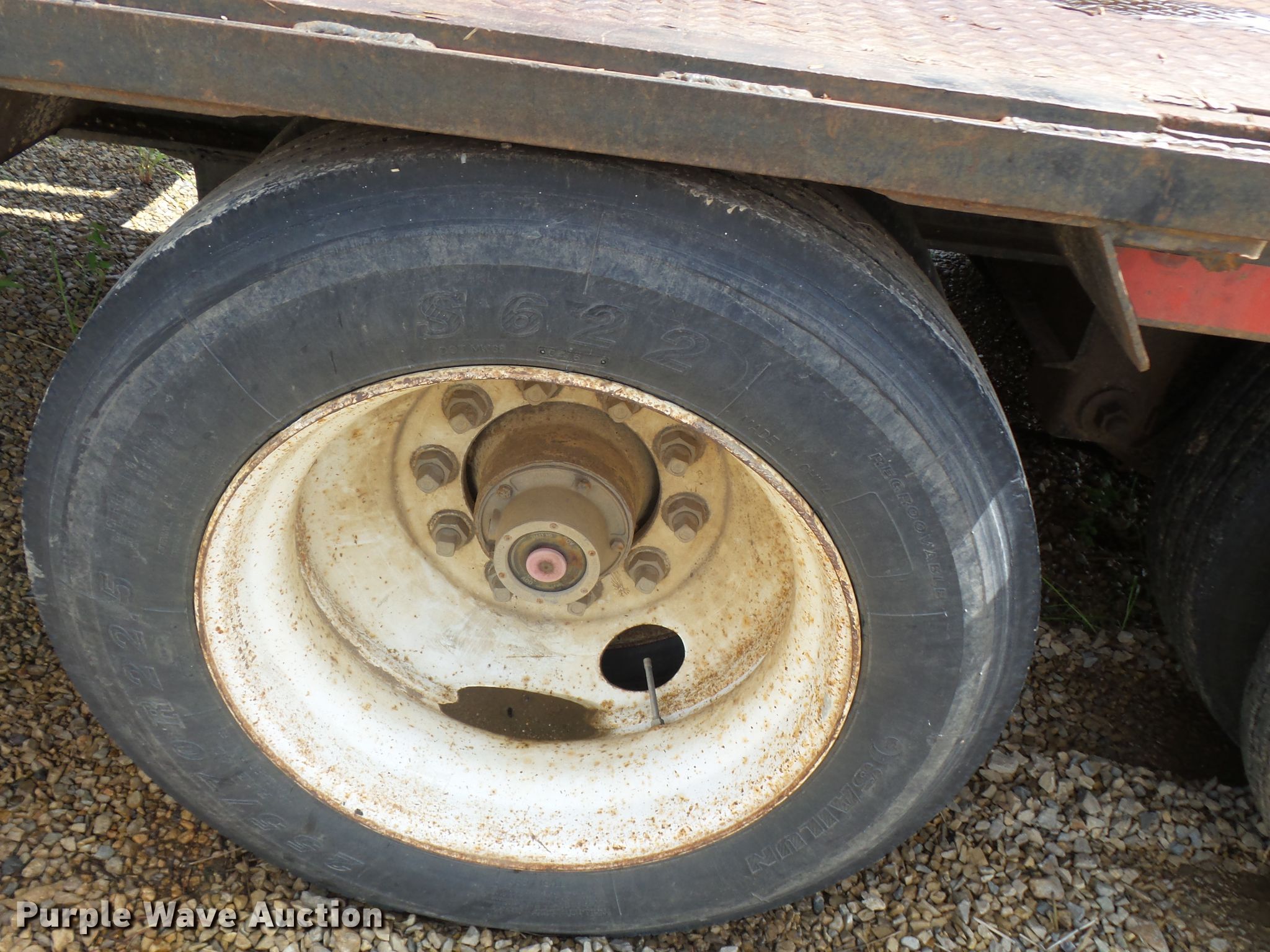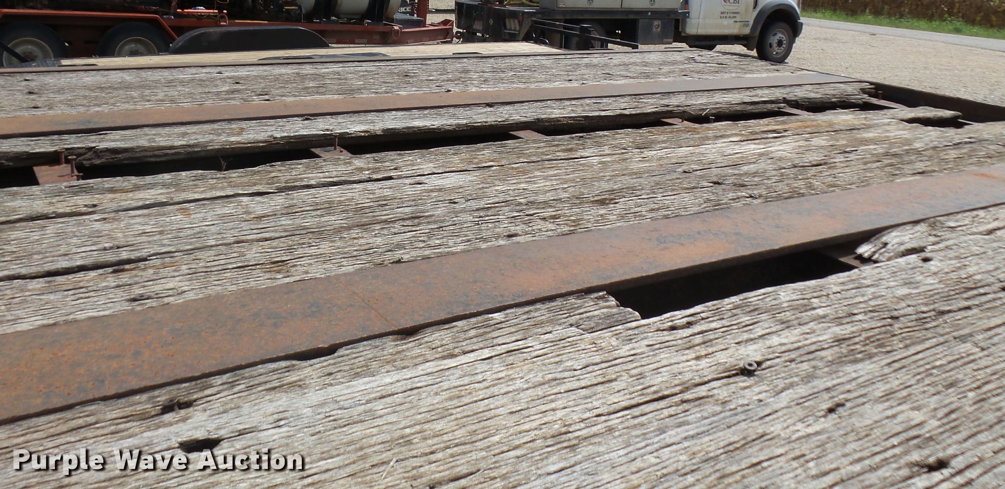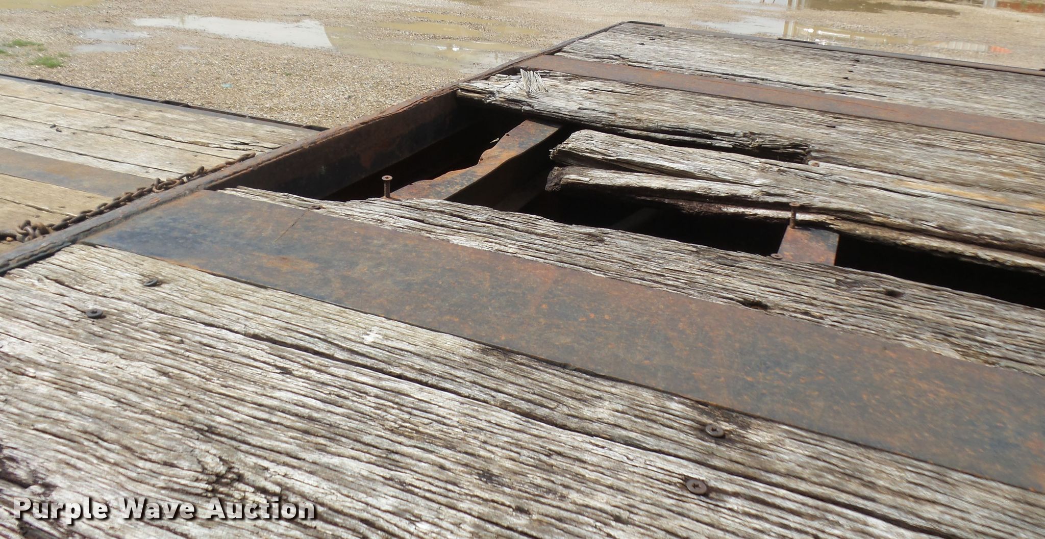 Purple Wave is selling a used Equip. Trailer in Missouri. This item is a 1995 Duty Mfg Inc DDH45 drop deck equipment trailer with the following: 35'L x 102"W overall, 10'L top deck, 23'L x 98"W deck, 9'L Hydratail, 39" floor height, Wood deck, Tulsa winch, Manual hydraulic controls, Dual leg two speed landing gear, Air suspension, Air brakes, Tandem axle, Steel wheels, 255/70R22.5 tires