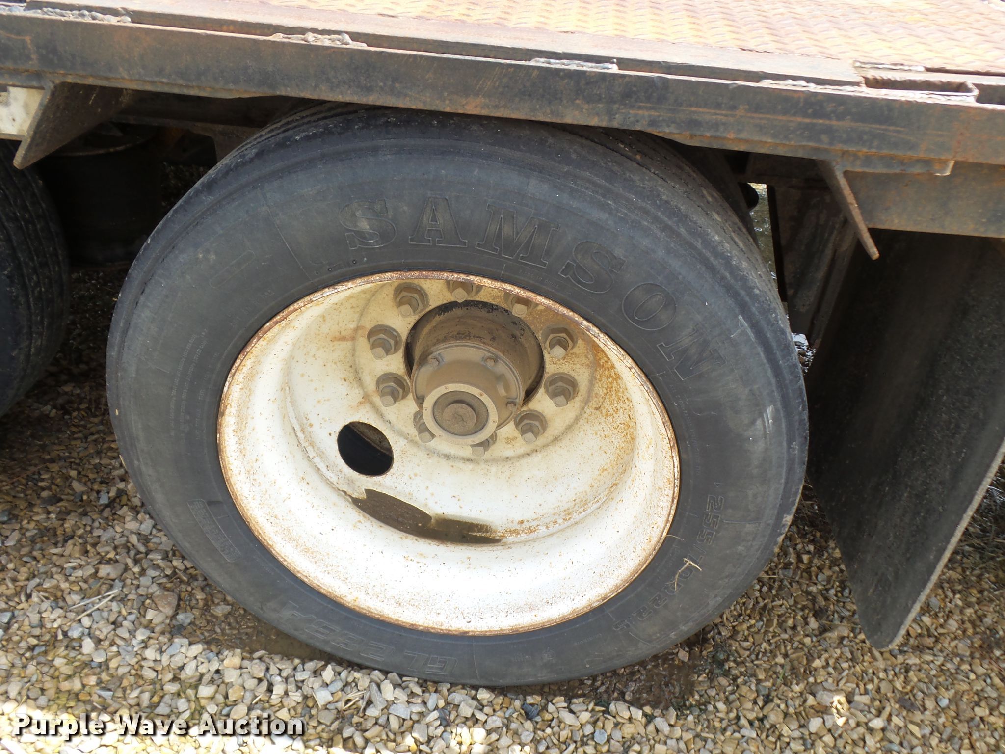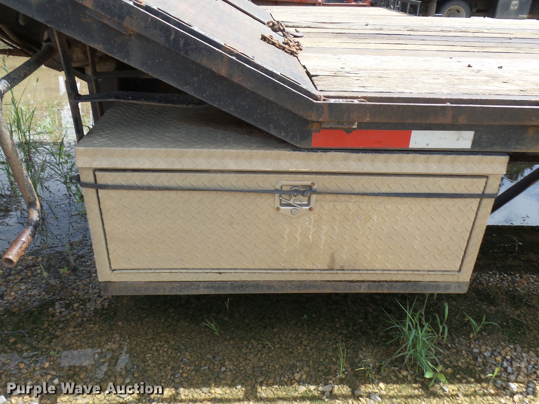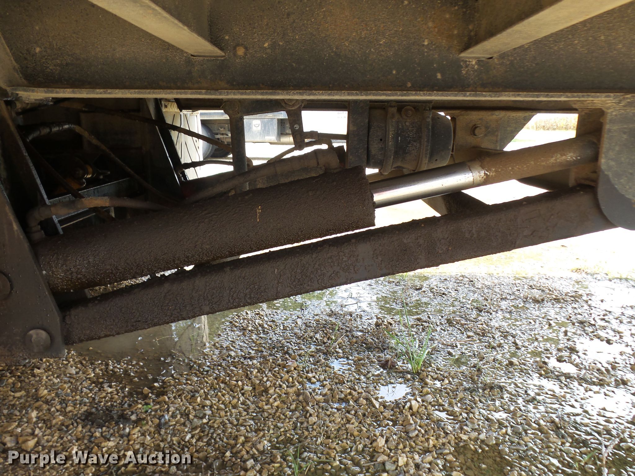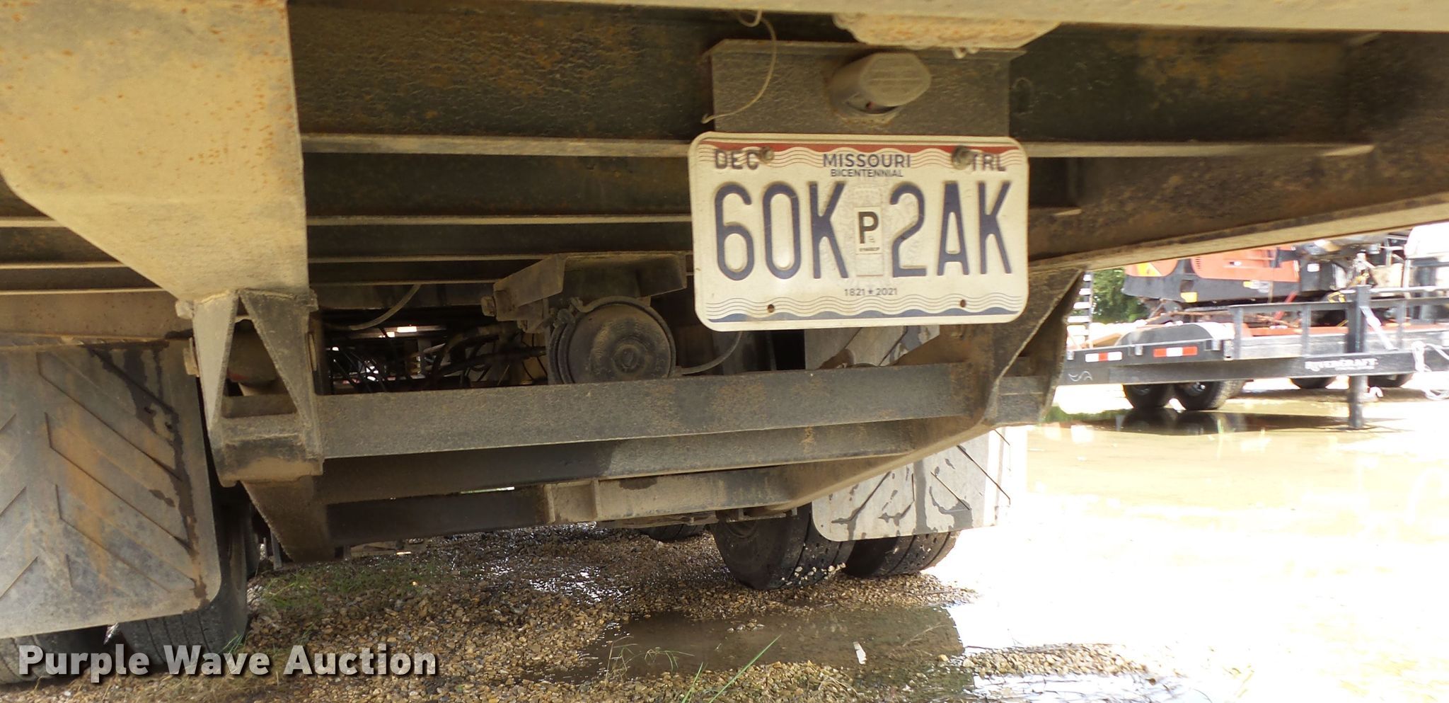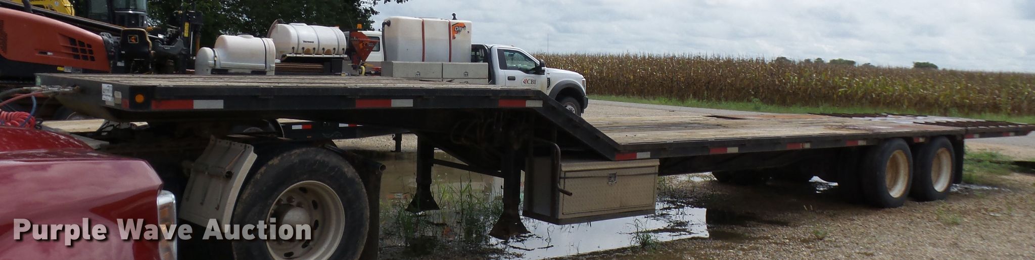Purple Wave is selling a used Equip. Trailer in Missouri. This item is a 1995 Duty Mfg Inc DDH45 drop deck equipment trailer with the following: 35'L x 102"W overall, 10'L top deck, 23'L x 98"W deck, 9'L Hydratail, 39" floor height, Wood deck, Tulsa winch, Manual hydraulic controls, Dual leg two speed landing gear, Air suspension, Air brakes, Tandem axle, Steel wheels, 255/70R22.5 tires