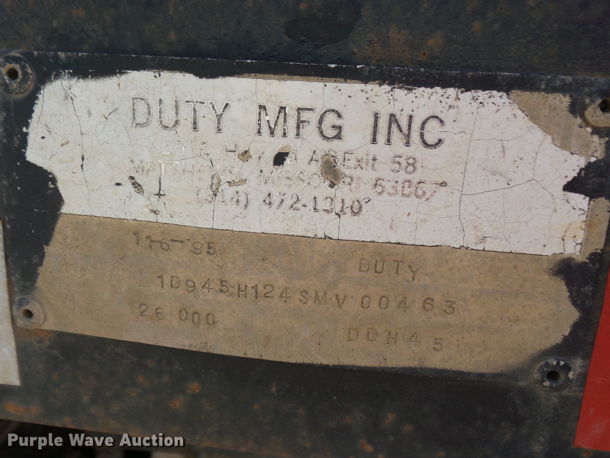 1995 Duty Mfg Inc DDH45 drop deck equipment trailer has sold in Holcomb, Missouri for $5280. Item DH3926 sold on October 8th, 2020.
