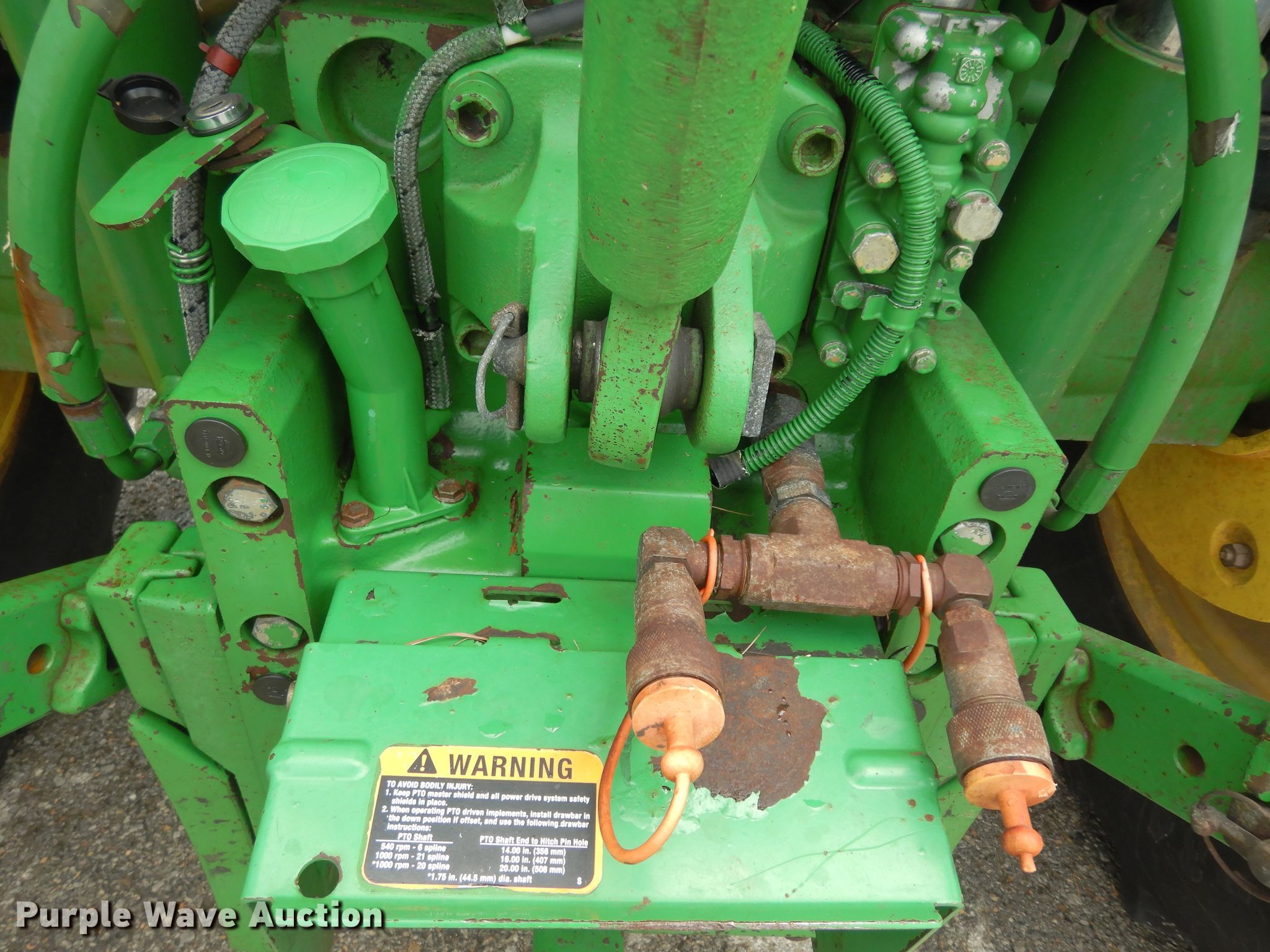 John Deere 6230 tractor. Unknown hours on meter, Serial: L06230H527745, Unit #: 2232. Engine John Deere, Cylinders: 4, Fuel type: Diesel, HP: 95. Transmission Synchro Plus, 12F - 4R, Differential lock. Operators station AC, Heat. Operational PTO: 540, Three point Top link, Seven pin outlet, Hydraulic remote sets Rear: 4, Suitcase weights: 8. Tires Front: 10.00x16, Rear: 18.4-34, Wheel weights: 8. Notes Engine misfire, Possible exhaust leak. Kansas Turnpike Authority. 3939 SW Topeka Blvd. Topeka, KS 66609