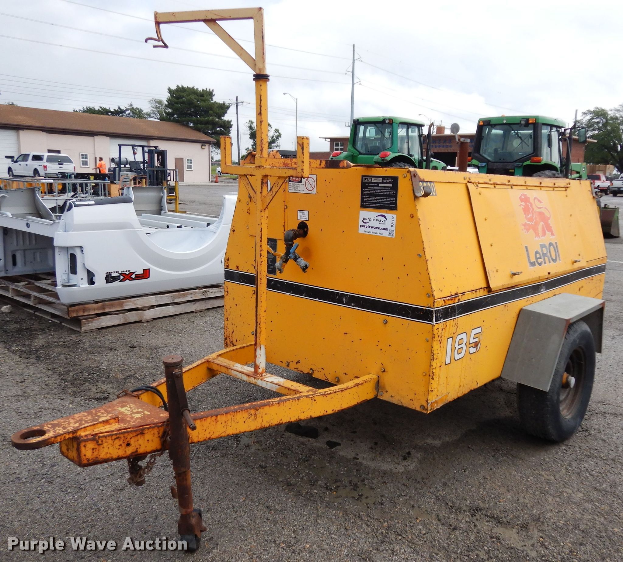 1988 Leroy Dresser 185 air compressor. 2,432 hours on meter, Serial: 3133X935, Unit #: 3220. Engine John Deere 4239, Cylinders: 4, Fuel type: Diesel. Operational CFM: 185. Tires Tire size: ST225/75R15. This is worksite support equipment and will not come with a title. Transfer of ownership documentation will be a bill of sale. 3133X935. Kansas Turnpike Authority. 3939 SW Topeka Blvd. Topeka, KS 66609