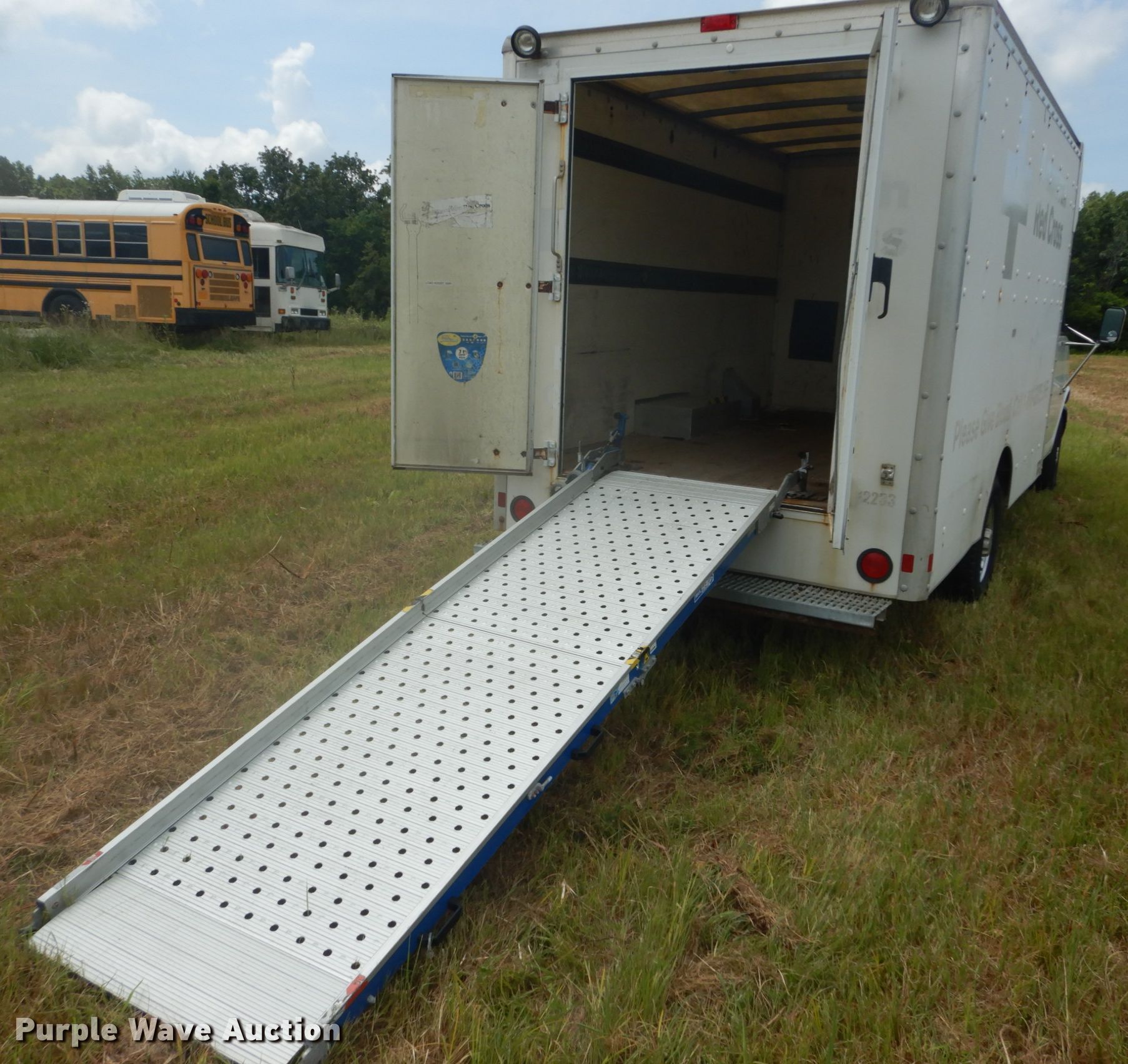 2005 Chevrolet Express 3500 delivery truck. 176,191 miles on odometer. Engine Displacement: 6.0L OHV 16V, Cylinders: 8, Fuel type: Gas. Transmission Automatic. Chassis Axles: Single, Suspension: Spring, Brakes: Hydraulic, GVWR: 9,600 lbs, Wheelbase: 140". Interior AC, Heat, Power windows, Power locks. Operational Box bed Supreme Corp, Length: 12.5', Width: 78", Height: 84", Floor: Wood, Slider ramp Width: 32".. Tires Size: 245/75R16. Notes Dead battery. Minnesota title. 1GBHG31U051238048. I-70 Motors LLC. 22752 W Veterans Memorial Pkwy. Warrenton, MO 63383