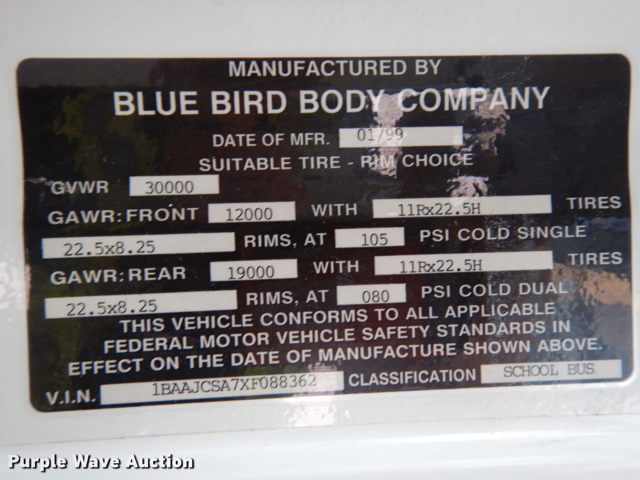 Take a look at this used 1999 Blue Bird TC2000 school bus being sold on October 14th, 2020 in the SOLD! October 14 Vehicles and Equipment Auction made by Blue Bird. Take a look at all of the item information below or take a look at similar auctions for Transit Vehicles.