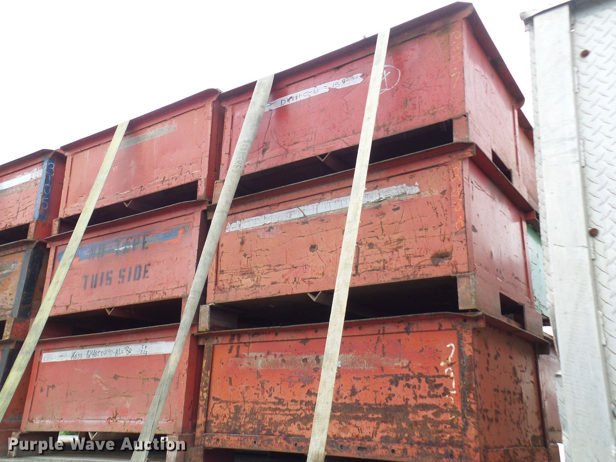 Purple Wave is selling a used Shelving and Storage in Missouri. This item is a (18) steel containers with the following: 48" x 30" x 18"