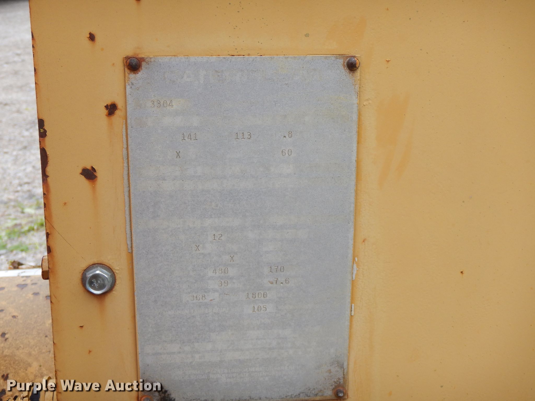 Caterpillar SR4 generator. Serial: 9AB02206. Engine Catepillar, Cylinders: 4, Fuel type: Diesel. Operational Electric start, Fuel tank. O'Brien Rock Company, Inc... 1202 Chrisholm Trail. Oswego, KS 67356