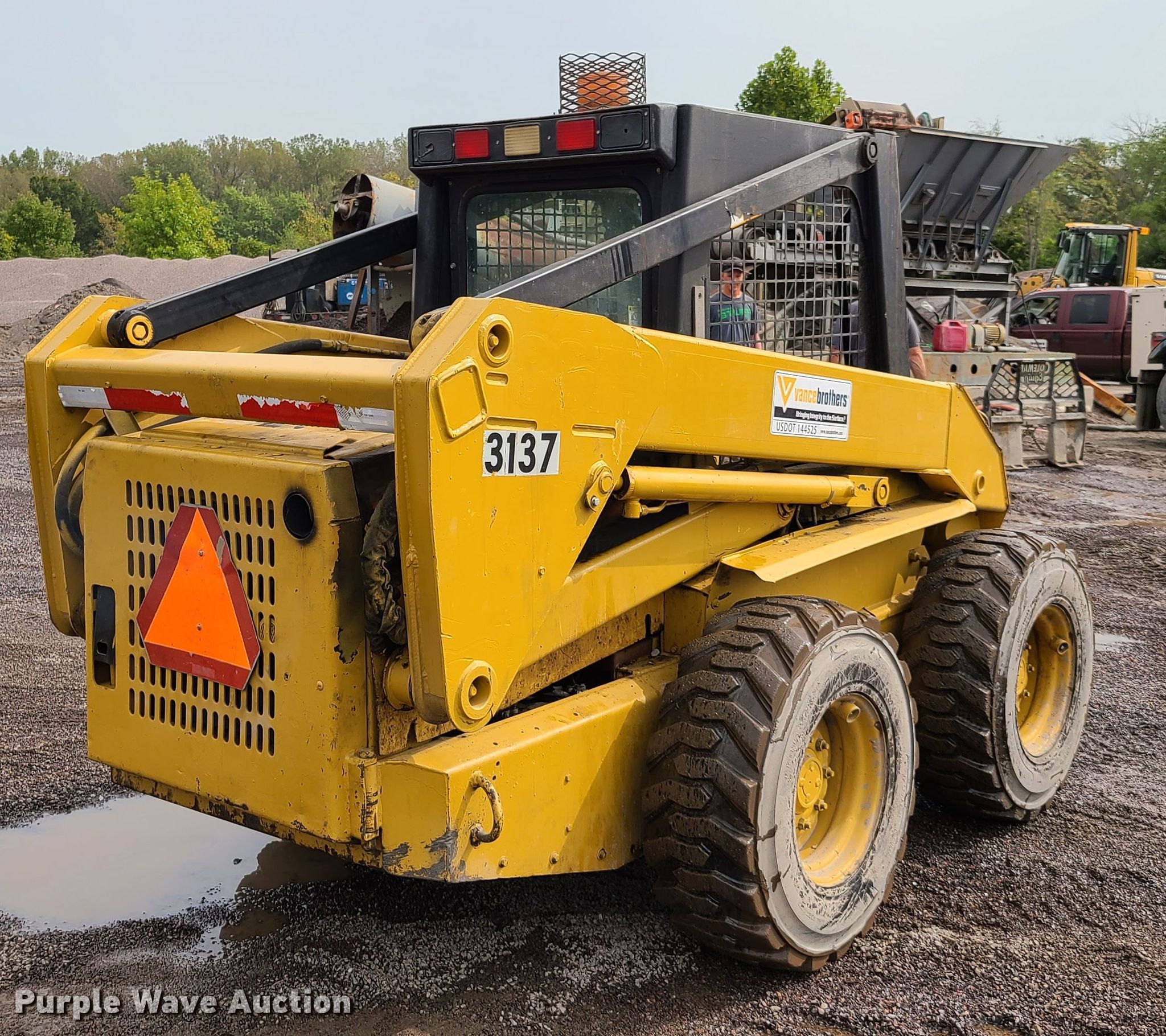 John Deere 8875 skid steer loader. 1,426 hours on meter, Serial: M08875X030485. Engine Cylinders: 4, Fuel type: Diesel. Transmission Hydrostatic. Operators station OROPS, Bucket control: Foot. Operational Auxiliary hydraulics, Quick coupler: Manual. Tires Size: 12-16.5. Vance Bros Inc.. 5201 Brighton Ave. Kansas City, MO 64130