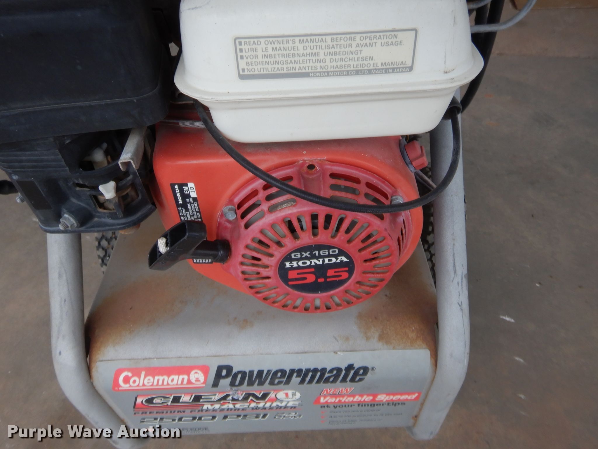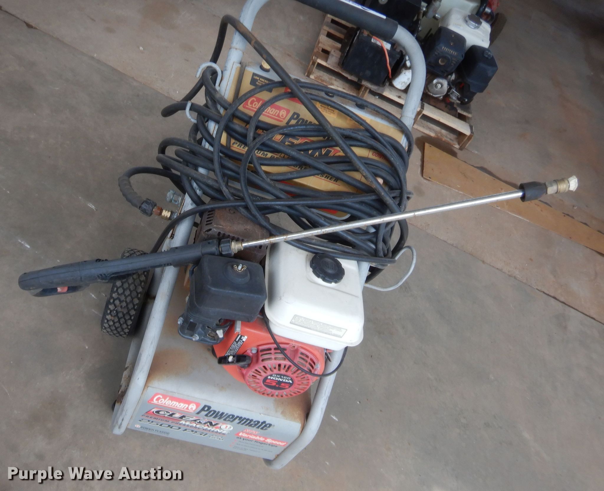 Purple Wave is selling a used Pressure Washer in Oklahoma. This item is a Coleman Powermate pressure washer with the following: Honda single cylinder gas engine, 5.5 HP, 2,500 psi, 2.3 gpm, Wand, (4) nozzles