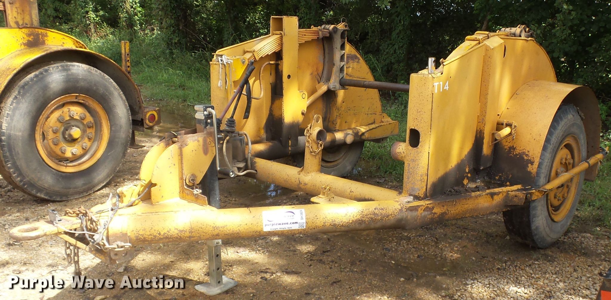 Purple Wave is selling a used Reel Trailer in Missouri. This item is a Eaton TCR14T reel trailer with the following: 12'L x 84"W, Single reel capacity, 5' maximum reel width, Self-contained hydraulics, Single leg landing gear, Spring suspension, Electric brakes, Single axle, 10.00-20 tires