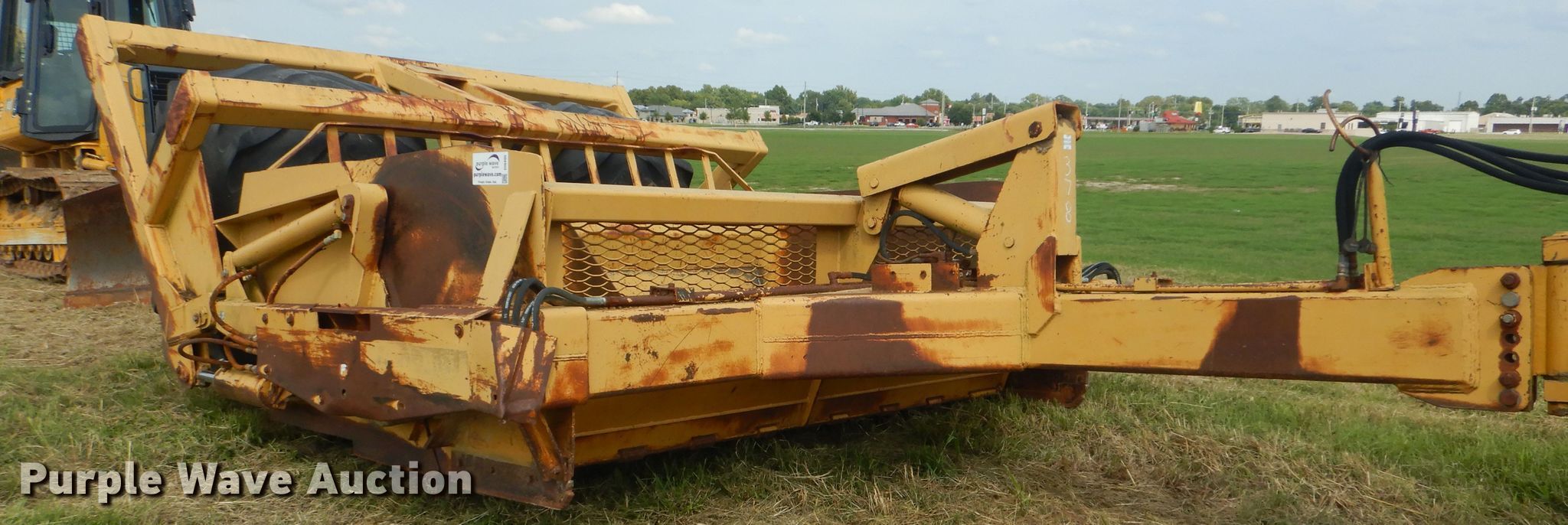Purple Wave is selling a used Pull Type Scraper in Oklahoma. This item is a Scoop-all scraper with the following: Bowl capacity: 12 cu.yd., Hydraulic lift