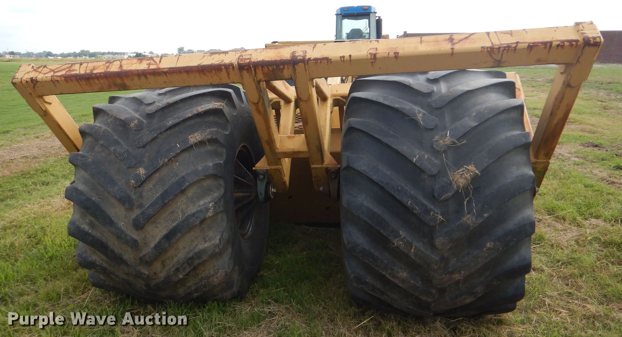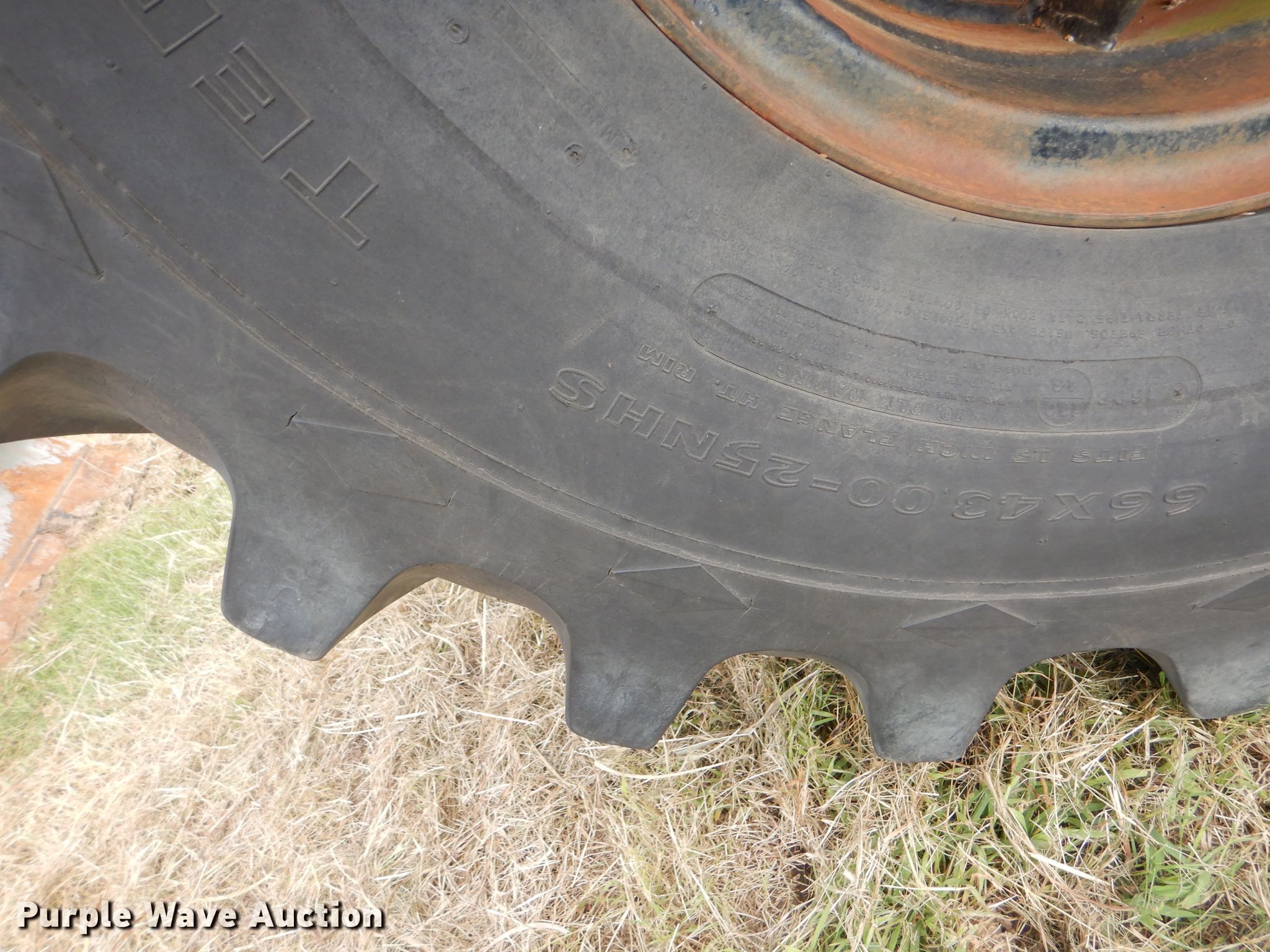 Scoop-all scraper. Operational. Bowl capacity: 12 cu.yd., Hydraulic lift. Tires Size: 66x43-25NHS. R.L. Hensley Construction Inc.. 9811 E 46th Pl. Tulsa, OK 74146