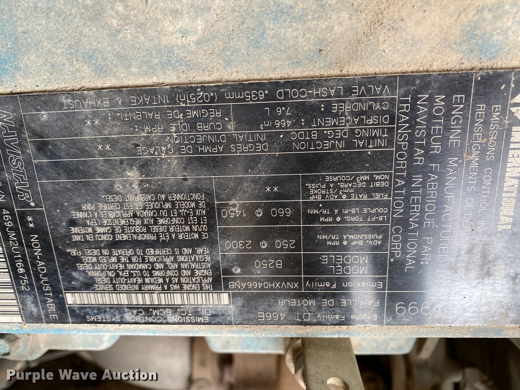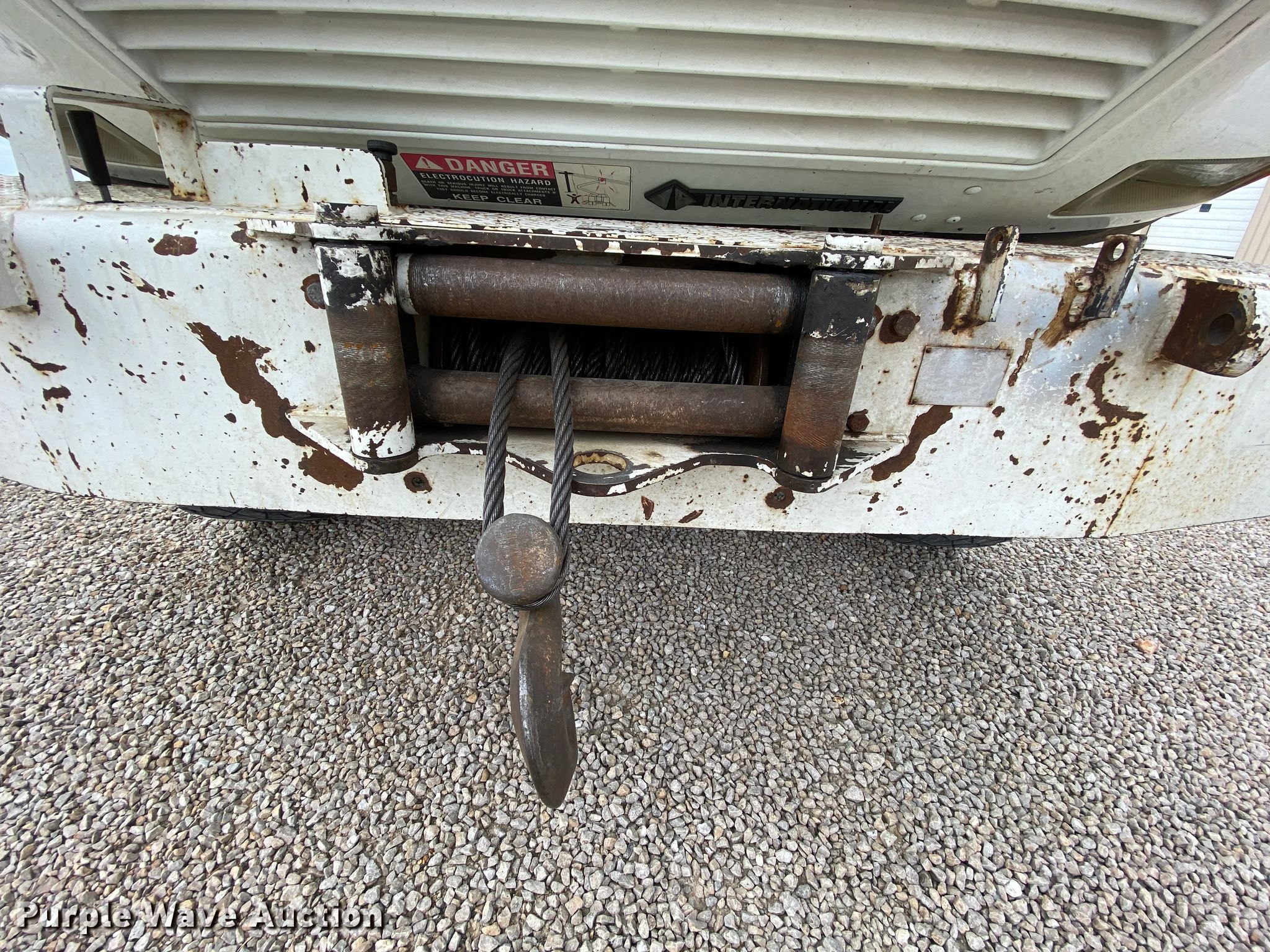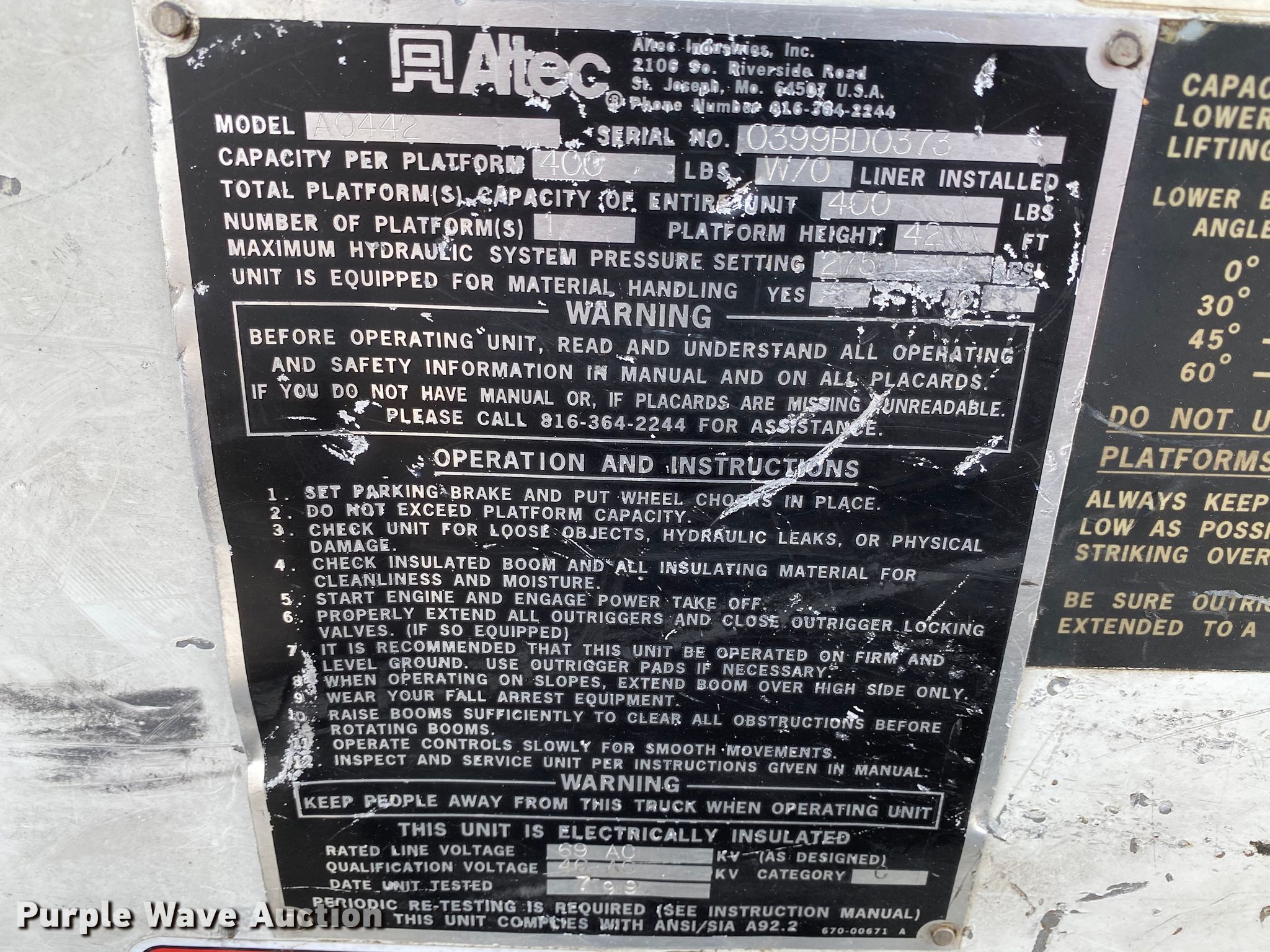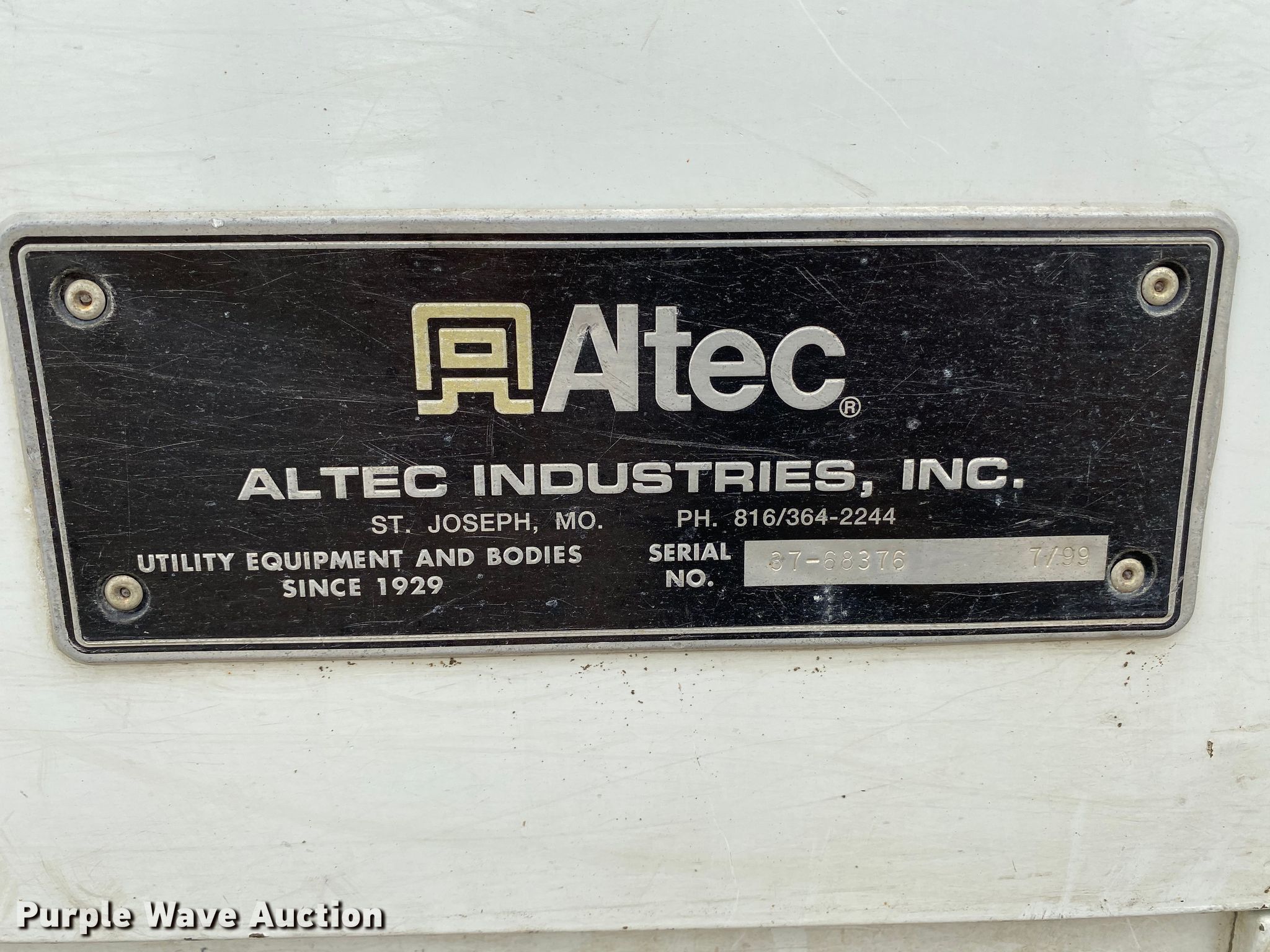 2000 International 4800 bucket truck. 184,199 miles on odometer, Engine hours: 14,592. Engine International DT466, Displacement: 7.6L, Cylinders: 6, Fuel type: Diesel. Transmission Eaton Fuller , Manual, Speed: 6. Chassis Four wheel drive, Axles: Single, Suspension: Spring, Brakes: Air, PTO, GVWR: 37,000 lbs, Wheelbase: 178". Interior AC, Heat. Operational Utility bed Altec, Serial: 37-68376, Length: 13', Winch Model 20UB9X3R2G, 20,000 lbs capacity , Serial 38101899E, Boom 1999 Altec A0422, Serial: 0399BD0373, Boom length: 21', Mast height: 42', Maximum lift capacity: 400 lbs, Maximum lift height: 45', Boom type: Articulating, Man basket, Boom controls Ground, Platform/ basket, Material handler. Tires Front: 385/65R22.5, Rear: 12R22.5. Missouri title. 1HTSEAAR4YH209318. Crawford Electric Cooperative. 10301 N Service Rd E. Bourbon, MO 65441