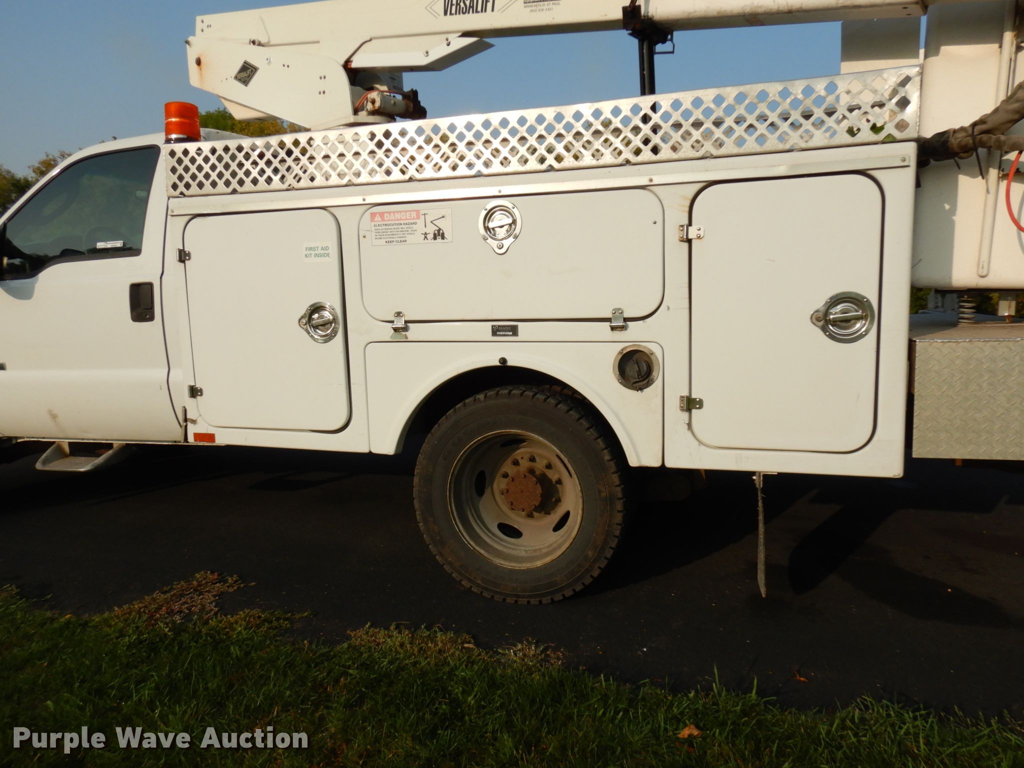 2007 Ford F450 Super Duty bucket truck. 53,069 miles on odometer, Engine hours: 9,334. Engine Displacement: 6.0L, Cylinders: 8, Fuel type: Diesel. Transmission Automatic. Chassis Axles: Single, Suspension: Spring, Brakes: Hydraulic, PTO. Interior AC, Heat. Operational Utility bed Brand FX, Length: 8' 9", Boom Versalift, Boom type: Telescopic, Man basket, Boom controls Ground, Platform/ basket.. Tires Size: 225/70R19.5. Notes Redline Generator, Hail damage. Minnesota title. Seller is a Minnesota licensed motor vehicle dealer. The buyer may be required to pay sales tax and/or registration fees to the dealer prior to taking possession. Title will be assigned and distributed by the dealer. Please contact the seller for distribution questions. 1FDXF46P97EA14271. Hutchinson, MN 55350