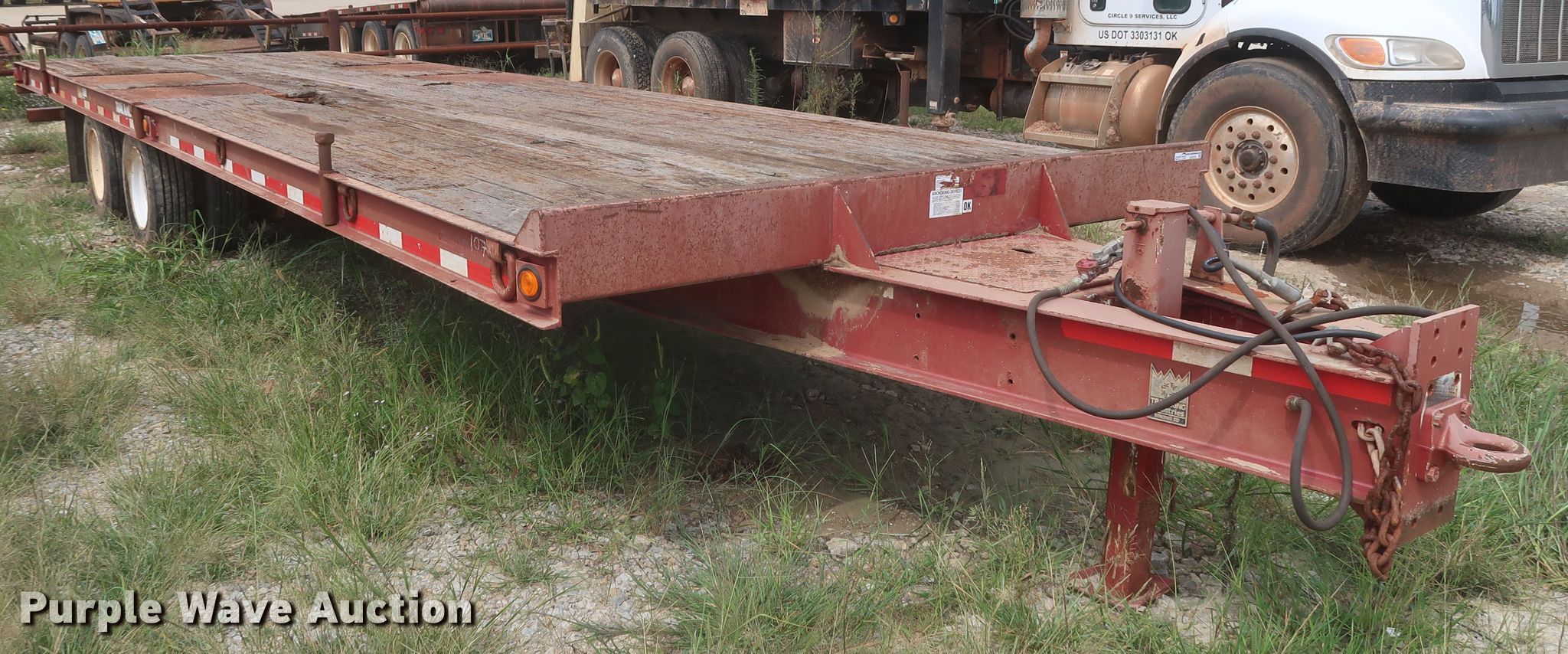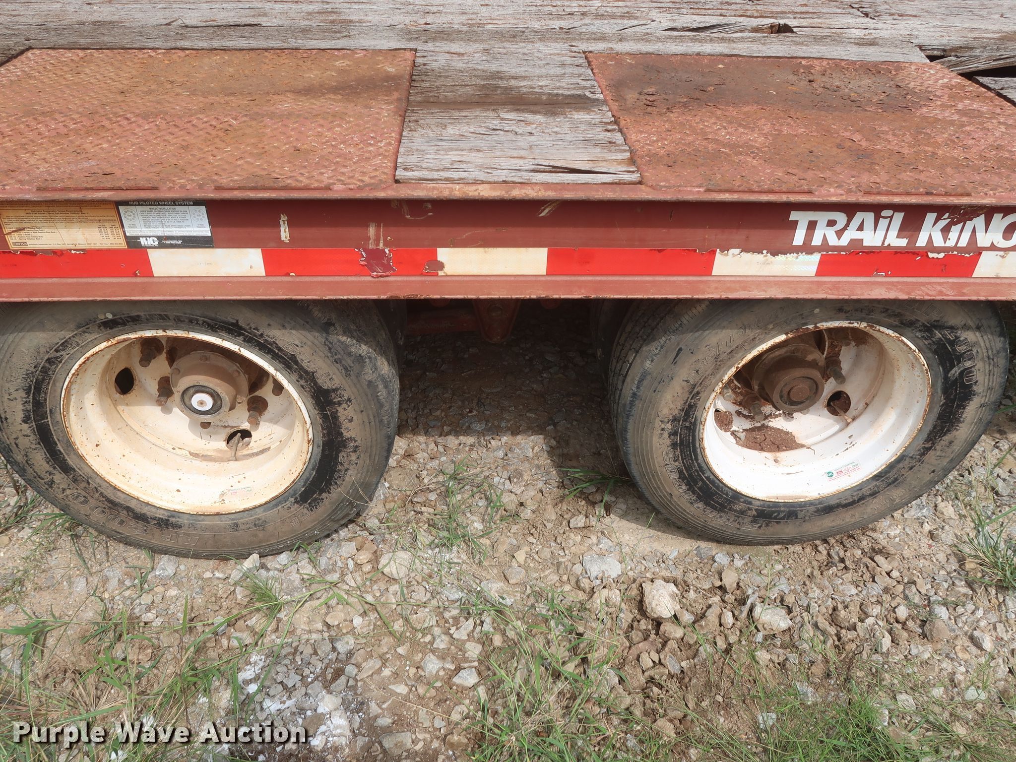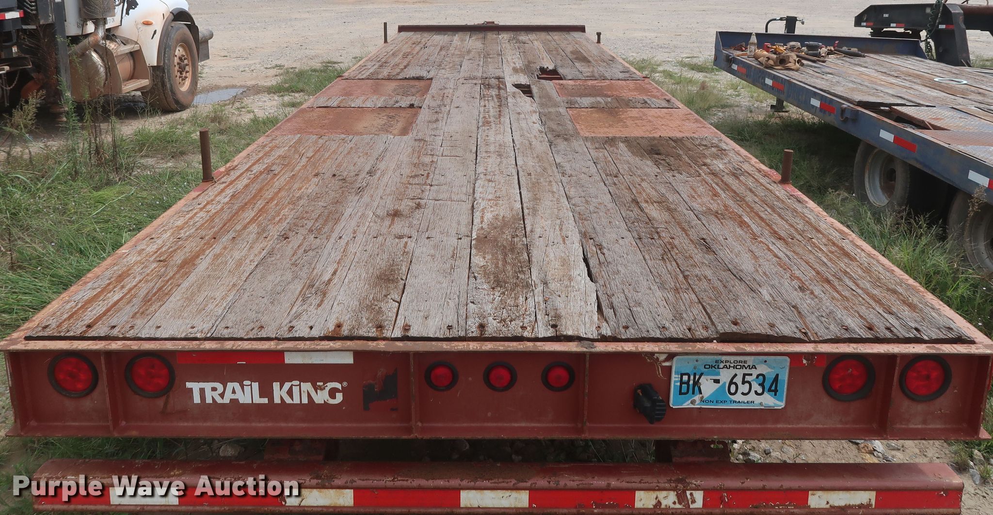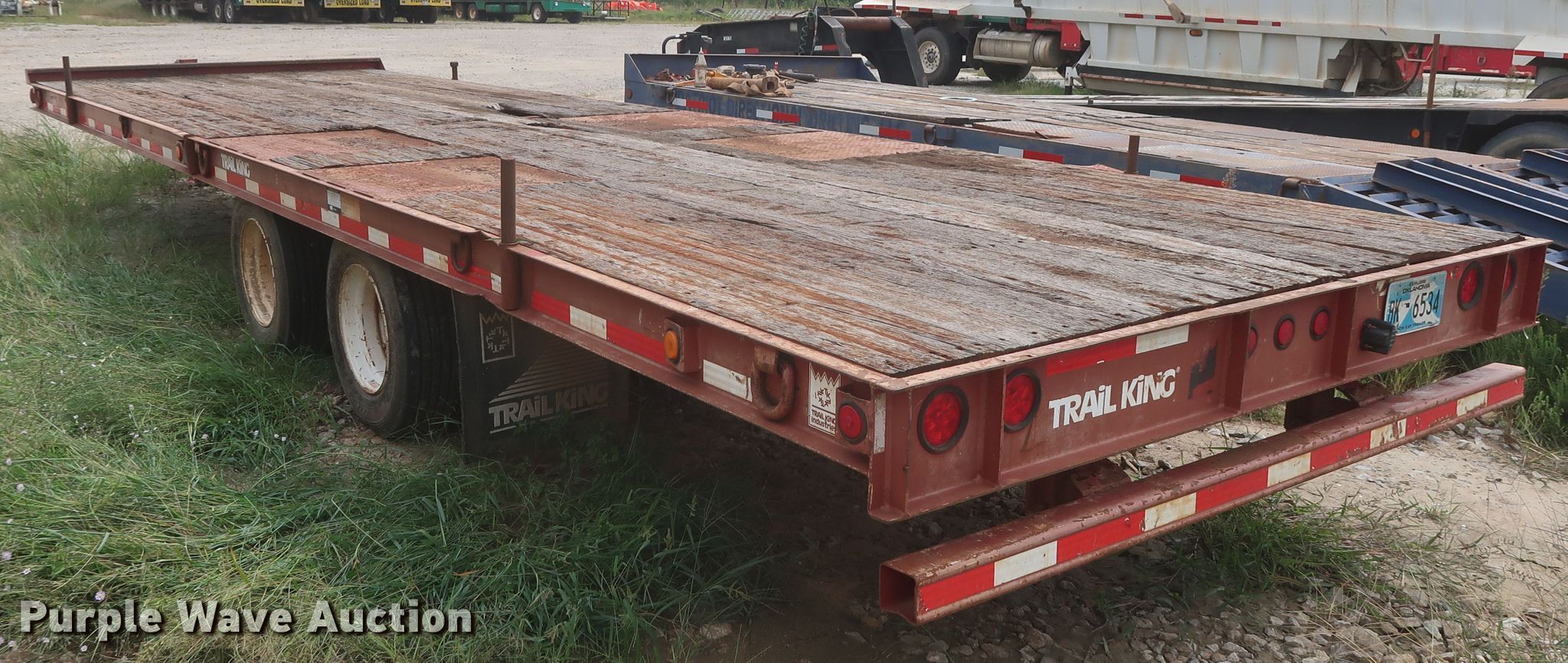 Purple Wave is selling a used Equip. Trailer in Oklahoma. This item is a 2009 Trail King equipment trailer with the following: 35'L x 102"W overall, 30'L x 102"W wood deck, Single leg hydraulic landing gear, Spring suspension, Air brakes, Tandem axle, 235/75R17 tires