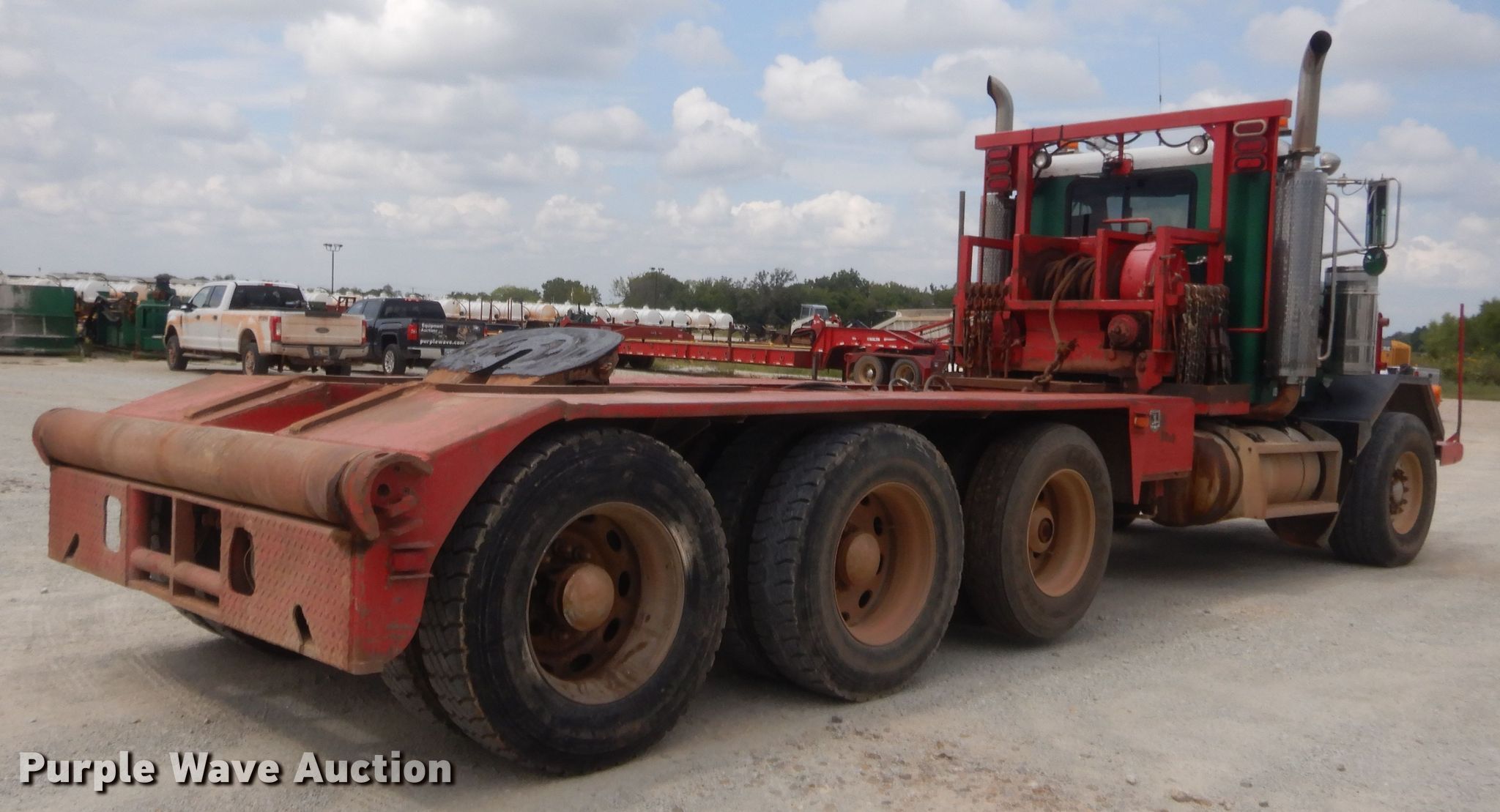 2002 Peterbilt 357 semi truck. 125,708 miles on odometer, Unit #: 40012. Engine Caterpillar C15, Displacement: 14.6L, Cylinders: 6, Fuel type: Diesel, Engine brake. Transmission Eaton Fuller, Manual, Speed: 18. Chassis Axles: Tandem, Tag axle, Differential lock: Full, Suspension: Air, Brakes: Air, PTO, Wheelbase: 283". Interior AC, Heat, Heated mirrors, Cruise control, Dump valves. Operational Winch Braden, Fifth wheel type: Air operated, Rolling tailboard, Fuel tank: Dual. Tires Front: 425/65R22.5, Rear: 11R24.5. Item must be removed by Tuesday, October 27.. Oklahoma title. Title distribution may be delayed up to 30 days from verification of funds. 1XPAPBTX42D576088. Bison Oilfield Services, LLC. 12534 North 356 Road. Seminole, OK 74868