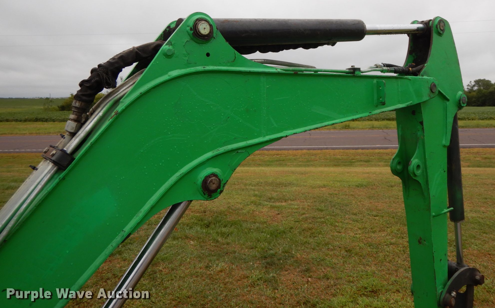 2013 Bobcat E26 mini excavator. 2,504 hours on meter, Serial: B33211154. Engine Kubota V1505-EF01, Serial: DKBXL015BCB, Cylinders: 4, Fuel type: Diesel. Transmission Hydrostatic, Two speed travel. Operators station OROPS. Operational Auxiliary hydraulics, Backfill blade Width: 60", Boom Swing, Stick Stick length: 44", Quick coupler: Mechanical Tag, Bucket Width: 12", Cutting edge: Weld on Teeth: 3.. Tracks Width: 12", Rubber. J & J Equipment Sales. 28132 US Hwy 136. Downing, MO 63536