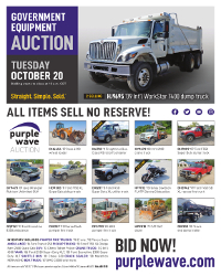 Payments must be made by 4 p.m. CDT on the second business day following the auction. Failure to make payment or payment arrangements by the deadline will result in a $30 late payment fee. Purple Wave reserves the right to charge the credit card on file the total purchase price and a $30 late payment fee will be added for invoices not paid within our terms. Payment should be made to Purple Wave, Inc.
