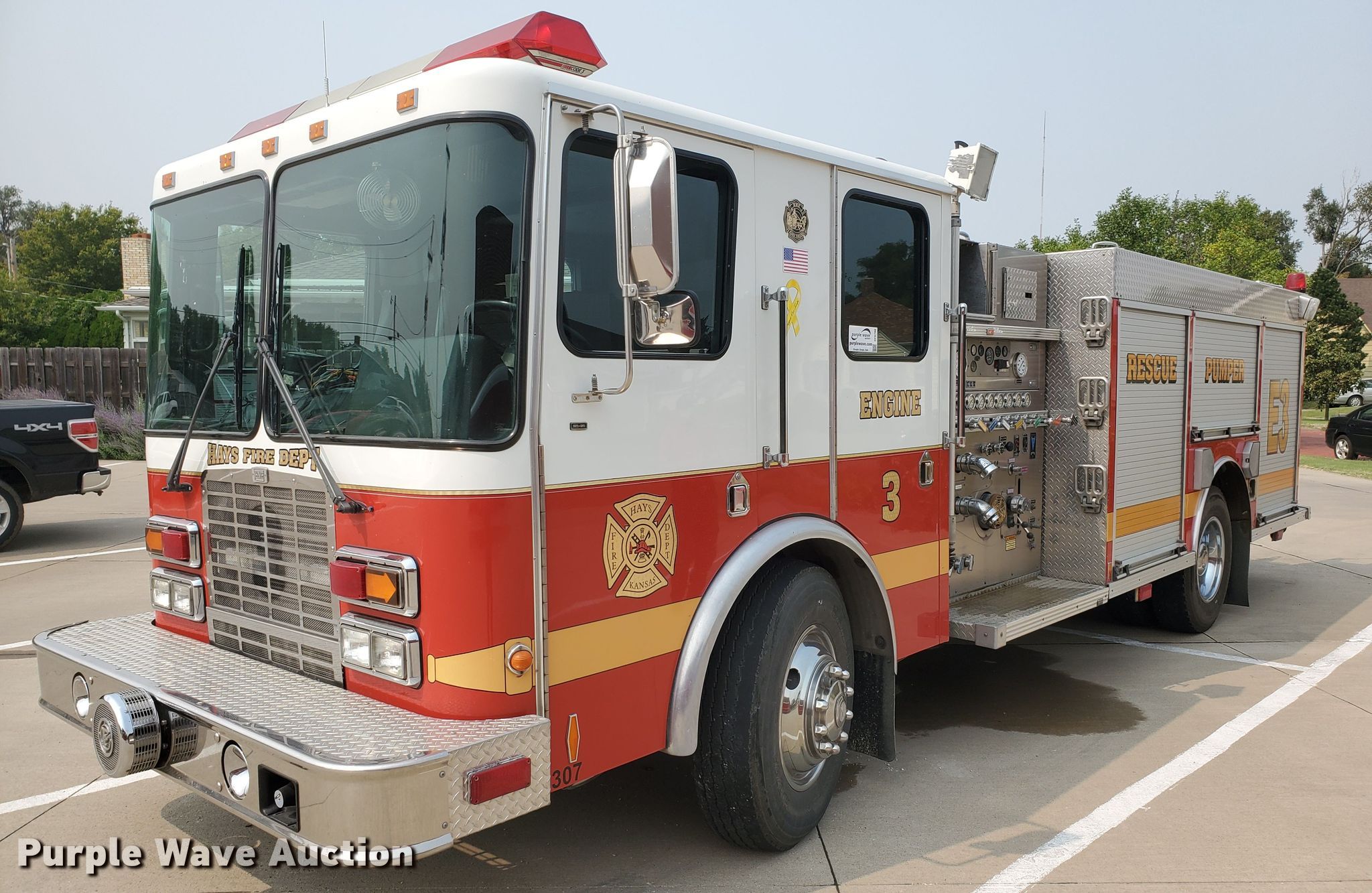 Purple Wave is selling a used Fire Truck or Emergency Vehicle in Kansas. This item is a 1998 HME pumper fire truck with the following: 26,928 miles on odometer, Engine hours: 3,516