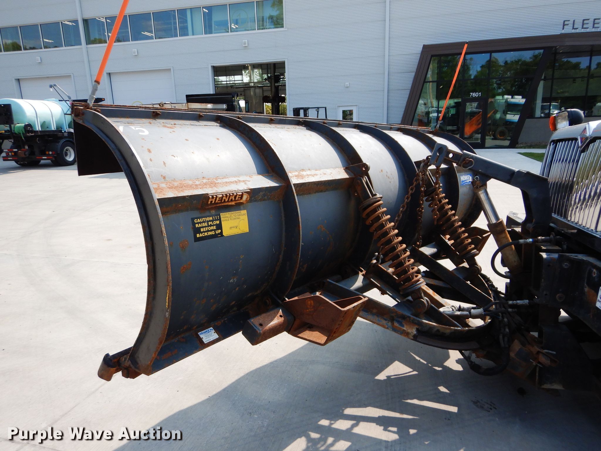2006 International 7400 truck cab and chassis. 76,496 miles on odometer, Engine hours: 7,485. Engine International DT466, Displacement: 7.6L, Cylinders: 6, Fuel type: Diesel. Transmission Allison , Automatic. Chassis Axles: Tandem, Suspension: Spring, Brakes: Air, PTO, Wet kit, GVWR: 58,000 lbs FAWR: 18,000 lbs, IAWR: 20,000 lbs, RAWR: 20,000 lbs, Wheelbase: 212". Interior AC, Heat. Operational Snow plow Henke, Width: 12', Wing plow Henke, Width: 8', Force spreader controls. Tires Front: 385/65R22.5, Rear: 11R22.5. Notes Windshield chipped or cracked, Bed removed, Fenders removed. Kansas title. 1HTWHAAT26J323988. City of Lenexa. 7700 Cottonwood St. Lenexa, KS 66216