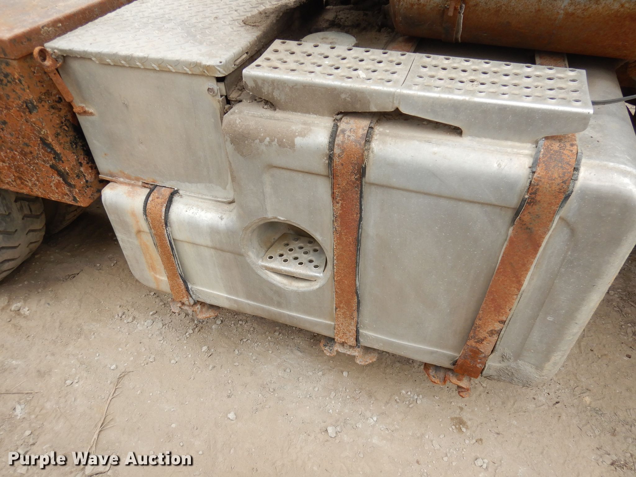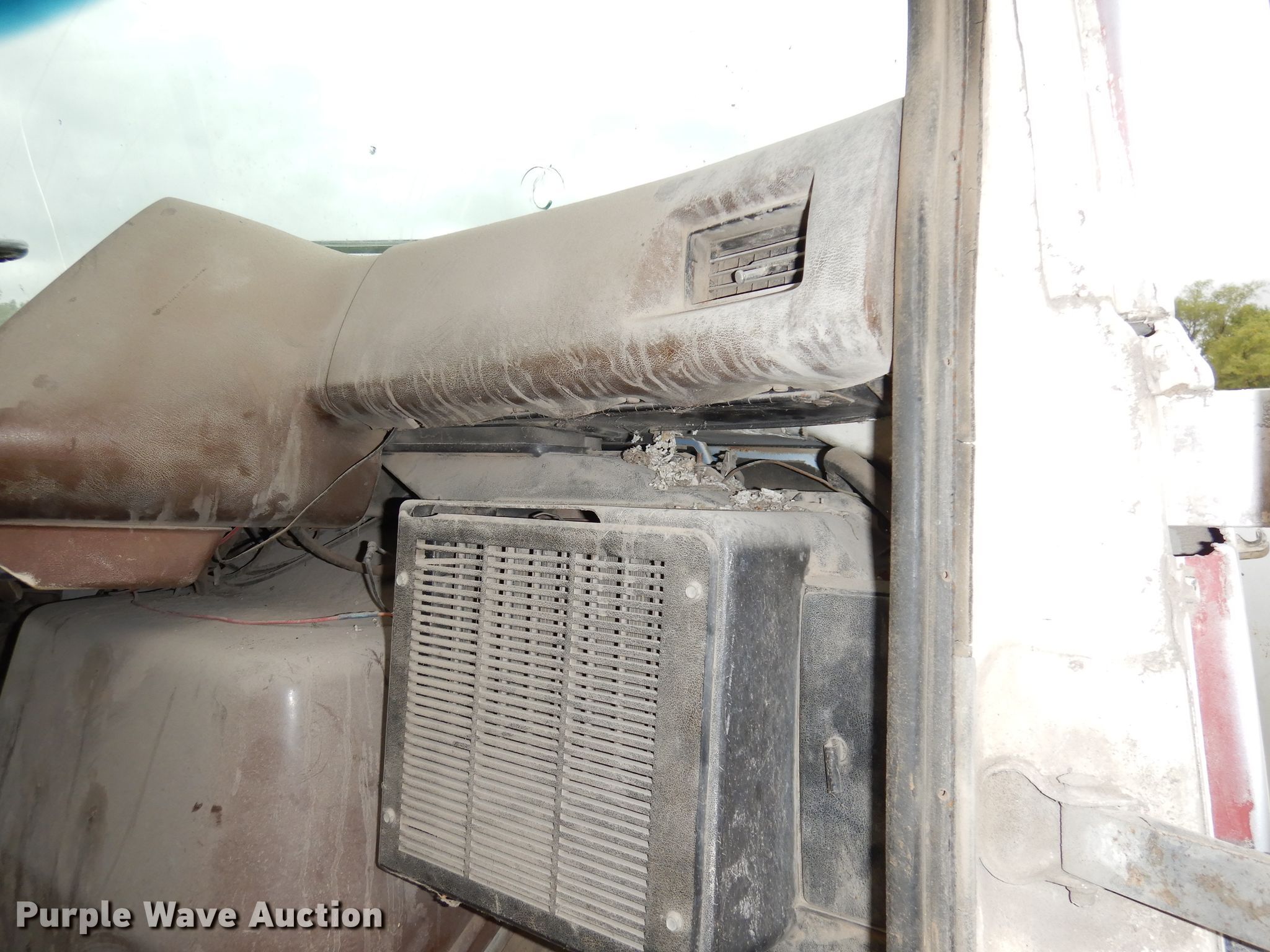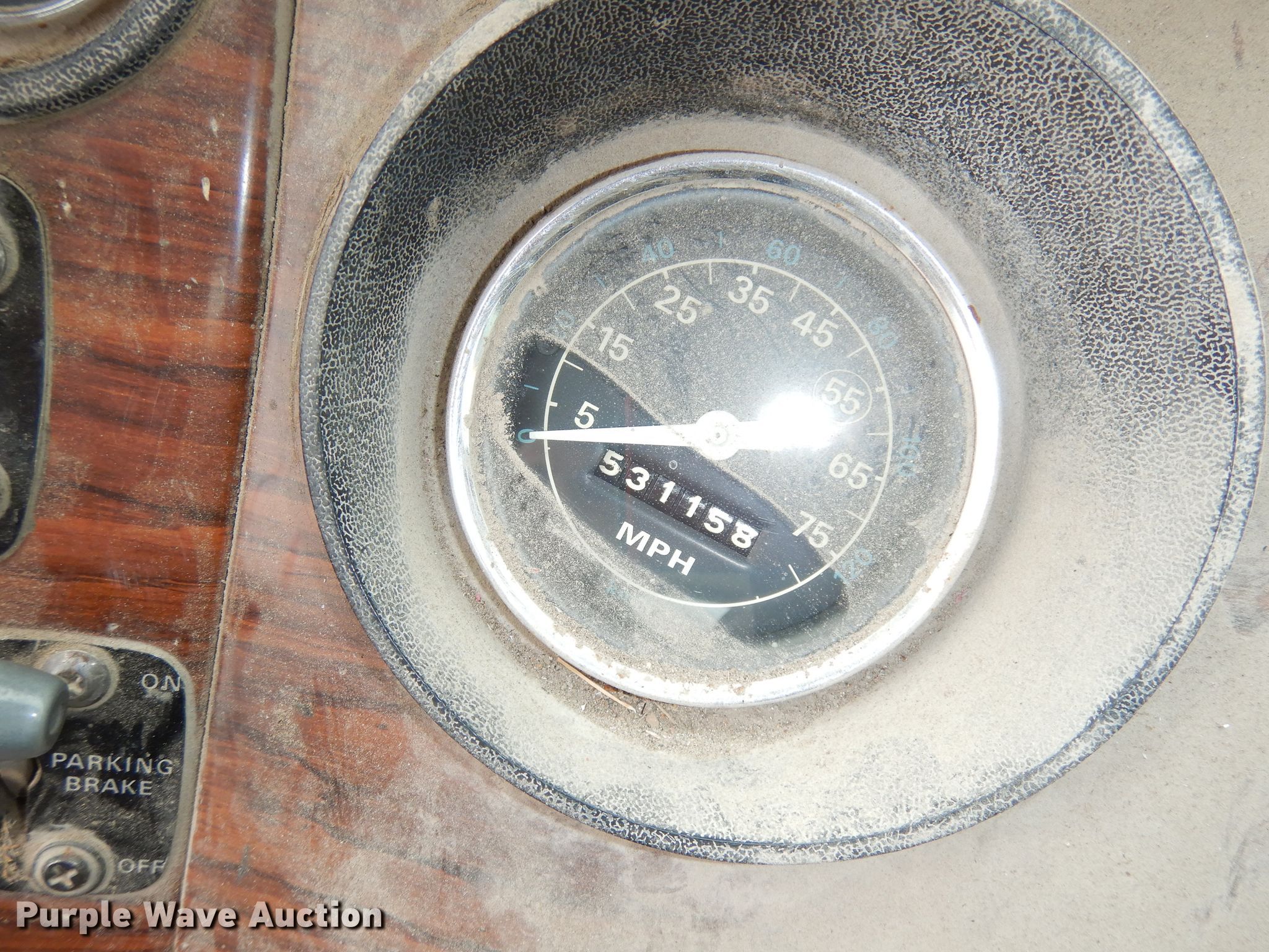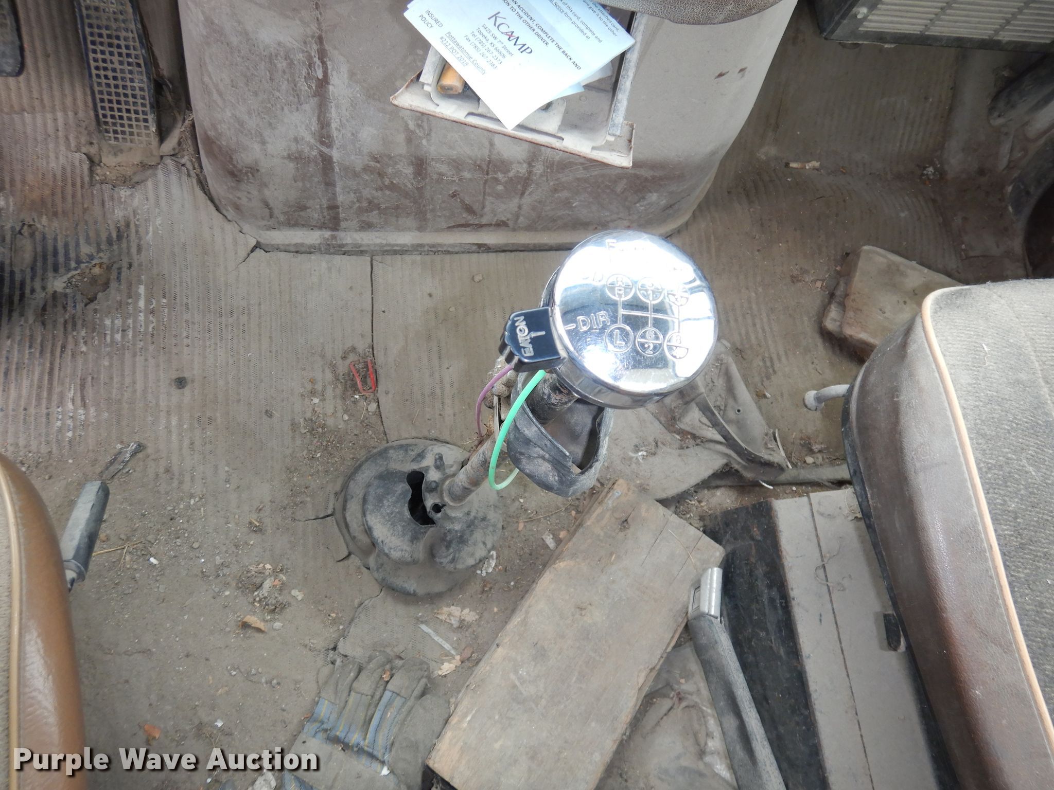 1983 Ford 9000 semi truck. 531,158 miles on odometer, Unit #: 176. Engine Caterpillar 3406, Displacement: 14.6L, Cylinders: 6, Fuel type: Diesel. Transmission Eaton Fuller Roadranger RTO116, Speed: 16. Chassis Axles: Tandem, Differential lock: Inter-axle, Suspension: Spring over walking beam, Brakes: Air, GVWR: 44,800 lbs, Wheelbase: 165". Interior AC, Heat. Operational Deck plate: Steel, Fifth wheel type: Air operated, Sliding, Fuel tank: Dual. Tires Size: 10.00R20. Notes Air leaks, Walking beam bushing needs replaced, Windshield chipped or cracked, Unit must be towed or hauled. Kansas title. 1FDYU90X0DVA34808. Pottawatomie County Noxious Weed Department. 405 Campbell St. Westmoreland, KS 66549