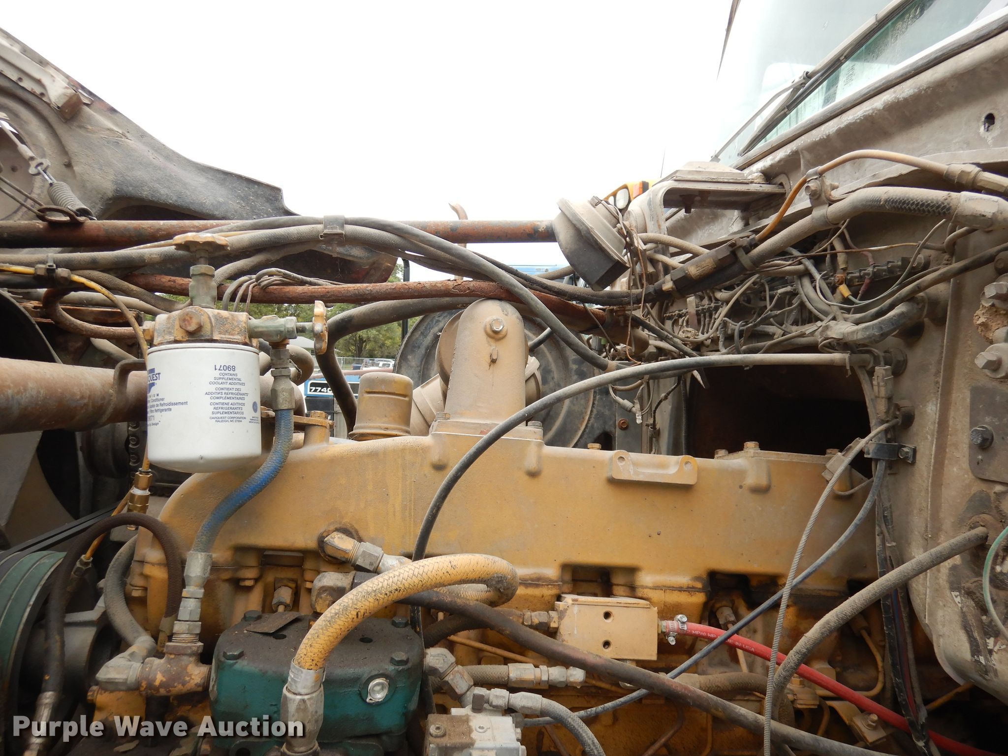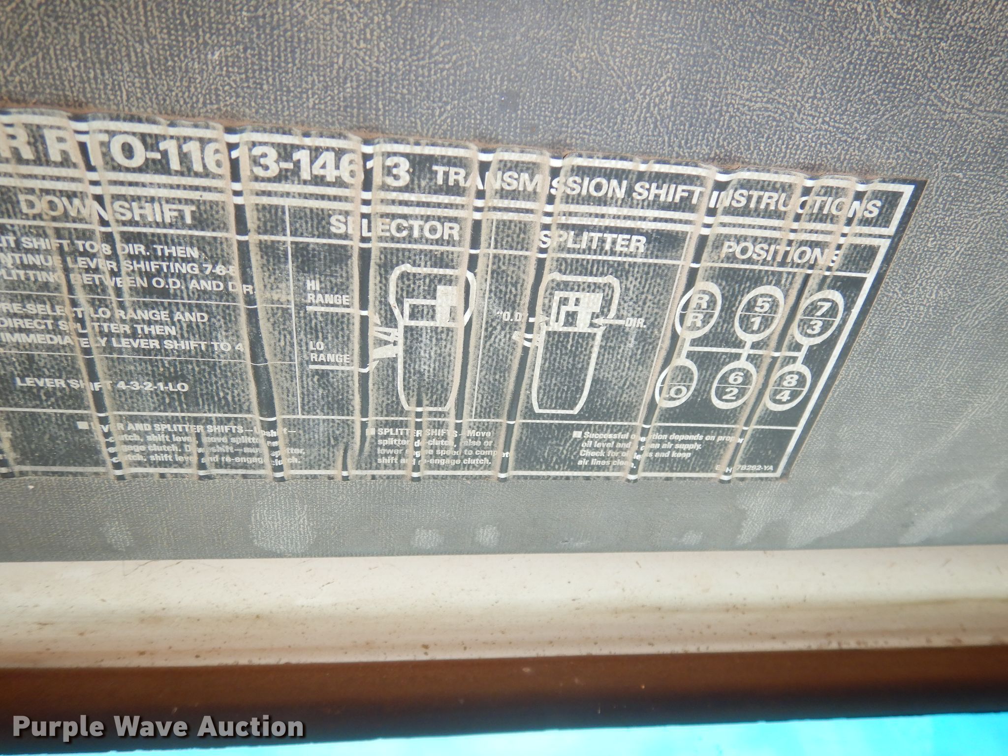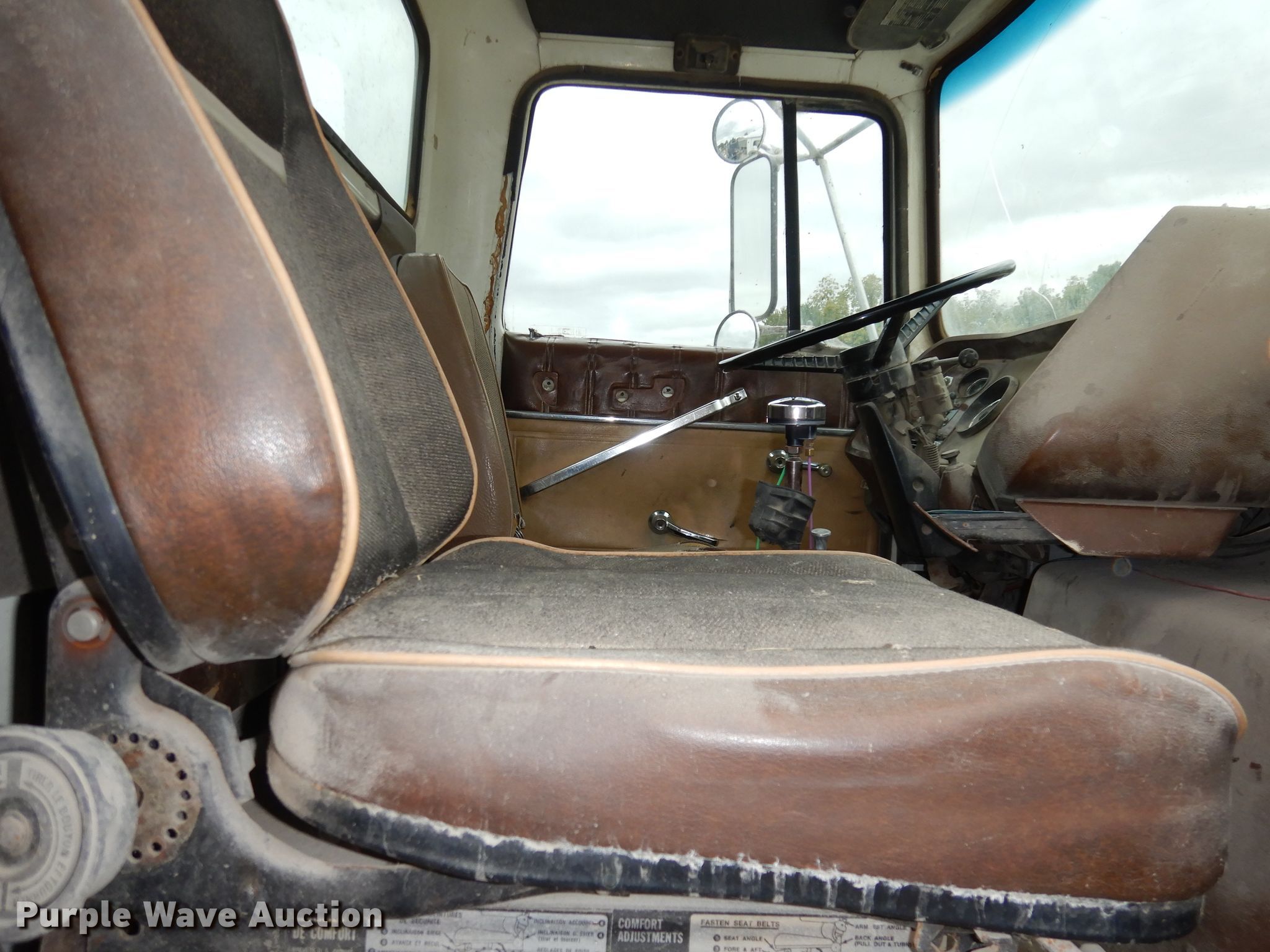 1983 Ford 9000 semi truck. 531,158 miles on odometer, Unit #: 176. Engine Caterpillar 3406, Displacement: 14.6L, Cylinders: 6, Fuel type: Diesel. Transmission Eaton Fuller Roadranger RTO116, Speed: 16. Chassis Axles: Tandem, Differential lock: Inter-axle, Suspension: Spring over walking beam, Brakes: Air, GVWR: 44,800 lbs, Wheelbase: 165". Interior AC, Heat. Operational Deck plate: Steel, Fifth wheel type: Air operated, Sliding, Fuel tank: Dual. Tires Size: 10.00R20. Notes Air leaks, Walking beam bushing needs replaced, Windshield chipped or cracked, Unit must be towed or hauled. Kansas title. 1FDYU90X0DVA34808. Pottawatomie County Noxious Weed Department. 405 Campbell St. Westmoreland, KS 66549