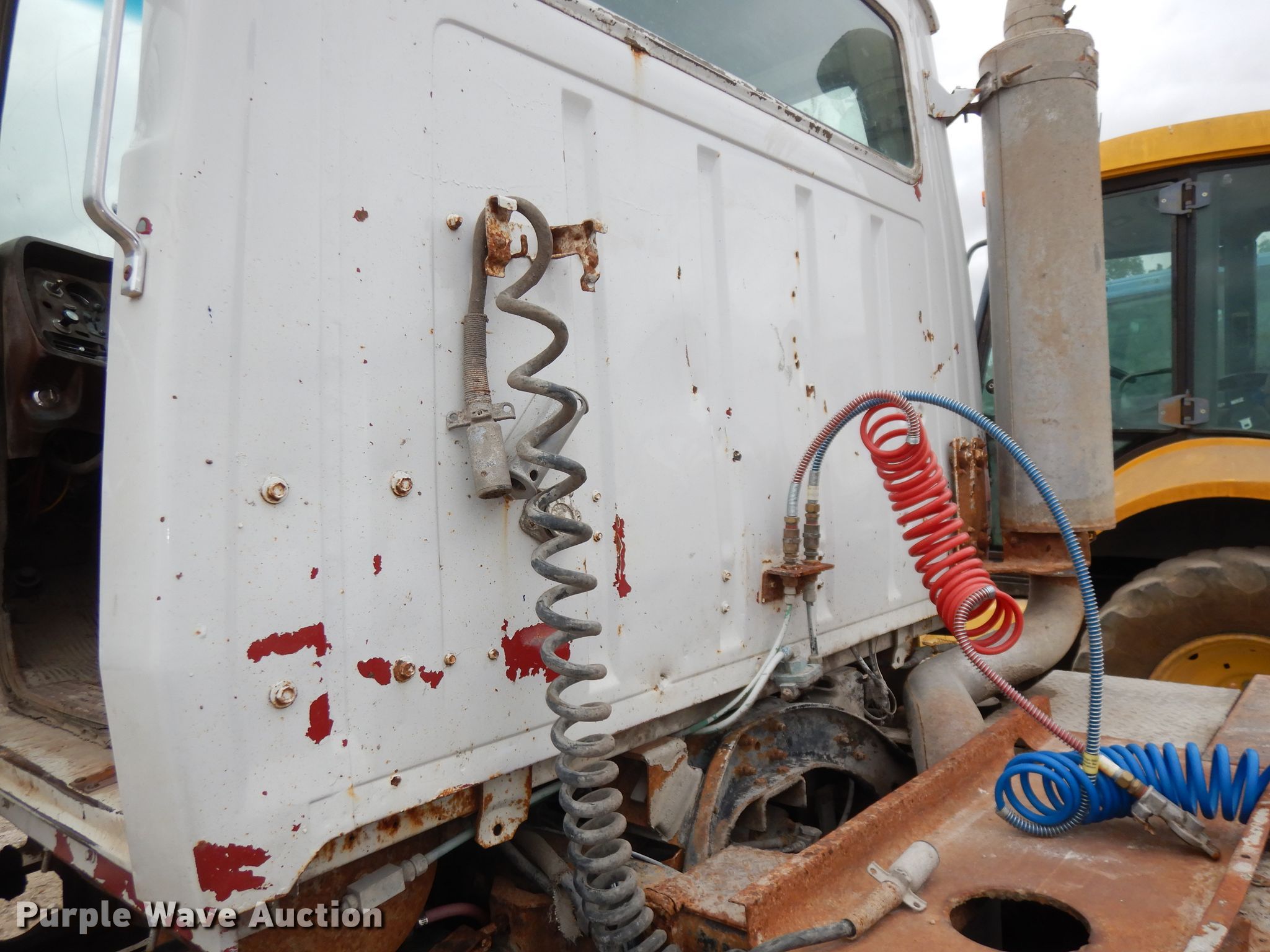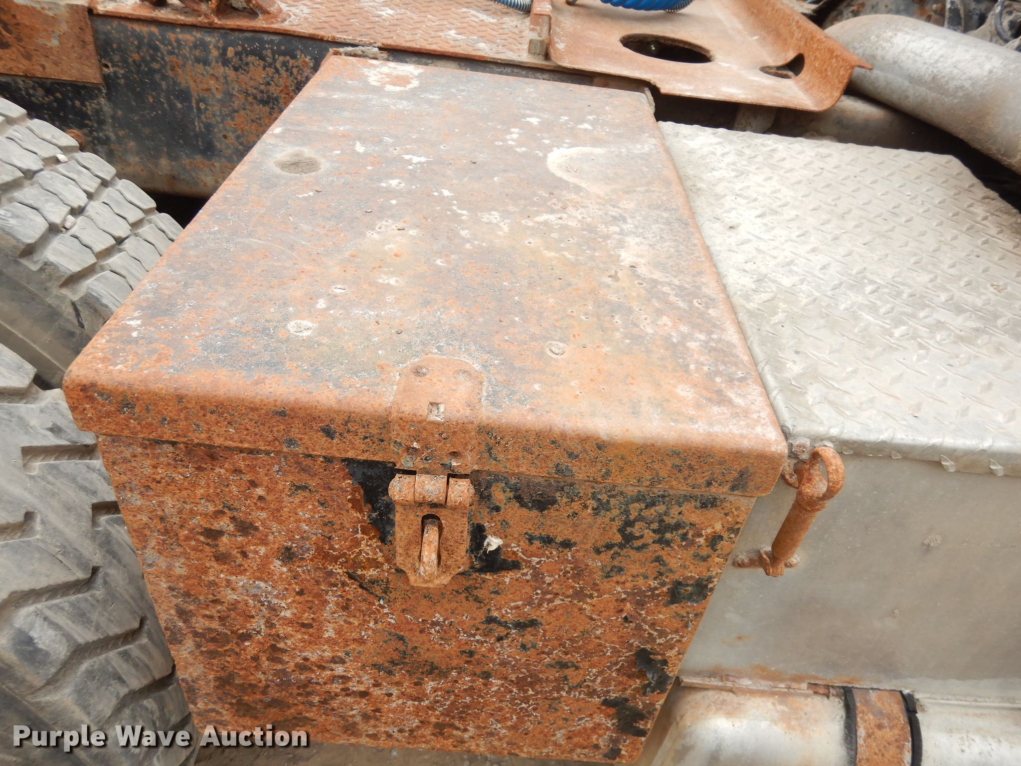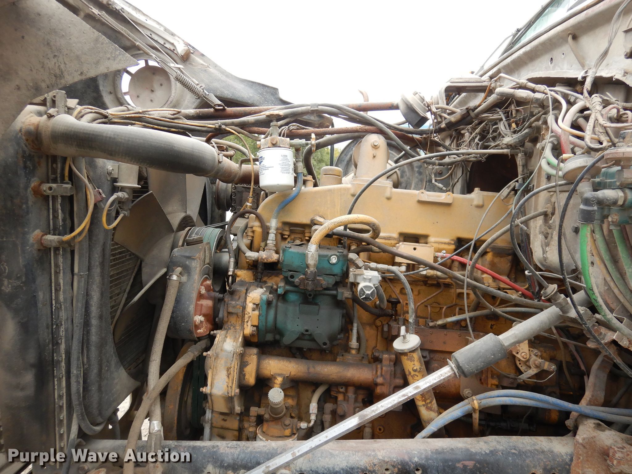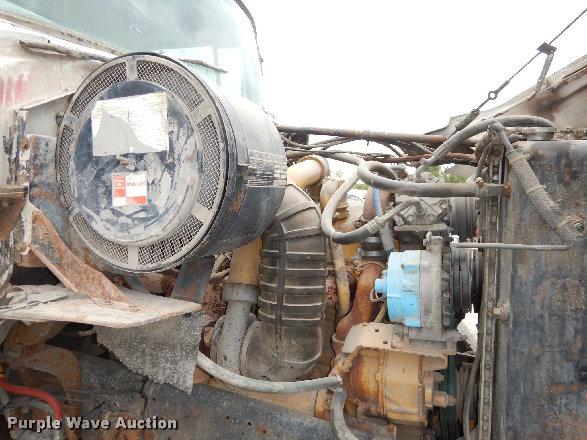 1983 Ford 9000 semi truck. 531,158 miles on odometer, Unit #: 176. Engine Caterpillar 3406, Displacement: 14.6L, Cylinders: 6, Fuel type: Diesel. Transmission Eaton Fuller Roadranger RTO116, Speed: 16. Chassis Axles: Tandem, Differential lock: Inter-axle, Suspension: Spring over walking beam, Brakes: Air, GVWR: 44,800 lbs, Wheelbase: 165". Interior AC, Heat. Operational Deck plate: Steel, Fifth wheel type: Air operated, Sliding, Fuel tank: Dual. Tires Size: 10.00R20. Notes Air leaks, Walking beam bushing needs replaced, Windshield chipped or cracked, Unit must be towed or hauled. Kansas title. 1FDYU90X0DVA34808. Pottawatomie County Noxious Weed Department. 405 Campbell St. Westmoreland, KS 66549