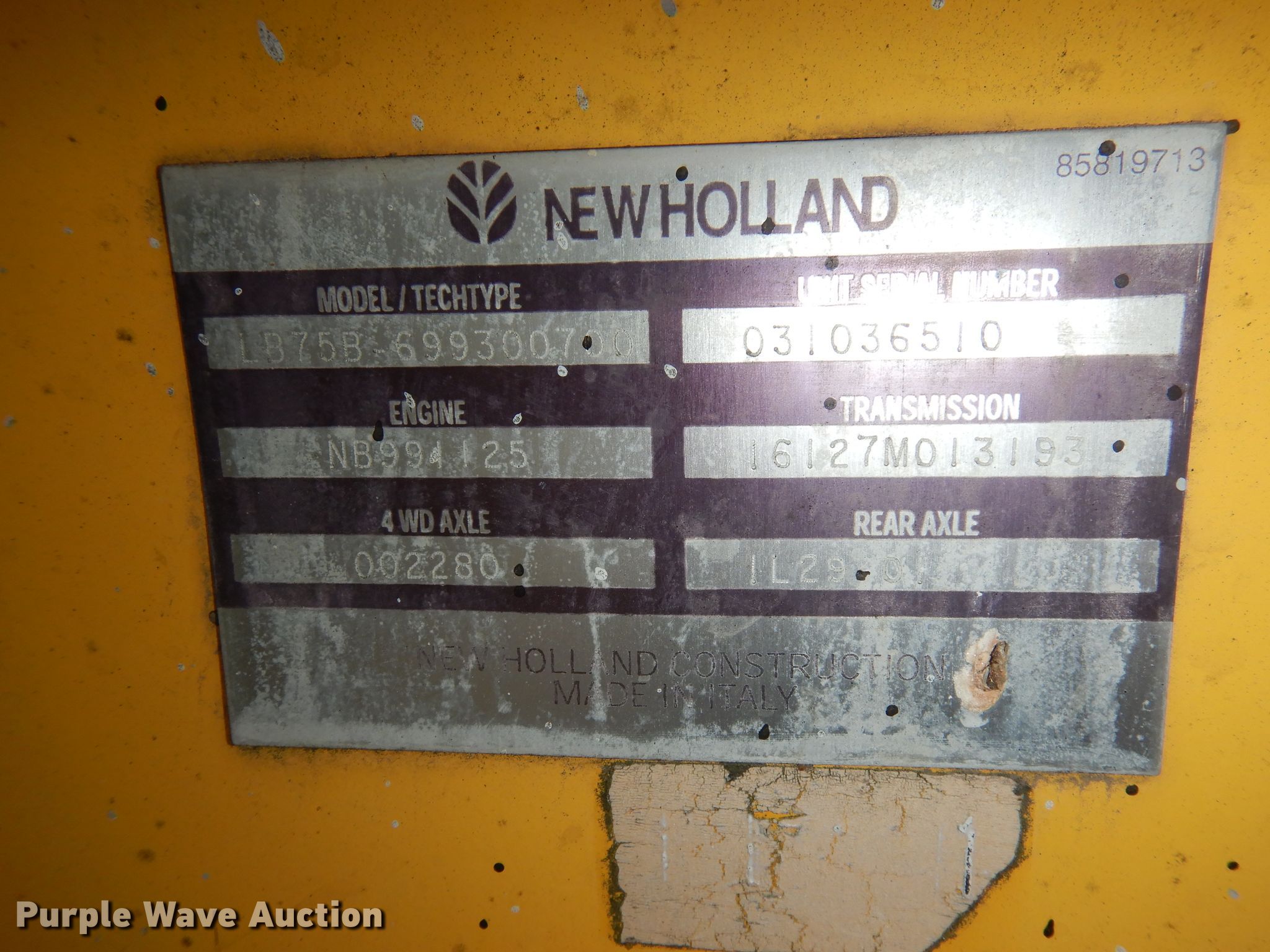 Purple Wave is selling a used Tractor Loader Backhoe in Kansas. This item is a New Holland LB75B backhoe with the following: 6,022 hours on meter, Serial: 031036510
