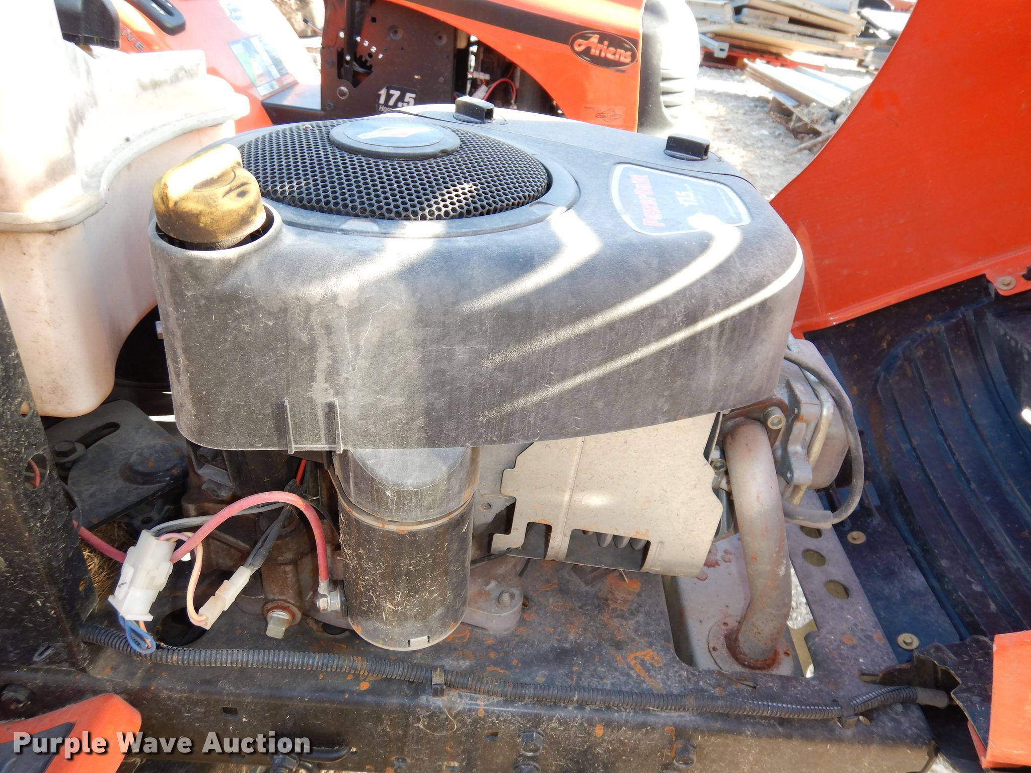 Purple Wave is selling a used Lawn Mower in Kansas. This item is a Ariens lawn mower with the following: 42" cut, Briggs & Stratton gas engine, 17.5 HP, Six speed transmission, 15x6.00-6 front tires, 20x8.00-8 rear tires, Hood damage, Unknown operating condition